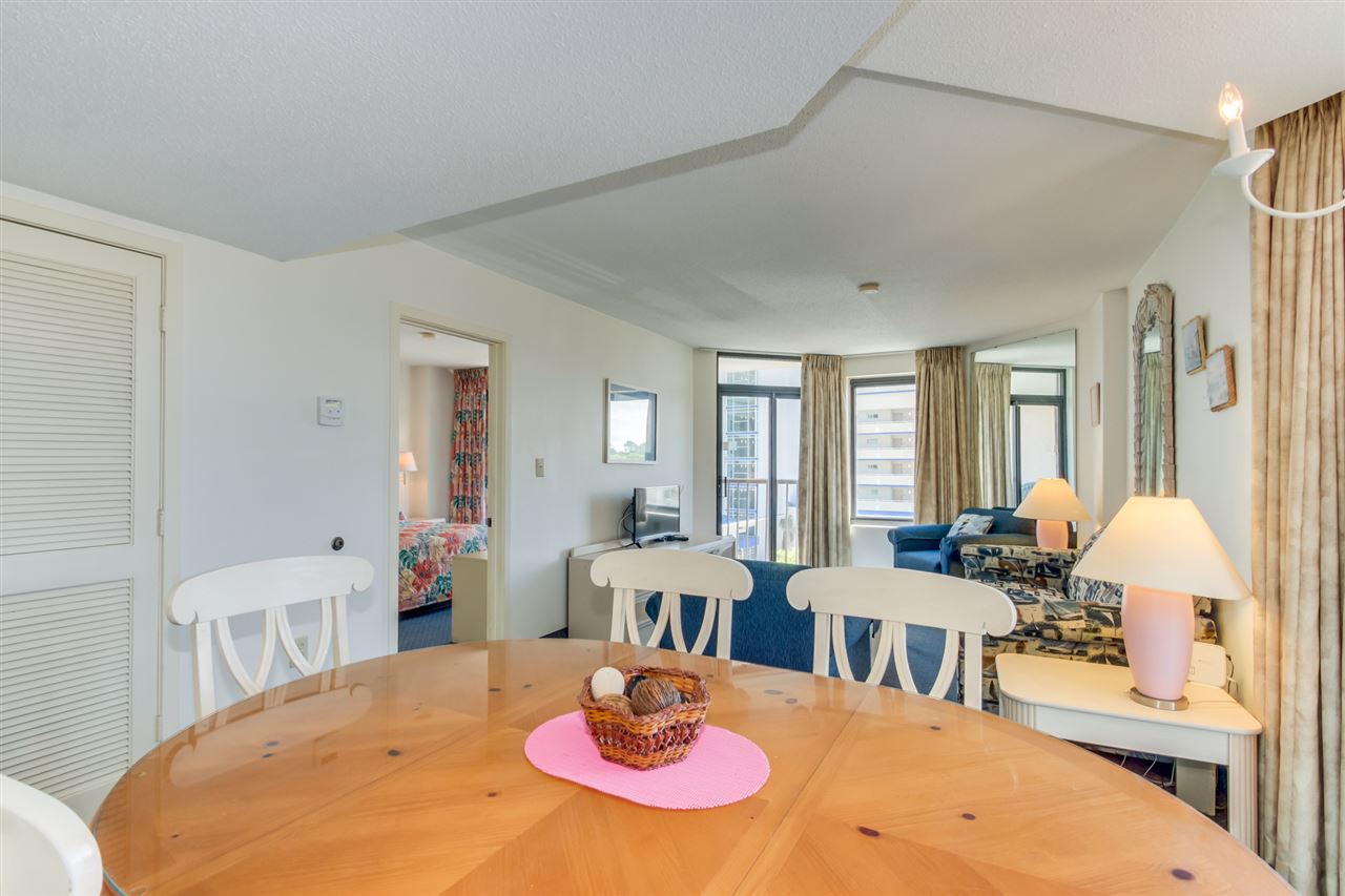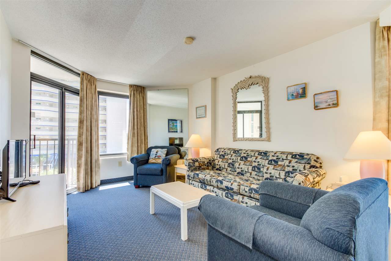 What an Awesome Value in the Prestigious Cabana District of Myrtle Beach!! This is a Much sought after Spacious 2 BR 2 BA Floorplan with Washer/Dryer and a Full Service Kitchen - A Wonderful Oceanview Unit with an Expansive Balcony accessible from the Living Room and Master Bedroom! Lots of Extra Sunlight streams into this End Unit with Extra Dining Space compared to the other 2 bedrooms in this tower. Also, this unit is located on the 4th Floor - one of only 3 floors with direct access to the parking deck! HVAC recently replaced! Fantastic Rental income can be yours when you purchase this tastefully decorated condo - From the gorgeous woodgrain kitchen cabinets and granite countertops to the tastefully decorated living and bedroom areas, with flatscreen TVs in each, you will truly enjoy your experience! Beach Colony Resort has something for everyone - Indoor and Outdoor Pools, Lazy River, Onsite Restaurants, Ice Cream Shoppe, Tiki Bar, Spas/Hot Tubs, Shuffleboard, Racquetball Court, private beach access - don't miss the opportunity to own your own beach condo this summer season! Owner Pet Friendly! Affordable HOA Dues include all Utilities/Cable/Internet! Now is the time to make your move - the rental and sales markets are on the rise in Myrtle Beach - you won't find these kind of deals much longer! Ready for your investment and/or personal use!