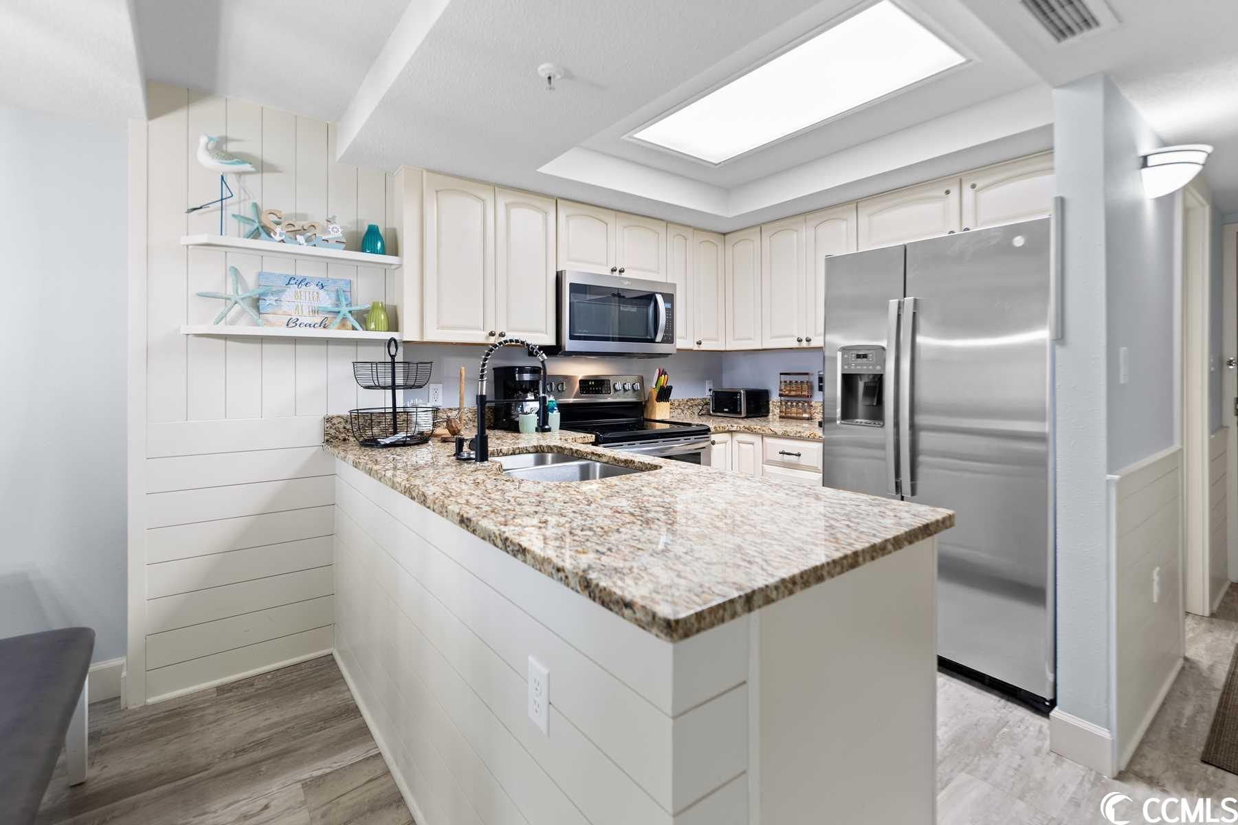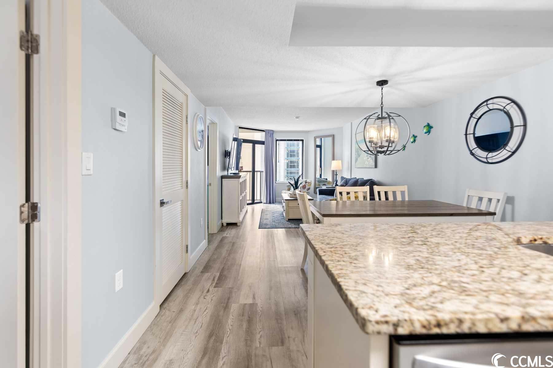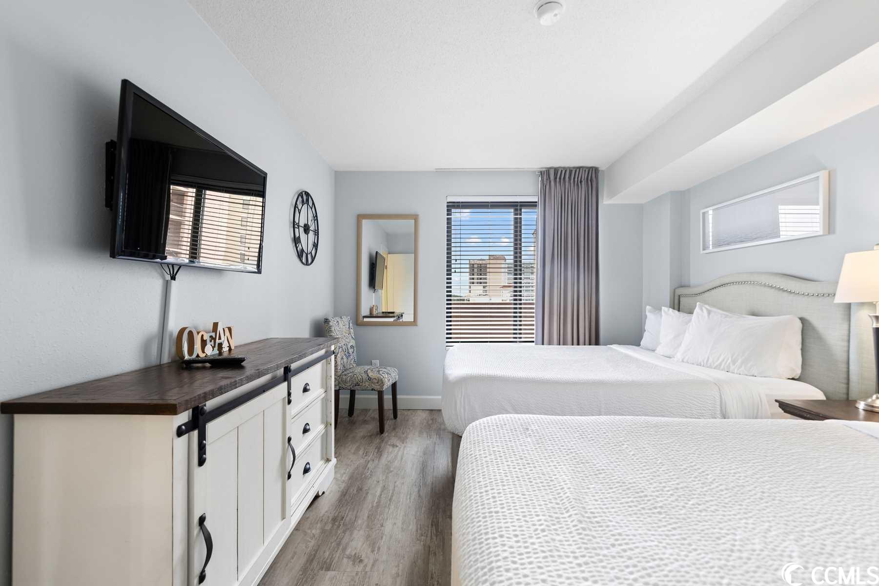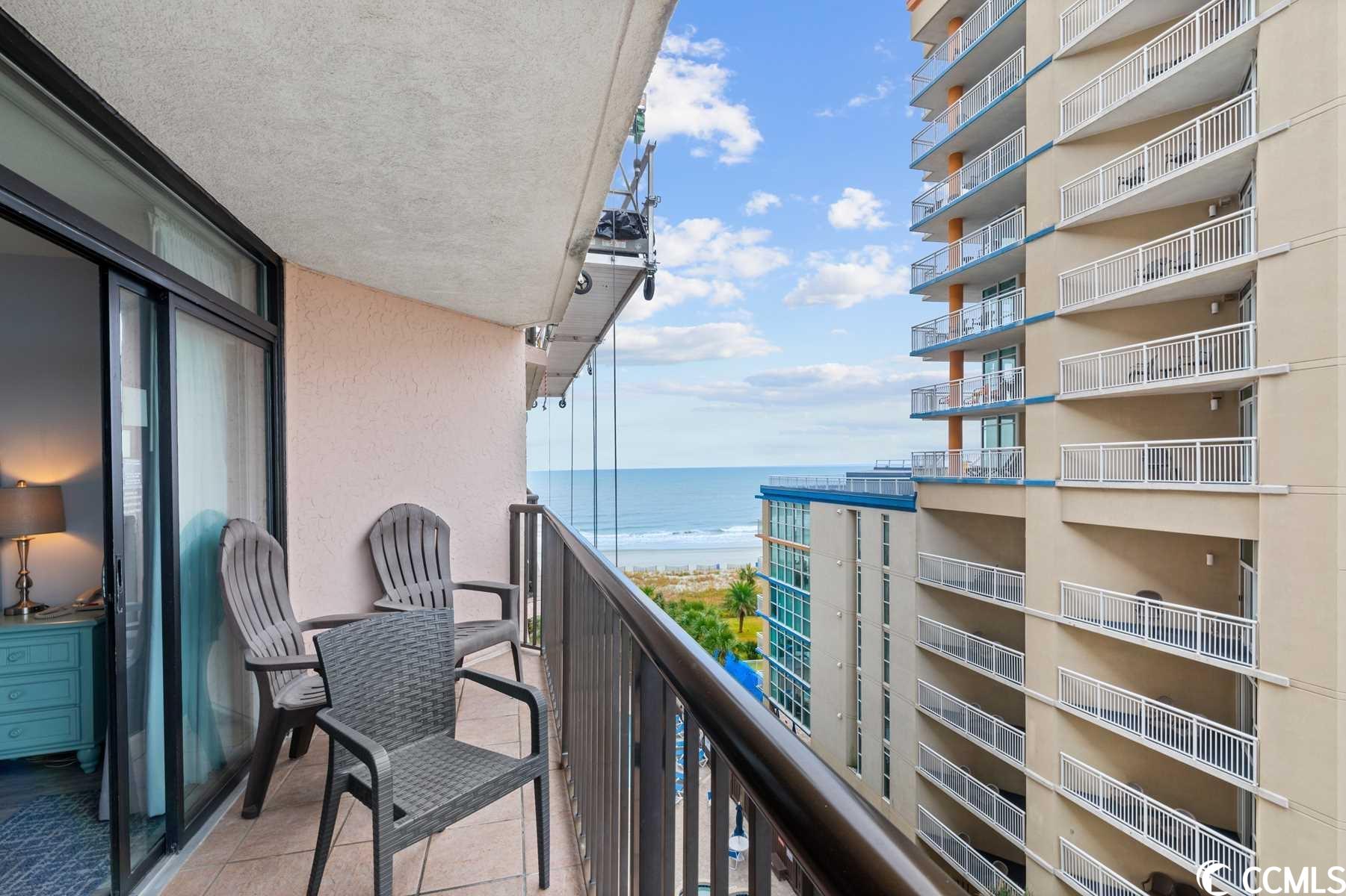 Very rare to find! Beautifully renovated and fully furnished 2 bedroom/ 2 bath in Beach Colony Resort II. HOA covers all the utilities including electric in the unit. Enter through the foyer into the open and bright living area with new LVP flooring. You can enjoy the fantastic view of the Atlantic Ocean from the balcony of the living room and the Master Suite! The kitchen is fully equipped with granite countertops, and a breakfast bar. You'll feel right at home and ready to relax and enjoy this fantastic vacation getaway. The stove, dishwasher, washer, and dryer are barely new. Beach Colony Resort has terrific amenities and offers something for everyone, including indoor/outdoor pools, a lazy river, spas/hot tubs, a fitness center, tiki bar, onsite restaurants, private beach access, and more! In the Golden Mile area in Myrtle Beach, the building location is ideal, close to all the dining, shopping, golf, and entertainment. Don't miss this opportunity to have your piece of paradise here at the beach! It is ideal for a second home or investment, so make an appointment today!