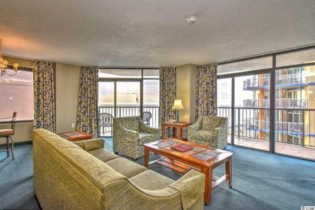 Spacious ocean view two bedroom two bath condo with balcony that overlooks the pool area with amazing ocean views. It's fully furnished with well-equipped kitchen. Spacious master bedroom, flat screen TV in living room washer/dryer in unit. Resort Amenities include two outdoor pools, lazy river, indoor pool, whirlpool, kiddie pool, arcade, fitness room, racquetball, meeting facilities, pool bar and oceanfront caf. Close to all the area has to offer. the perfect vacation getaway place, second home or rental investment.