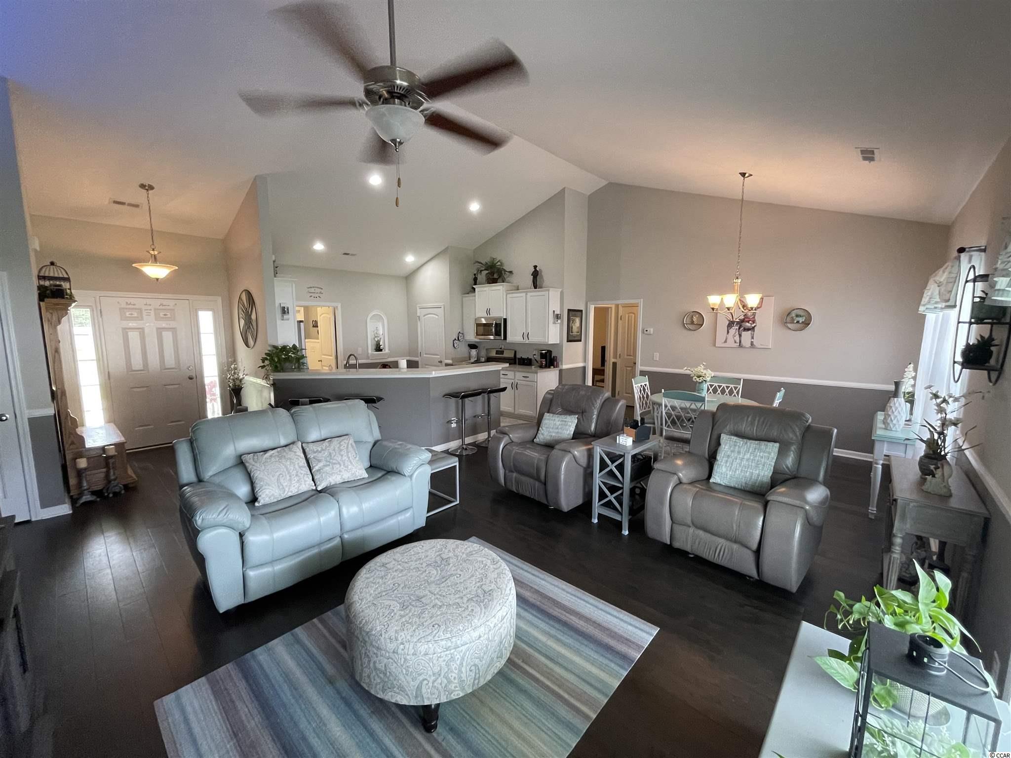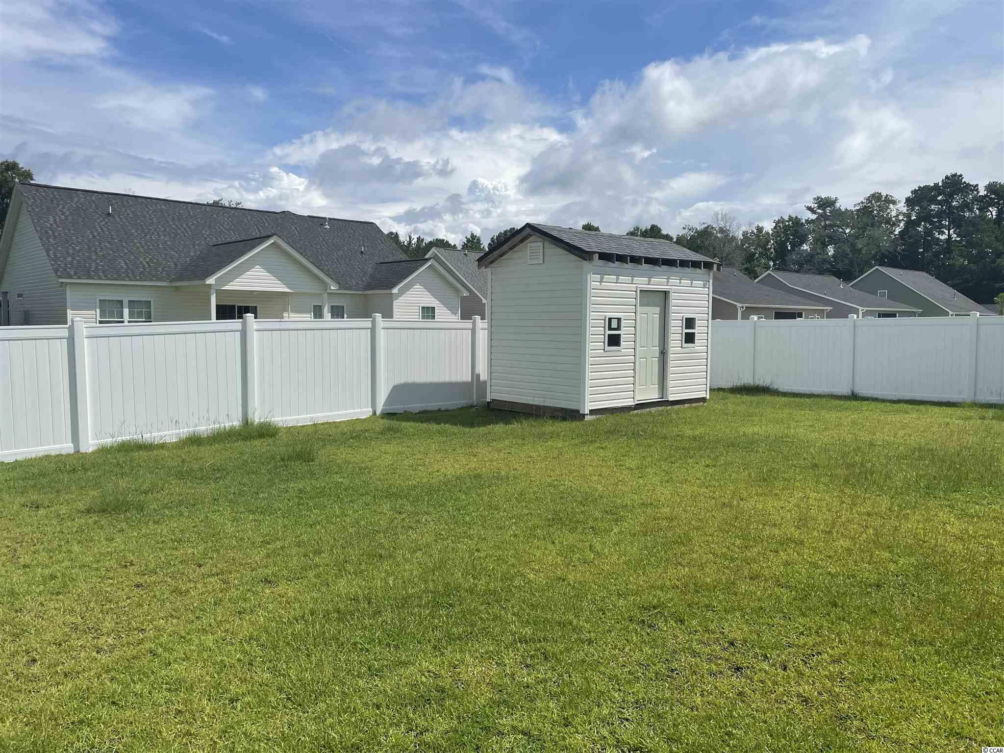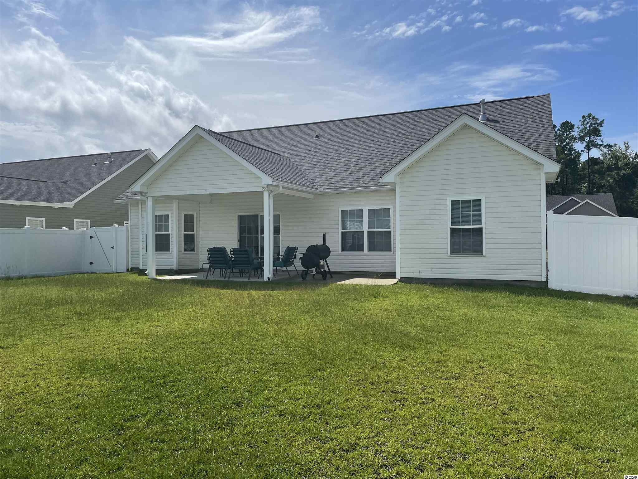 Looking for almost new construction that is move in ready? Here it is! This well maintained home is ready for a new owner! Built in 2017. Vaulted ceilings in the living room and tray ceiling in the master bedroom. Master bath recently remodeled with an oversized soaking tub with hand held shower. Wood flooring though out living room, dining, foyer, halls and bedrooms. Upgraded vinyl tiles in the kitchen and baths. Custom paint and woodwork in living room. Upgraded kitchen sink. Super efficient natural gas dryer, gas stove, gas heating and gas water heater! Covered rear porch. Large yard with privacy fencing and irrigation. All of this and only 20 minutes from the beach and all that Myrtle Beach has to offer!