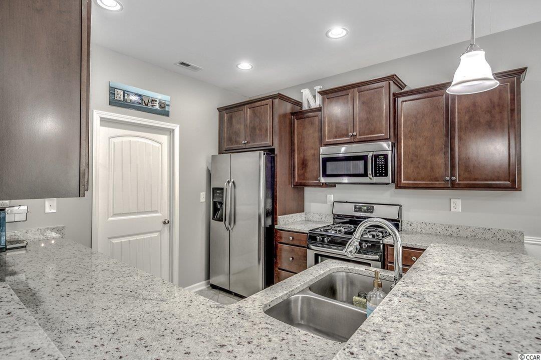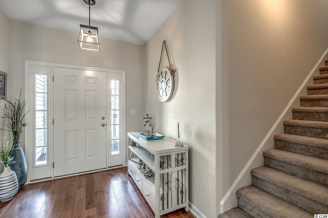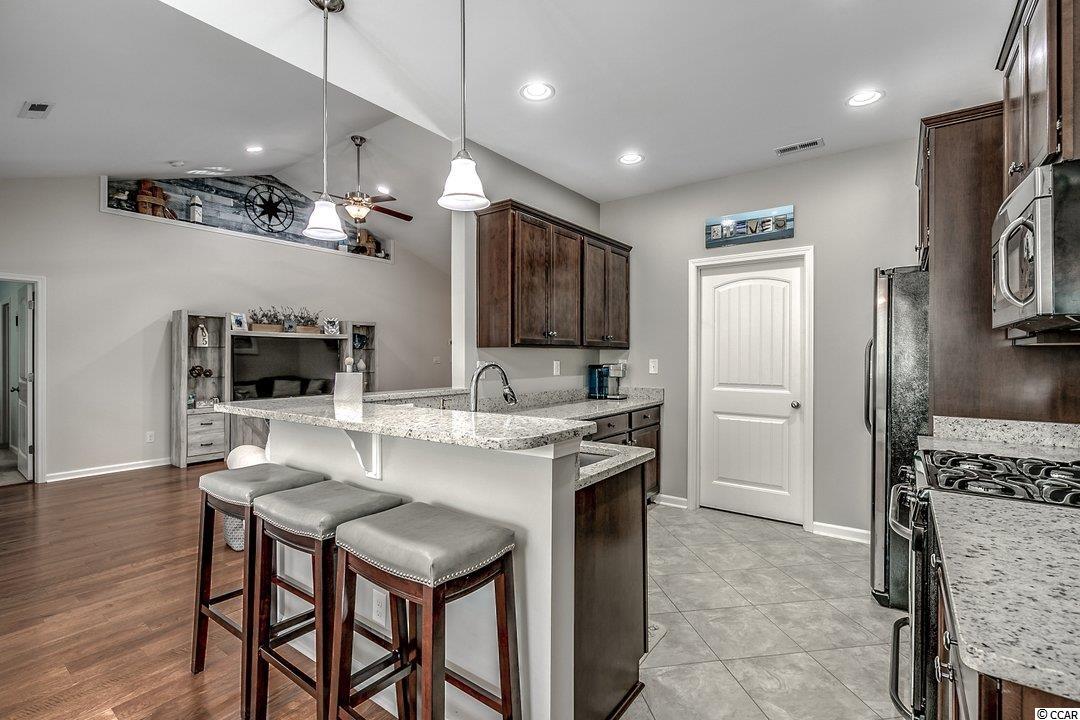 Truly immaculate Barons Bluff North home that shows like a model! No detail has been left untouched. Beautiful upgrades throughout, this spacious split floor plan features hardwood floors, upgraded chandeliers, chair rail, and a bonus room above the garage. Upon entering the foyer, you are welcomed with a bright open living space, perfect for entertaining guests. Flowing directly to the kitchen, it presents granite countertops, tiled floors, recessed lighting, and additional seating at the breakfast bar. An adjacent dining area is off the kitchen with views of the serene backyard. The master suite is perfectly situated off the living area displaying a tray ceiling, ceiling fan, walk-in closet, and ensuite bathroom. Two additional generous-sized bedrooms and a bathroom are located down the front hallway. Each bedroom proves to have more than ample closet space. Gather upstairs for game and movie night in the bonus room. A flex space that is ideal for office space, a playroom, or even a guest room! This natural gas community is just one of the highlights this home has to offer, including upgraded faucets, ceiling fans, tank less water heater, and mature landscaping. The upstairs flex space has a separate heating and cooling system. Spend summer afternoons relaxing on your screen porch or taking a swim in the community pool. Equipped with a natural gas hookup for grilling, this home has all your wants and needs! Barons Bluff is just minutes away from downtown Conway where you will enjoy antique shops, local eateries, the River Walk as well as all the attractions and amenities of Myrtle Beach including fine dining, world-class entertainment, golf courses, and ample shopping experiences along the Grand Strand. Rest easy knowing you are only a short drive from medical centers, doctors offices, pharmacies, banks, post offices, and grocery stores. Square footage is approximate and not guaranteed. Buyer is responsible for verification.