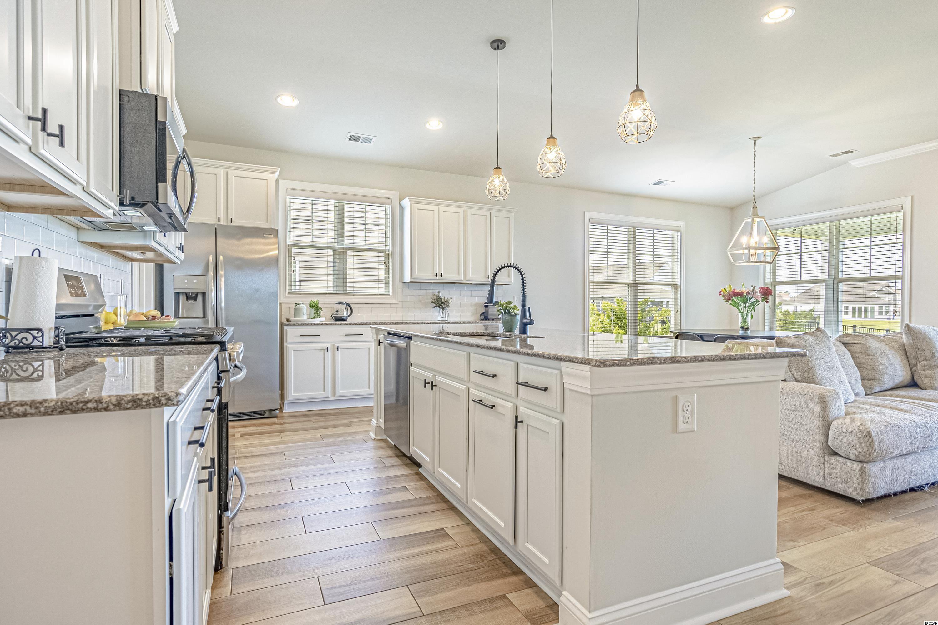 Do not miss this gorgeous home with breathtaking views at the desirable community of The Farm at Carolina Forest. Built in 2018, this home is better than new!!! Loaded with upgrades and Move In Ready. Enter the home through the spacious foyer and discover the amazing open floor plan, extra large windows and high ceilings throughout. The Chef Kitchen is equipped with upgraded stainless steel appliances, gas burning stove & oven, luxurious counter tops, multiple prep areas, an extra large pantry and a large Eat-In Island. Enjoy the split floor plan for plenty of privacy. The huge master bedroom offers pond views, a large walk in closet, , two linen closets and an amazing master bath. Enjoy the custom ceramic tiled shower and double sink vanity . The two additional bedrooms are perfectly located to allow privacy for family members or guests. Crown molding throughout the house and tray ceilings in the bedrooms and entryway are only a few of the upgrades this home has to offer. Wood looking ceramic tile flooring through the kitchen/dining/living area allows for easy maintenance. Large patio doors lead to the amazing back yard. The private back yard is one of a kind. The extra large covered Lanai is the perfect area for outdoor relaxation or entertaining. The fully fenced back yard is overlooking a huge pond and provides calming water views. The extra large 2 car garage is an additional upgrade. It accommodates 2 cars comfortably and allowed for plenty of storage space. The Farm community offers Resort Style Amenities with very LOW HOA fees. Enjoy 2 community pools, a fully furnished and equipped club house, Resort style pools , fitness room, playground, basketball court and much more. The HOA fees include all the amenities, trash pickup, cable/TV, maintenance of the common area landscaping, community activities and more.