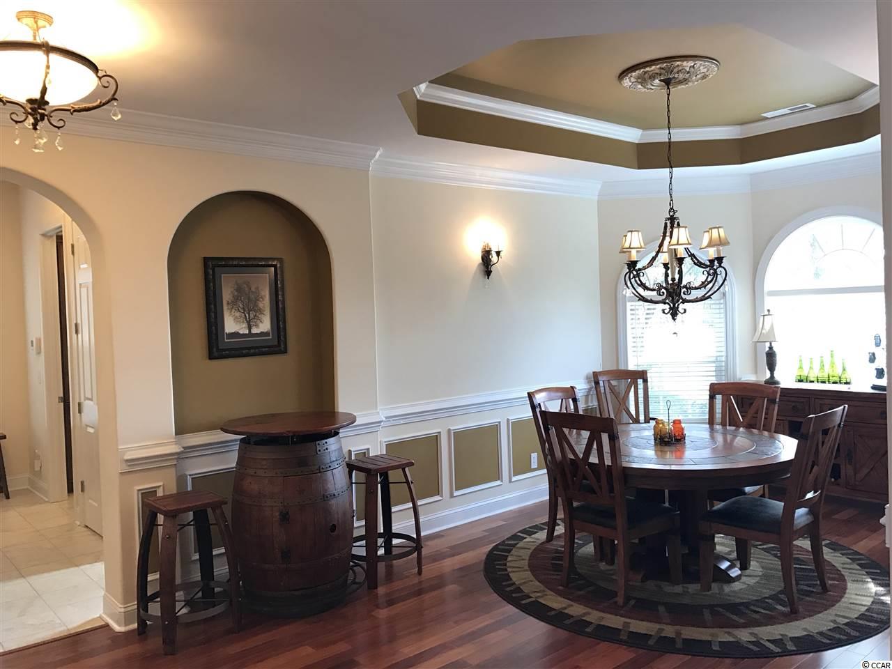 Once inside this uniquely crafted custom home nestled in the private gated community of Creek Harbour located in Murrells Inlet you realize you have entered a very special place. You will notice the details in the great room such as the galaxy black hearth surrounding the fireplace, exotic mahogany floors, coffered ceiling. As you look to the kitchen you will find hand distressed cherry cabinets, quartz countertops and porcelain tiled floor. The dining room is richly appointed with a tray ceiling, wainscoting, chair rail and crown molding. The expansive master bedroom suite features a sitting room and luxurious master ensuite featuring a shower with antique glass doors, rain and body sprays. Once outside the feeling of tranquility will set in with the open Lanai overlooking the salt water pool and meticulous landscape. The community offers pool, clubhouse, boat storage and private boat landing/dock for easy access to the Intracoastal Waterway. This is truly a one of a kind spectacular home! Schedule a viewing today!!