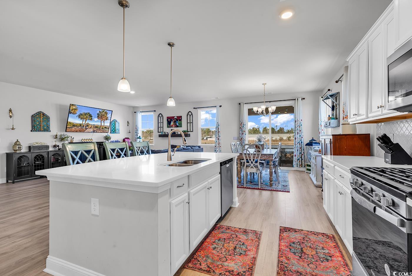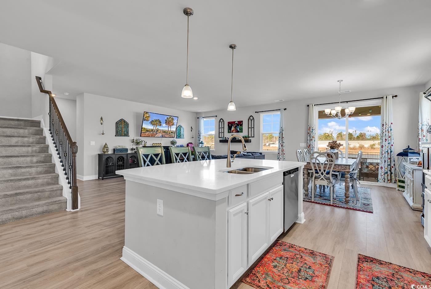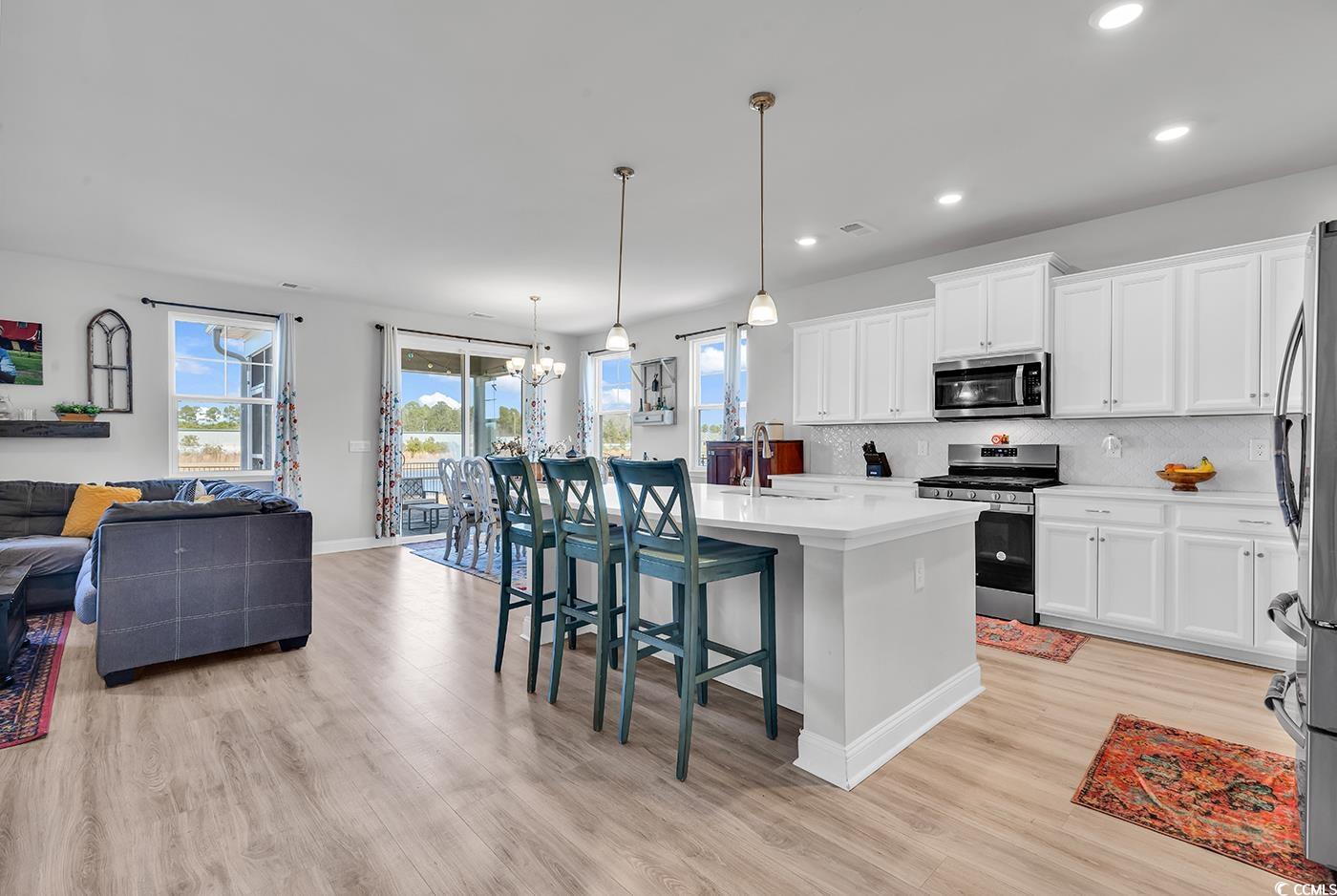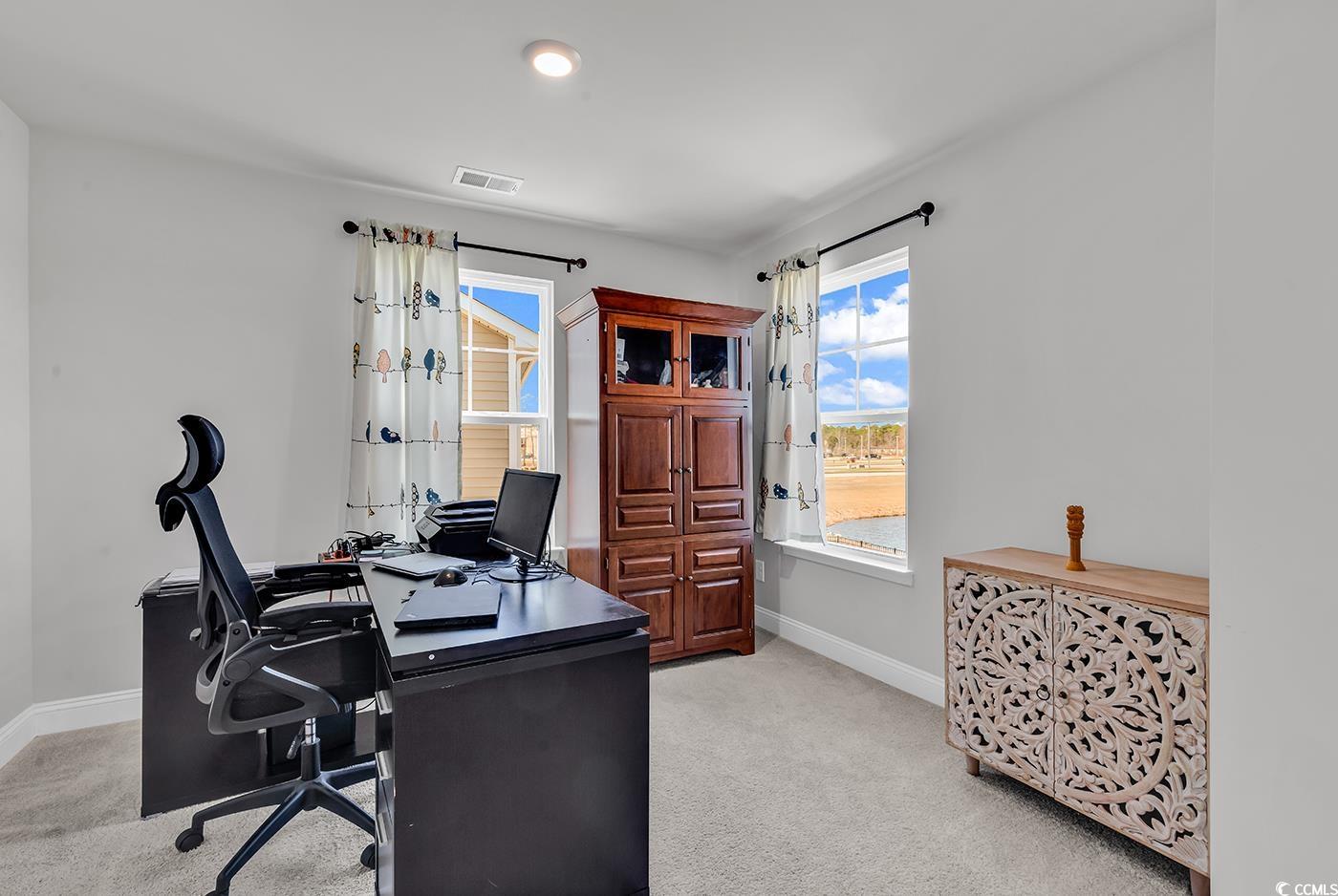 Come tour this BEAUTY! It's only 2 years old with a POND VIEW, spacious and has the most desirable floor plan! This 4 bedroom/3 bath home is located in THE PARKS, a highly desired newer neighborhood in Carolina Forest. It has such incredible curb appeal with the stacked front porches, with balconies and tall entry door with glass. Once inside, take notice to the wide plank laminate wood floors, the natural light, spacious flex room with French doors it's perfect for a home office or formal dining room. The large gourmet kitchen boasts 36"" cabinetry, quartz countertops, an oversized island, stainless Whirlpool appliances, a walk-in pantry, and a gorgeous Butler's pantry....so useful for entertaining. Overlooking the pond there are sliding glass doors, which are off the dining area leading to the rear screened-in porch! Enjoy your spacious yard, newly installed fence & irrigation & of course the serene pond view!! In addition, a shed for storage and lawn equipment. All 4 bedrooms are spacious, one bedroom & bathroom are on the first floor. Upstairs, you will find the grand primary bedroom suite with a cozy sitting room, huge walk-in closet that connects to the laundry room, the luxurious bath is loaded with large separate vanities, linen closet, and 5 ft shower! Also, upstairs is an oversized 2nd family room or game room with two bedrooms and an additional bathroom. This home is located in a natural gas community. The Parks of Carolina Forest is a picturesque setting of ponds, an amazing amenity center, and park of the majestic ""Ten Oaks"" with walking trails, which lead to the Carolina Forest library. Another HUGE plus, is the schools in this district are rated extremely high. This home's location is walkable to the middle school. SCHEDULE your tour TODAY!