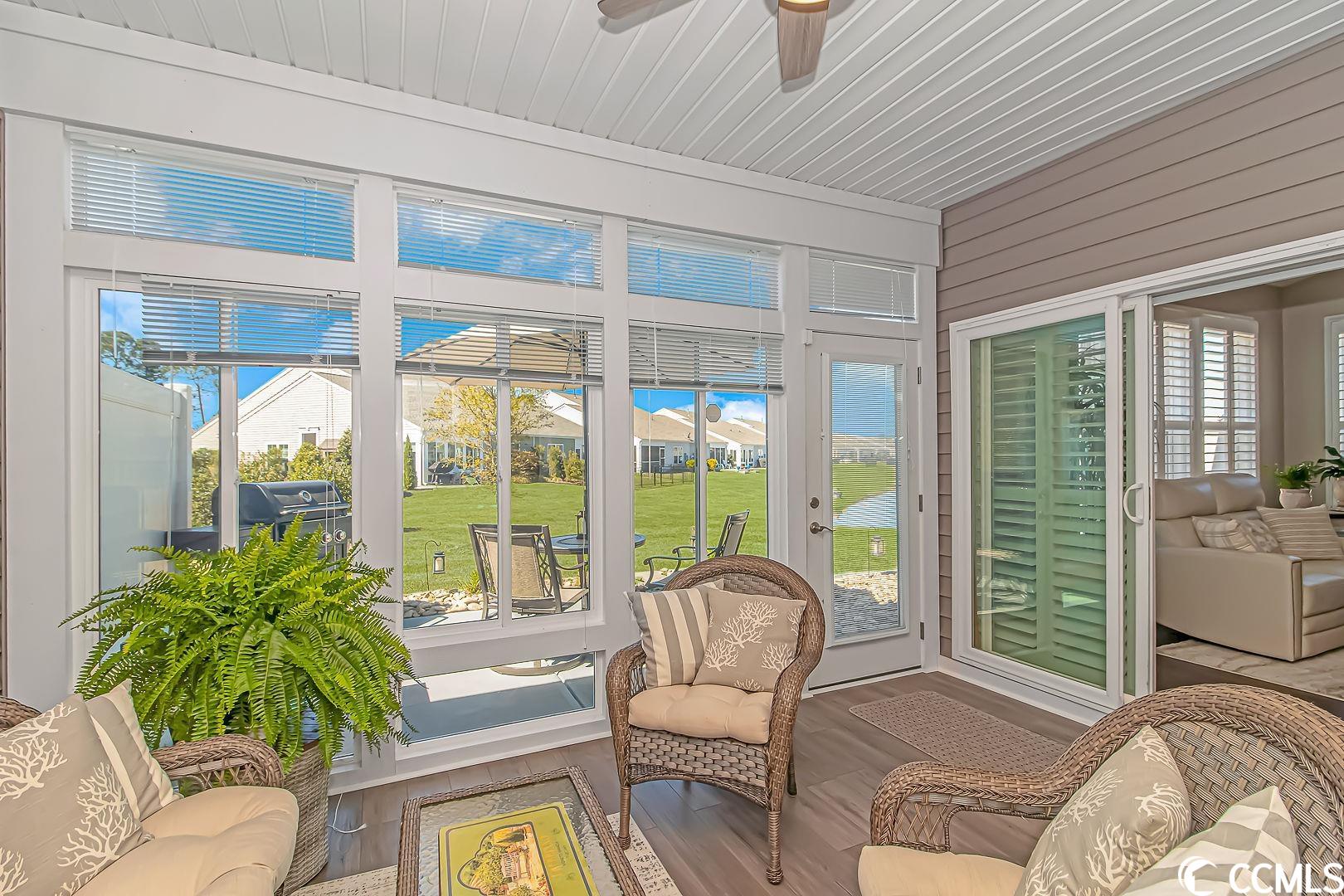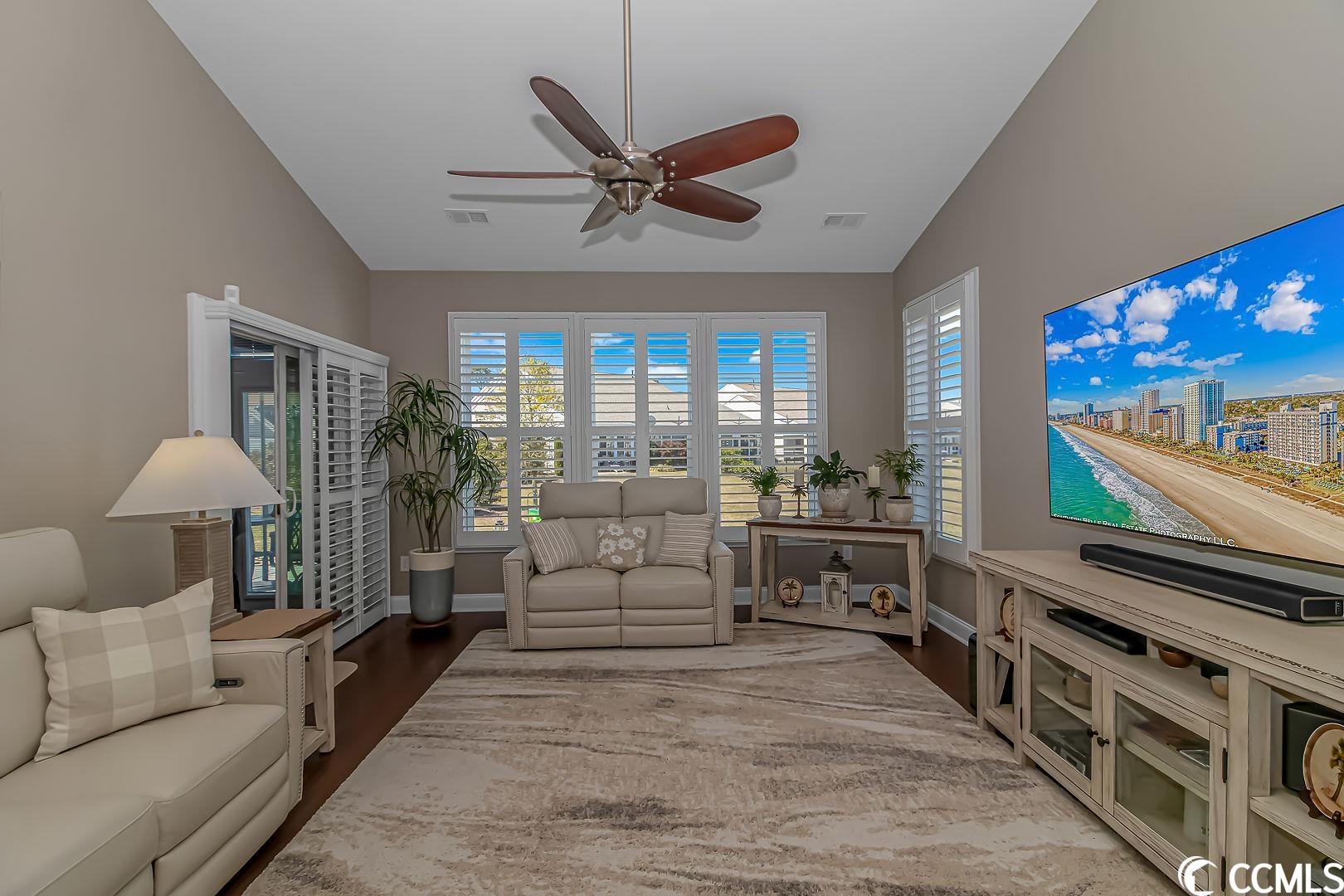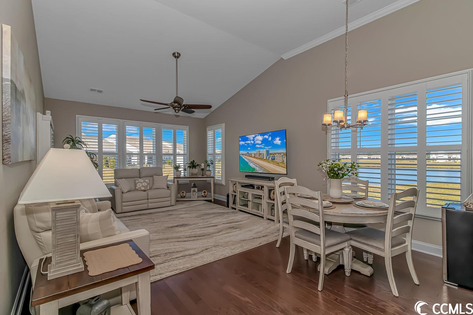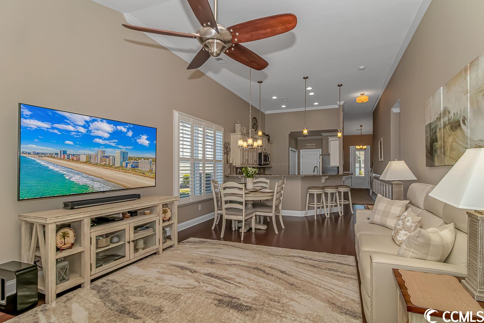 Pristine, resort lifestyle, water views! Fall in love with this turn key 4 bedroom 3 bathroom end unit townhome located in the resort-style Tuscany community. Open the large front door to a wainscot entry way with upgraded engineered hardwood through the main level of this gorgeous townhome. The main level master suite features his and her walk-in closets, a large bathroom with sit-in shower, and linen closet. The floor plan also features a main level guest room, located right next to a full bathroom. Perfect for guests or office space. Upstairs, find two spacious guest rooms with a jack and jill full bathroom. This townhome features beautiful plantation shutters throughout, upgraded ceiling fans/light fixtures, a wainscoting entryway, crown molding, vaulted ceilings giving an airy feel to the main level and allows natural light to fill the home. The kitchen boasts granite countertops, stainless steel appliances, and a beautiful tile backsplash. You will find an abundance of storage in the attic, and in the furnace room. Enjoy some of the most amazing sunsets and water views in the fully enclosed All seasons/Carolina room with laminate flooring or on the private patio. The perfect place for your morning coffee or a late night cocktail. The exterior of the townhome has hurricane shutters, a large 2 car garage with plenty of storage over the garage. Property has a natural gas supplied tankless water heater and range. The Tuscany community offers a resort lifestyle year round! Tuscany residents have access to the resort-style amenity center which features a two-story clubhouse with two outdoor swimming pools, lazy river, 2,000 square foot state-of-the-art fitness center, game room, 24-seat movie theater, lighted tennis courts, nature trails for hiking, 40 acres of lakes and 60 acres of conservation. This home is conveniently located and is easily accessible to US-501, area beaches, Myrtle Beach airport, shopping, dining, and all area attractions. Measurements are not guaranteed and are the buyers responsibility to verify.