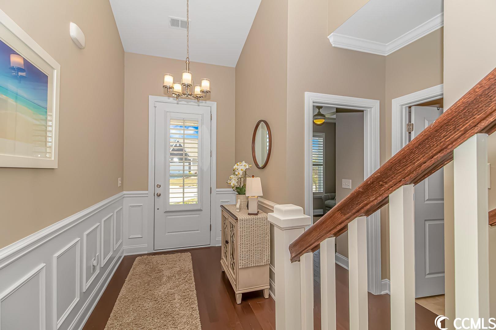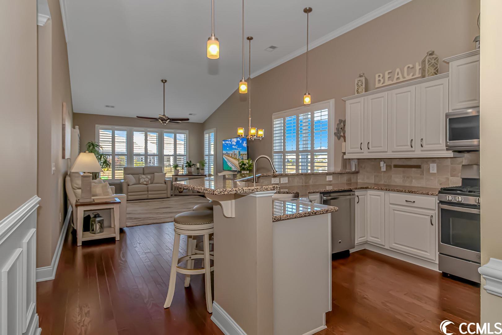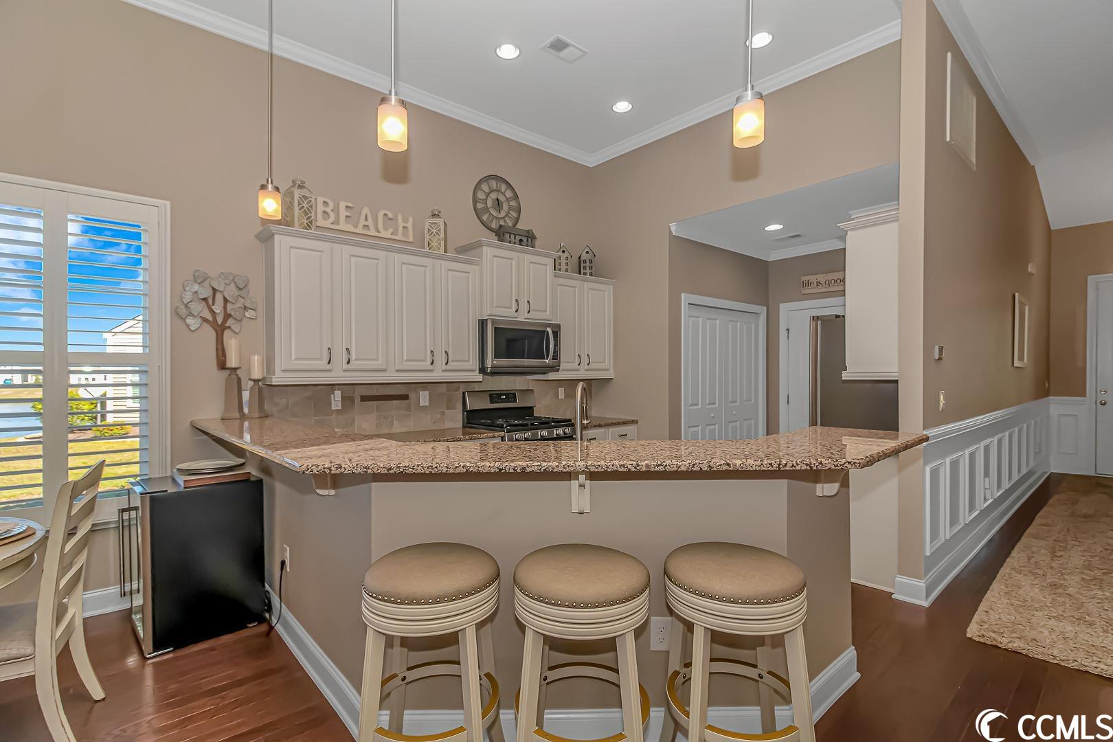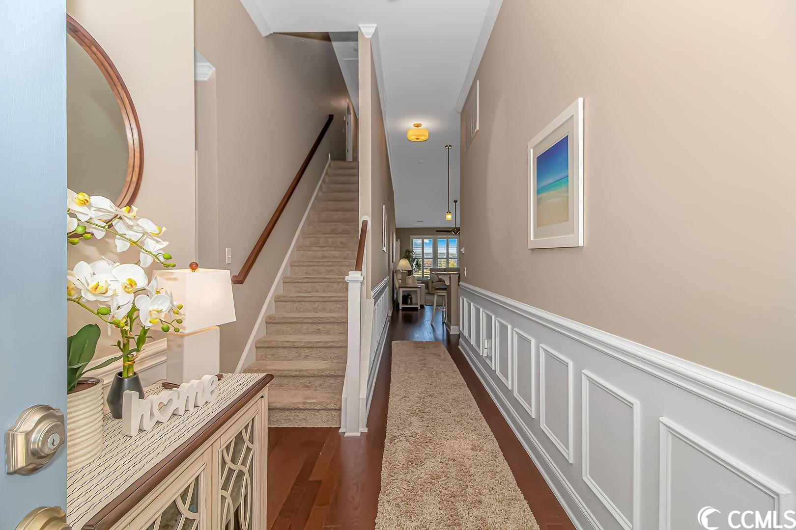 Pristine, resort lifestyle, water views! Fall in love with this turn key 4 bedroom 3 bathroom end unit townhome located in the resort-style Tuscany community. Open the large front door to a wainscot entry way with upgraded engineered hardwood through the main level of this gorgeous townhome. The main level master suite features his and her walk-in closets, a large bathroom with sit-in shower, and linen closet. The floor plan also features a main level guest room, located right next to a full bathroom. Perfect for guests or office space. Upstairs, find two spacious guest rooms with a jack and jill full bathroom. This townhome features beautiful plantation shutters throughout, upgraded ceiling fans/light fixtures, a wainscoting entryway, crown molding, vaulted ceilings giving an airy feel to the main level and allows natural light to fill the home. The kitchen boasts granite countertops, stainless steel appliances, and a beautiful tile backsplash. You will find an abundance of storage in the attic, and in the furnace room. Enjoy some of the most amazing sunsets and water views in the fully enclosed All seasons/Carolina room with laminate flooring or on the private patio. The perfect place for your morning coffee or a late night cocktail. The exterior of the townhome has hurricane shutters, a large 2 car garage with plenty of storage over the garage. Property has a natural gas supplied tankless water heater and range. The Tuscany community offers a resort lifestyle year round! Tuscany residents have access to the resort-style amenity center which features a two-story clubhouse with two outdoor swimming pools, lazy river, 2,000 square foot state-of-the-art fitness center, game room, 24-seat movie theater, lighted tennis courts, nature trails for hiking, 40 acres of lakes and 60 acres of conservation. This home is conveniently located and is easily accessible to US-501, area beaches, Myrtle Beach airport, shopping, dining, and all area attractions. Measurements are not guaranteed and are the buyers responsibility to verify.