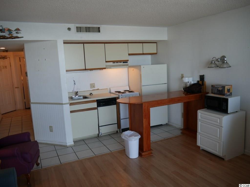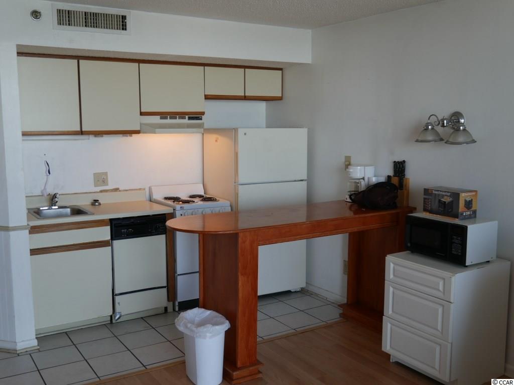 Enjoy the view of the Ocean & Beach from your private balcony on the 14th Floor. This Oceanfront condo features a true 1 Bedroom floor plan and (includes additional vanity/sink), full bath, kitchen/dining area and living room with sliders to a large, private balcony. Located in one of Myrtle Beach's most prestigious destinations - This building features wireless Internet access, owners fitness, owners laundry, owner's lounge, heated indoor pool, hot tub and outdoor pool. Pet friendly for owners. Interior electric included in home owners assoc fees. Walk across the street to the oceanfront walking trail and playground. Close to Shopping, Restaurants and attractions. Great as a 2nd home or investment property. Square footage is approximate and not guaranteed. Buyer is responsible for verification