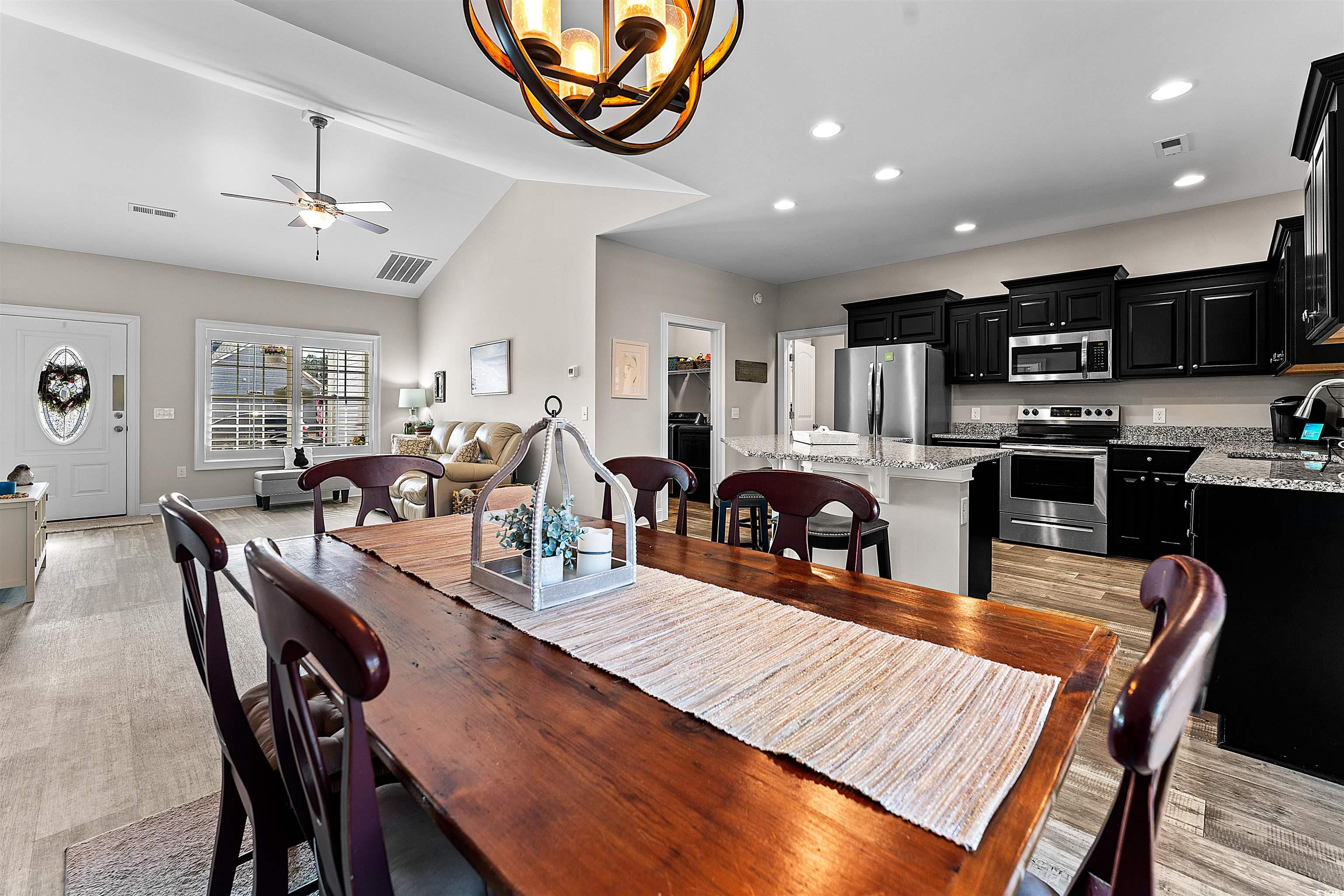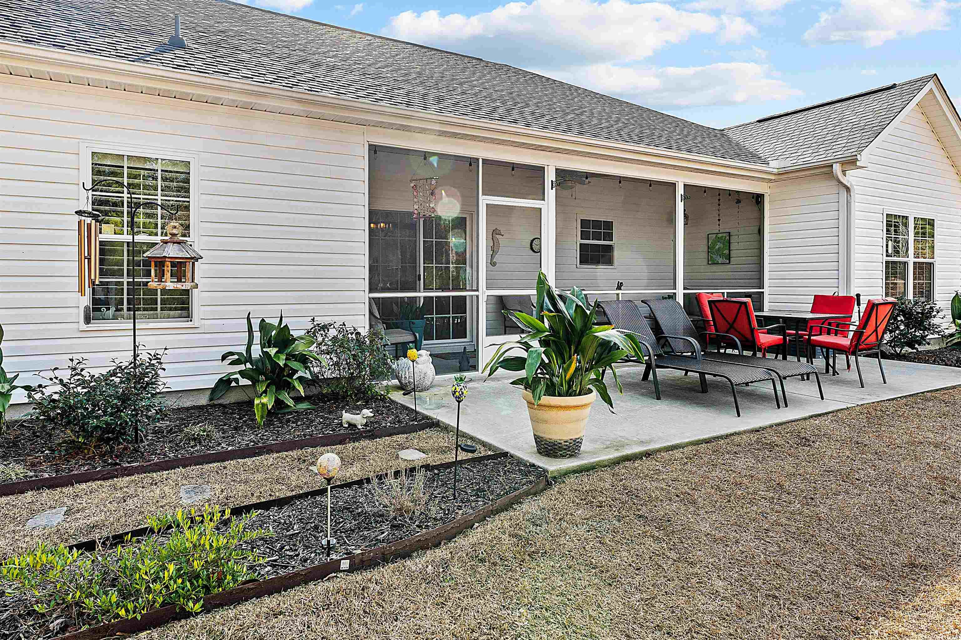 Elegant and pristine, this property is located on the golf course in the desirable development of Shaftesbury Glen. The epitome of move-in ready, the home was built only 3 years ago and has been lightly lived in. The open plan layout is inviting and bright. Greeted by the large living space when you enter through the front door, the space leads you to the dining area with sliding glass doors that showcase the beautiful backyard and golf course! You will find the kitchen surprisingly spacious, featuring stainless steel appliances, granite countertops, a huge island, and a breakfast seating area. The serene screened-in back porch offers ample space to enjoy the privacy of the attractively fenced-in backyard that looks like an oasis in the summer! The outdoor space is charmingly landscaped, with irrigation and a fence with a double gate entry to the backyard on the side of the home. Inside, you'll love the split plan layout with a completely private suite on one side of the living space. The luxury bathroom in this suite includes a soaking tub, walk-in shower, and double vanity. The home has luxury vinyl plank flooring throughout and plantation shutters on all the windows. On the opposite side of the home, you'll find two bedrooms and a full bathroom. Seamless flow between the living areas in this Pecan floorplan, built by Creekside Homes, creates space for easy living as well as entertaining. As an added bonus, the HOA includes golf green fees, so you can enjoy free golf! Situated on a prime golf course lot in the development, youll love the backyard privacy and lush green scenery. Lovingly landscaped by the owner, the yard is ready for you to enjoy the upcoming growing season. Some of the pictures included in the listing were taken in the summer months, showcasing the yard at its best. For additional storage, there is a floored attic space conveniently accessible from the 2-car garage. The community also offers desirable owner facilities, including a pool, which adds to the incredible value of this property. The house is clean and ready for you to move in. Call today to schedule a tour!