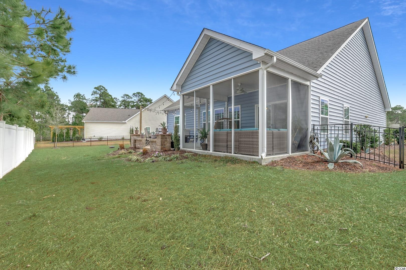 Better than NEW! This 5.5-year-old home in the highly desirable Brookeberry at The Farm boast 3 bedrooms, 2 full baths and 2 car garage. It sits on a good-sized lot with a completely fenced in back yard. As you walk in, the laundry room is equipped with tile floors, whirlpool top load washer and dryer, and new cabinet with drying rack. Both guest bedrooms have like new carpet, large closet, and plantation shutters. Guest bathroom with tile floor, upgraded counter, and framed mirror. The foyer with a beautiful glass front door and tray ceiling leads to the hallway to the open concept living room and kitchen area thats great for entertaining! The kitchen features granite countertops, tile floor upgraded cabinets with under cabinet lighting, upgraded light fixtures, glass tile backsplash, stainless steel appliances, large pantry with shelving and a large counter height bar seating for 4. The living and dining room area upgrades include engineered hardwood floors, tray ceiling in dining room, plantation shutters on all window, Dining room provides a large space that can accommodates the 8+ seating table that has a leaf for extension, buffet table great for storage, and custom built in cabinets and shelves surrounding by gas fireplace. The living room shows with brand new rug, L couch in great condition, coffee table, end table and 2 accent chairs that add to dining space. Master bedroom includes upgraded engineered wood floors, tray ceiling, king sized bed, dresser, chest, 2 nightstands, jewelry armoire, a ceiling fan and large walk-in closet with custom shelving and hanging space. The master bathroom is included with 2 vanities with upgraded counter tops and added drawer space, framed mirrors, tile floor and large tile shower with rain showerhead and glass doors. Exiting the dining area you have a large screened in back porch great for relaxing with ceiling fan, sectional couch, and egg chair. For entertaining there is a large paver patio with built-in grill space, caf lighting, and table fire pit thats perfect for evening entertainment. This home has a great deal of storage with a large attic space from garage pull down staircast. Square footage is approximate and not guaranteed. Buyers responsible for verification.