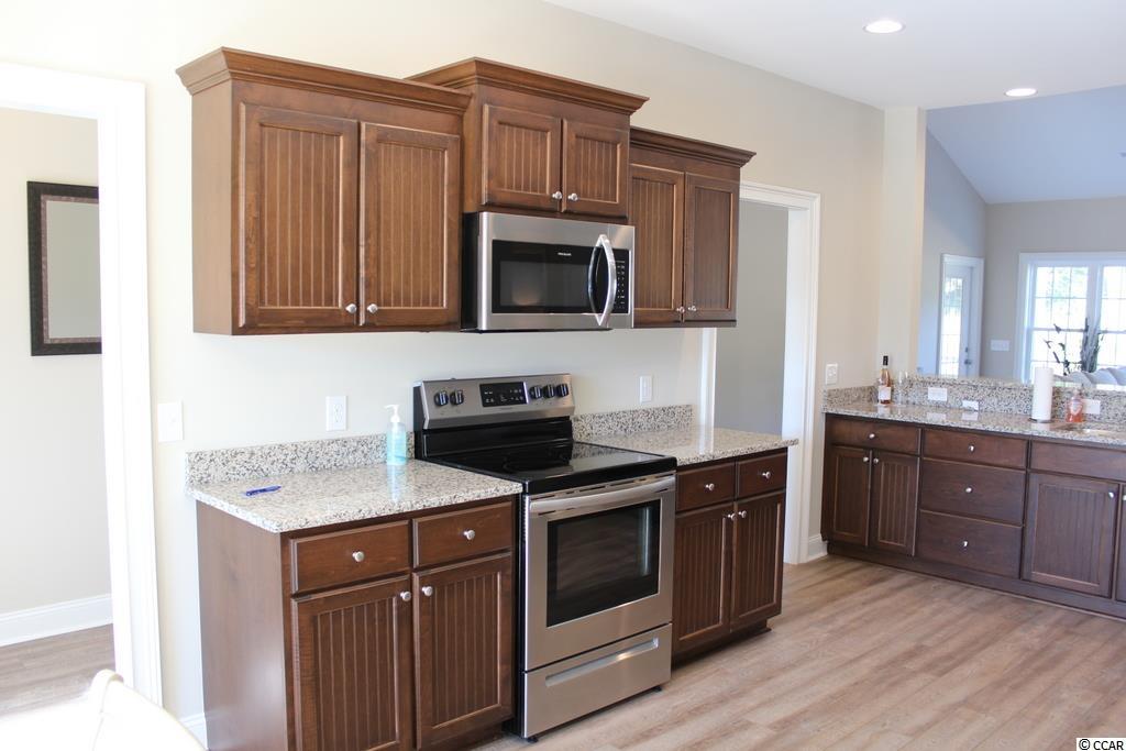 Spacious Hemlock Alt plan was the model home in this community and is now sold out. This home sits on a premium lot, has an entry foyer, relaxing 18'x5'6 front porch, rear screen porch and patio. Open floor plan, the dining room has a tray ceiling, the living room has an abundance of windows, a vaulted ceiling with a ceiling fan, and light. The large kitchen has solid wood cabinets with crown molding, granite countertops, a 50/50 stainless steel sink, stainless steel appliances - microwave, garbage disposal, range, dishwasher and refrigerator and a pantry closet. Split bedrooms - Master suite has tray ceiling with ceiling fan, huge walk-in closet, double bowl sinks in a raised height vanity, garden tub and a walk-in shower. Guest bedrooms and bath on opposite side of the house. Upgraded LVP flooring in the foyer, living room, dining room, kitchen, front guest bedroom and hall. RCM tile in the master bathroom, guest bathroom, and laundry room, and carpet in the bedrooms. Upgraded interior trim includes 3 1/4"" casings and 5 1/4"" baseboards. Low E glass windows, energy efficient homes. Spacious, finished and painted 2-car garage with automatic door openers, pull down stairs to attic storage. Gutters, sodded yard, irrigation system. Easy access to both Myrtle Beach and Conway. This home is being sold unfurnished. Video is for illustrative purposes only and may be of similar house built elsewhere. Square footage is approximate and not guaranteed. Buyer is responsible for verification.