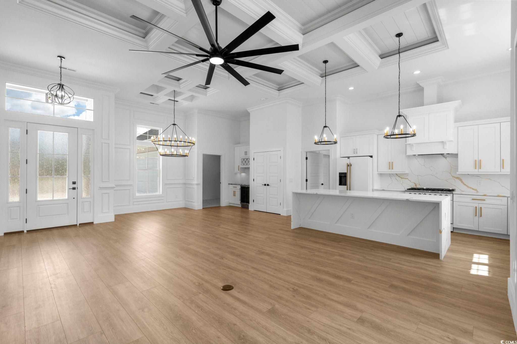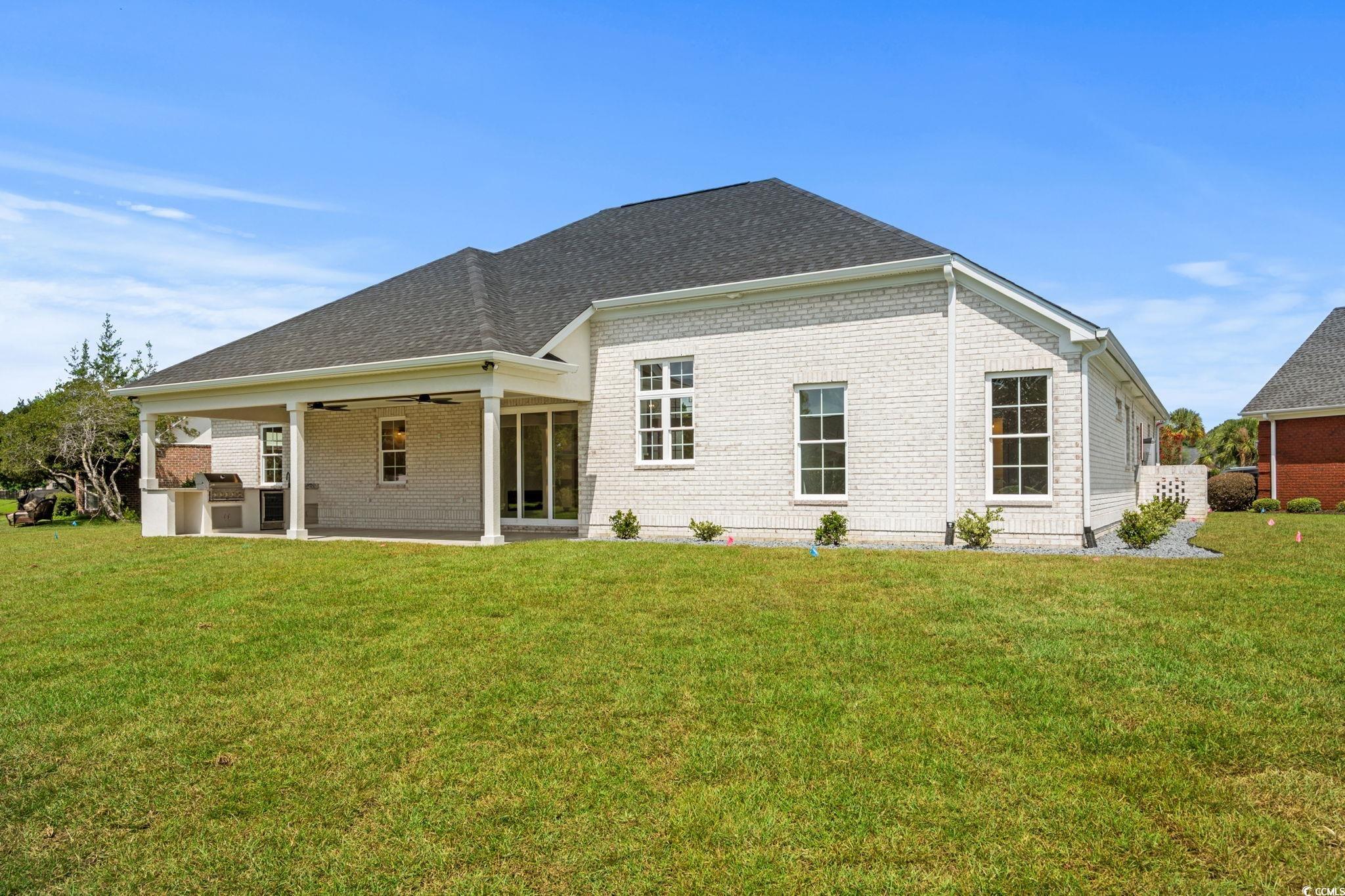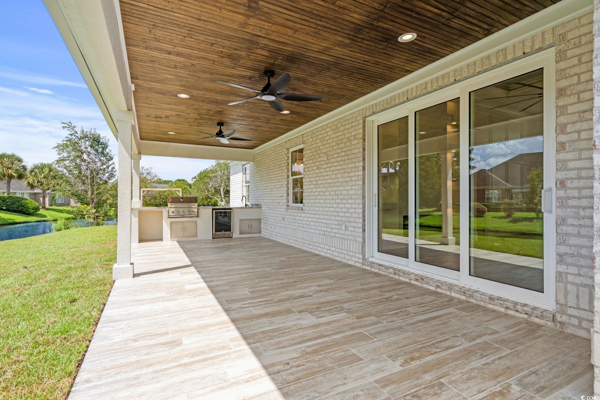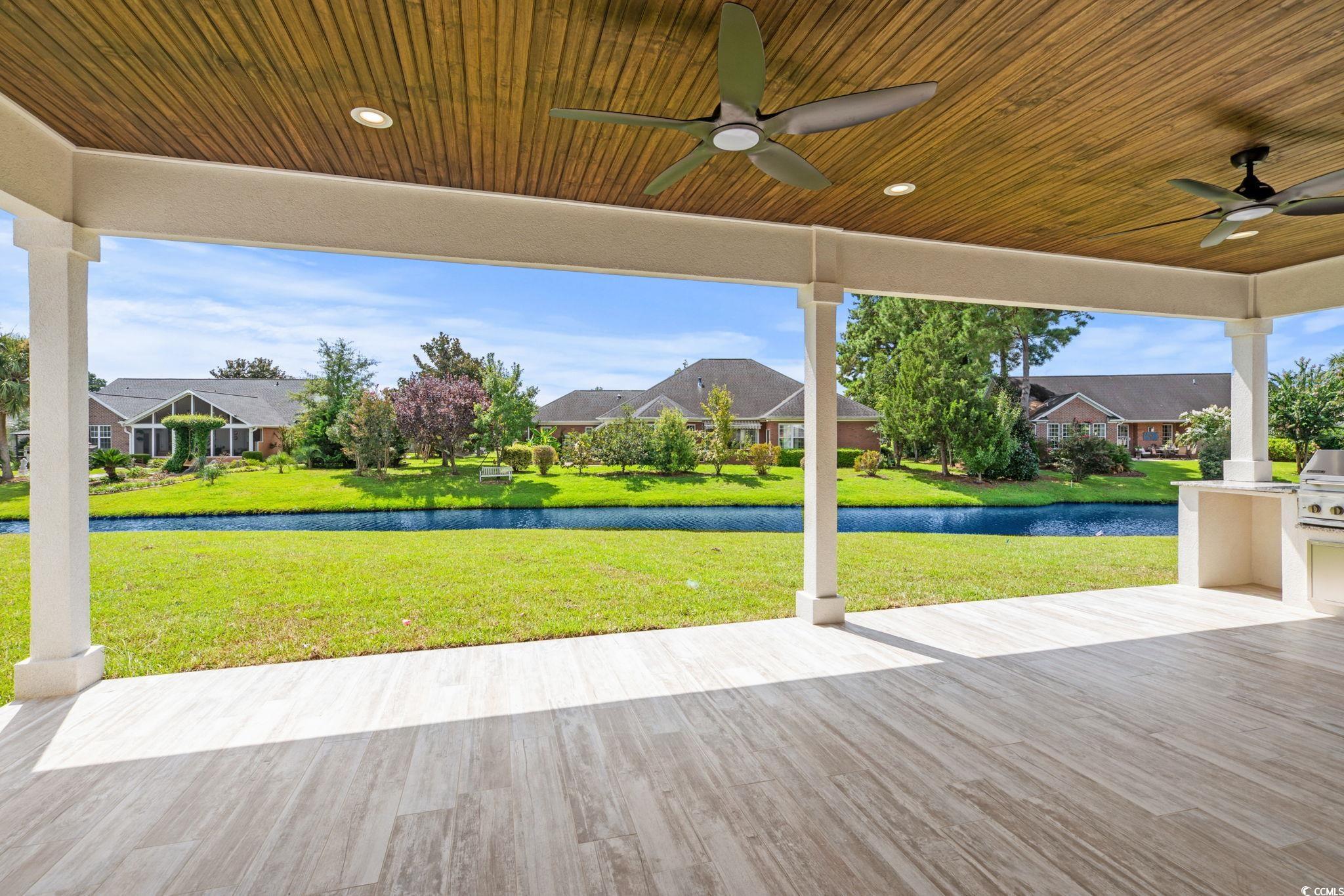 Welcome to the Stunning Cutlass Model in Covington Lake! This exclusive 4-bedroom, 3-bathroom custom home sits on a generous 0.26-acre waterfront lot with over 152 feet of direct pond frontageoffering serene water views right from your backyard! From the moment you arrive, the stucco and stone exterior, side-load garage, and custom curb appeal immediately set this home apart. Inside, youre welcomed by an open and airy layout featuring coffered ceilings, shiplap accents, and a seamless flow between the formal dining area, kitchenette, and living space. The gourmet kitchen is a dreamfeaturing a gas cooktop, custom range hood, and beautiful trim detail throughout. This split-bedroom floor plan offers privacy and functionality. The oversized primary suite includes tray ceilings, a spa-style en-suite bath with a custom-tiled shower, free-standing soaking tub, and fully built-in custom closets. Each of the three additional bedrooms has its own unique detail, with one featuring its own private en-suite bathroomperfect for guests or multigenerational living. Step outside to the expansive covered rear porch, complete with a full outdoor kitchen, perfect for entertaining. This home also includes thoughtful extras like a built-in cabinet sink in the garage and a high-end trim package. Located in highly desired Carolina Forest neighborhood called Covington Lake! Covington lake offers a neighborhood pool and playground! Carolina forest is home to several outings including restaurants shopping and close to CCU for local college sports!! Still with 15 minutes from the Sandy shores of the Carolinas this is a must see, Schedule today while you can!