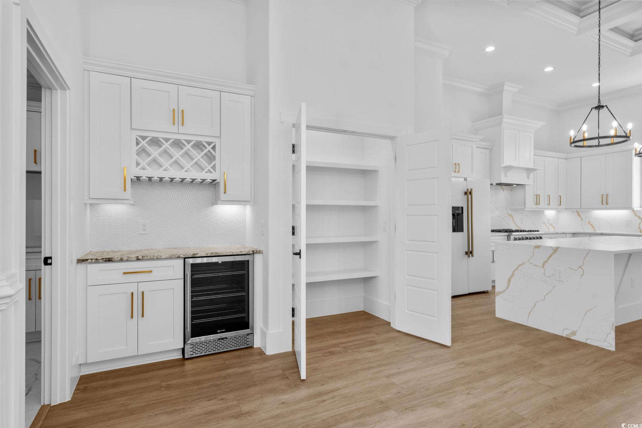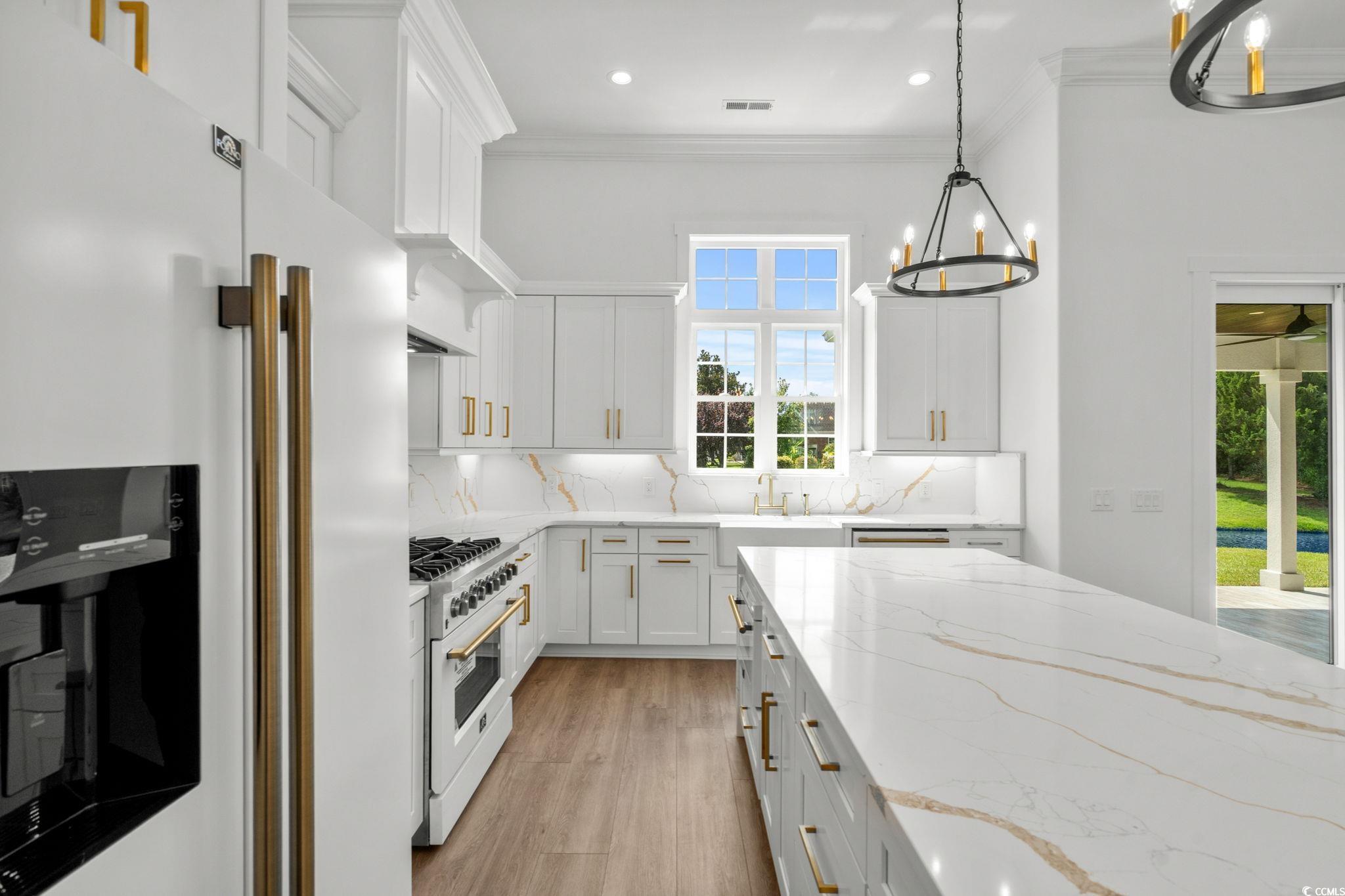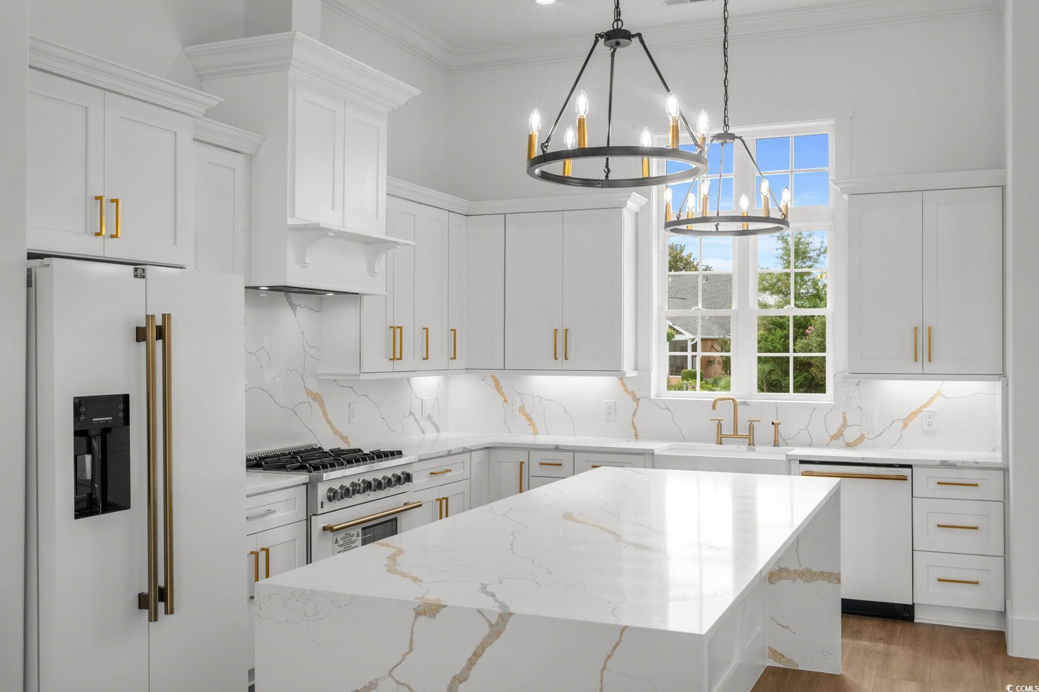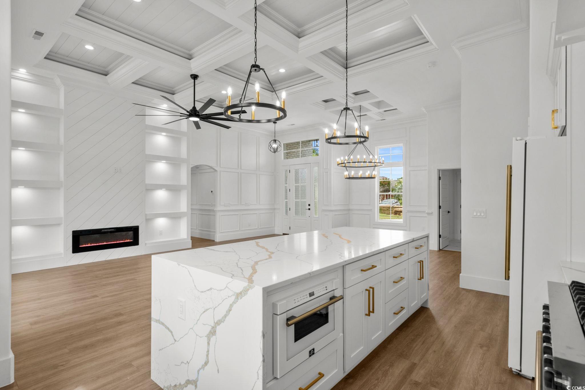 Welcome to the Stunning Cutlass Model in Covington Lake! This exclusive 4-bedroom, 3-bathroom custom home sits on a generous 0.26-acre waterfront lot with over 152 feet of direct pond frontageoffering serene water views right from your backyard! From the moment you arrive, the stucco and stone exterior, side-load garage, and custom curb appeal immediately set this home apart. Inside, youre welcomed by an open and airy layout featuring coffered ceilings, shiplap accents, and a seamless flow between the formal dining area, kitchenette, and living space. The gourmet kitchen is a dreamfeaturing a gas cooktop, custom range hood, and beautiful trim detail throughout. This split-bedroom floor plan offers privacy and functionality. The oversized primary suite includes tray ceilings, a spa-style en-suite bath with a custom-tiled shower, free-standing soaking tub, and fully built-in custom closets. Each of the three additional bedrooms has its own unique detail, with one featuring its own private en-suite bathroomperfect for guests or multigenerational living. Step outside to the expansive covered rear porch, complete with a full outdoor kitchen, perfect for entertaining. This home also includes thoughtful extras like a built-in cabinet sink in the garage and a high-end trim package. Located in highly desired Carolina Forest neighborhood called Covington Lake! Covington lake offers a neighborhood pool and playground! Carolina forest is home to several outings including restaurants shopping and close to CCU for local college sports!! Still with 15 minutes from the Sandy shores of the Carolinas this is a must see, Schedule today while you can!