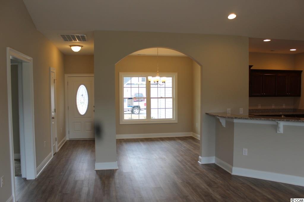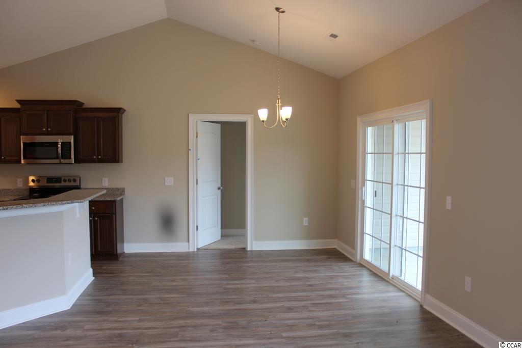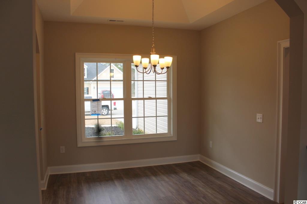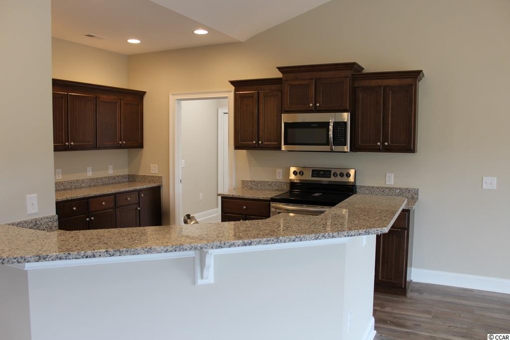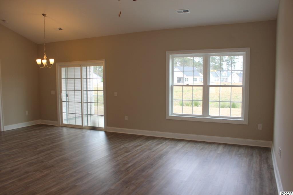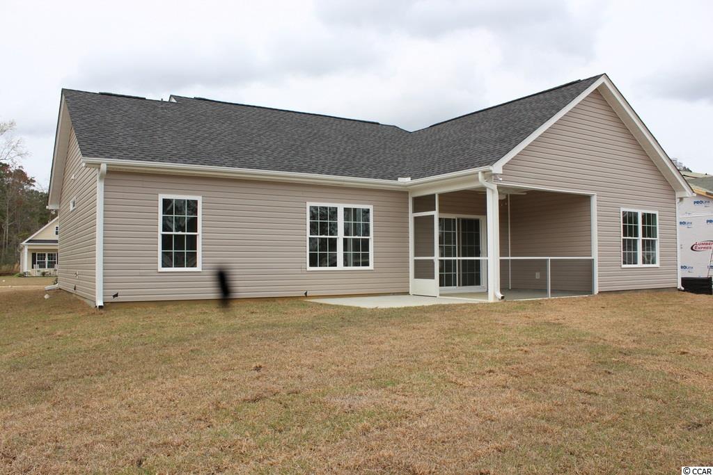 Free Golf for Life Popular Hickory with open floor plan, split bedrooms, and a large front porch. Included home features are kitchen with stainless steel appliances, custom wood cabinets with crown molding and brush nickel hardware, granite countertops, breakfast nook and a formal dining room with tray ceiling. Large living room with vaulted ceilings and fan. Master bedroom features a vaulted ceiling, ceiling fan and huge L shaped walk-in closet. Master bath has raised height double bowl sinks, linen closet, and walk-in shower with seat. Both bathrooms have comfort height commodes. All bedrooms have ceiling fans with lights. Upgraded waterproof, wood-look luxury vinyl plank runs through out the living areas with RCM tile in the laundry room and bathrooms, carpet in the bedrooms. Spacious front porch and rear screened porch with extended 20x98 patio. Included features include Lot E windows with screens, energy efficient homes, interior trim 3 casings, 5 baseboards. Spacious finished/painted 2car garage with 2 automatic door openers, pull down stairs to attic storage. Irrigation system, gutters, sodded and landscaped yard. Amazing included features! Easy access to Myrtle Beach, Conway, and North Myrtle Beach. Only 2.9 miles to Hwy 22. Video is for illustrative purposes only and may be of similar house built elsewhere. Square footage is approximate and not guaranteed. Buyer is responsible for verification.