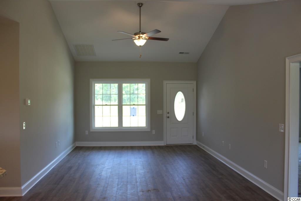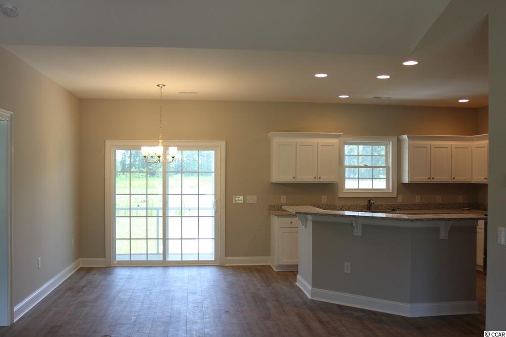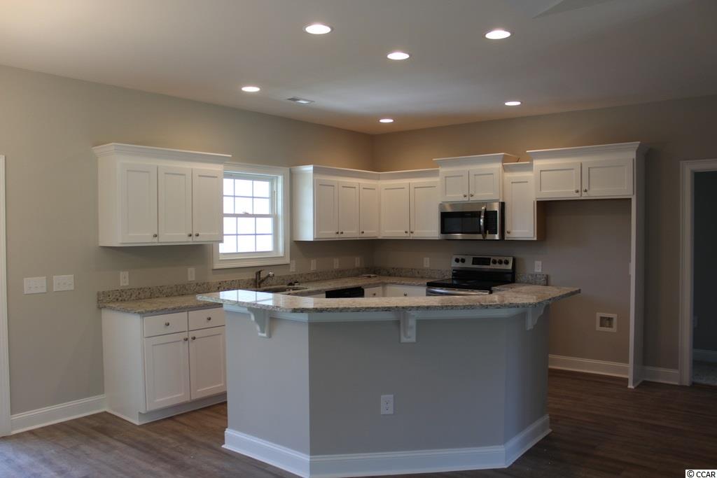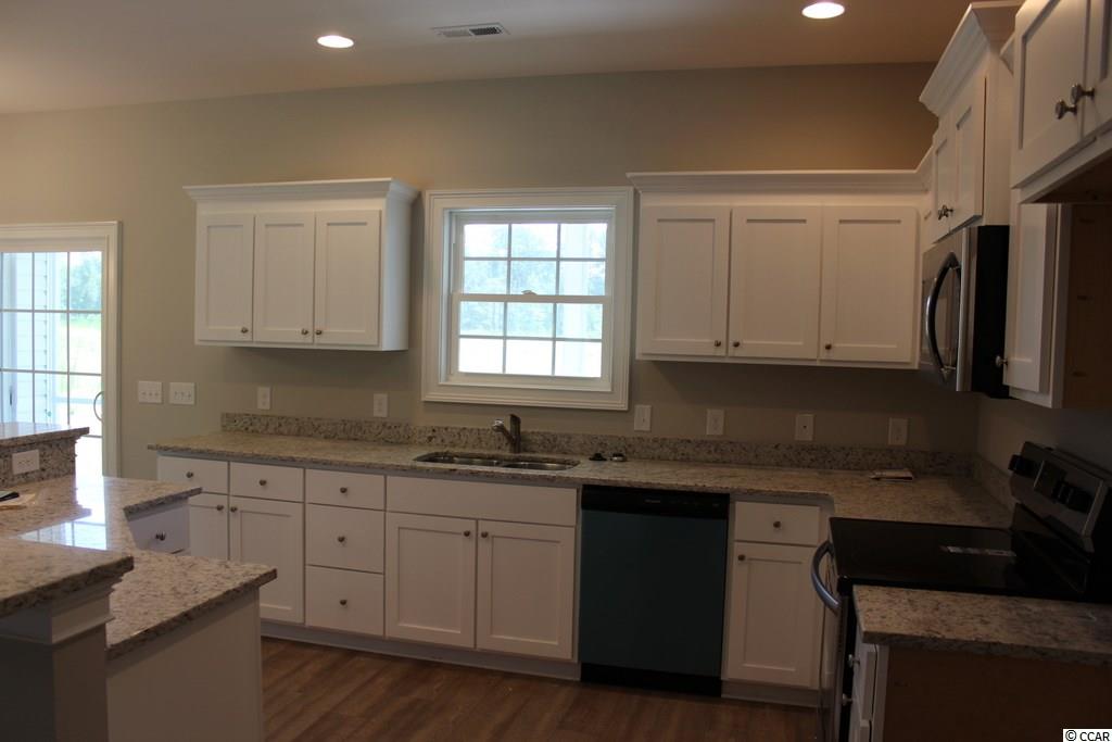 Move-In Ready! Single level 3 bedroom 2 bath ranch style home located in established golf course community. This home features a split floor plan with a spacious, open kitchen, breakfast bar, and granite counter tops. Stainless steel appliances include microwave, smooth top electric range and dishwasher. Solid wood white cabinets with crown molding completes this kitchen. Upgraded luxury, waterproof vinyl plank thru-out main areas of the home. Carpet in the bedrooms and vinyl in the bathrooms and laundry room. Master bedroom suite has a vaulted ceiling with ceiling fan, walk-in closet, raised height vanity with double sinks, 5' walk-in showers and linen closet. 30 year architectural roof shingles, gutters, fully sodded yard and irrigation system. Garage is finished and painted with automatic door opener and pull down stairs to attic storage above. Upgraded interior trim includes 3 1/4"" casings and 5 1/4"" baseboards. Low E glass windows, energy efficient homes. Amazing included features! Free golf (green fees) for life. Easy access to both Myrtle Beach and Conway. Video is for illustrative purposes only and may be of similar house built elsewhere. Square footage is approximate and not guaranteed. Buyer is responsible for verification