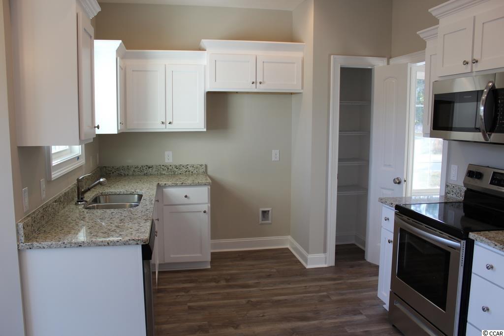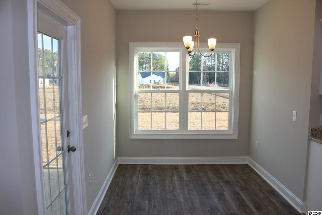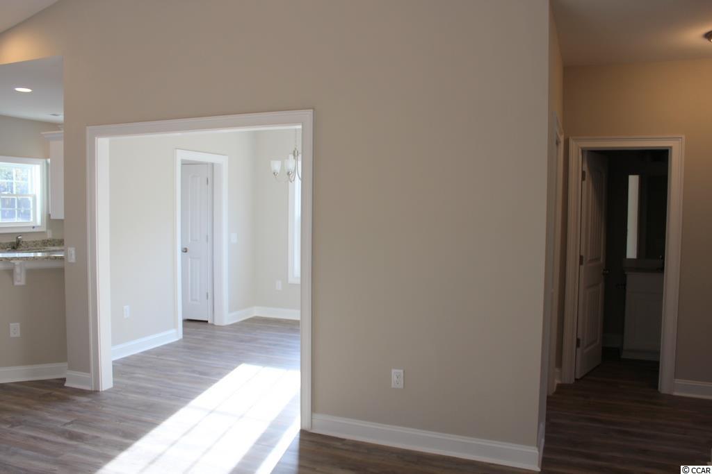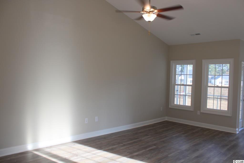 This home is under construction on a desirable corner lot. Free Golf Membership included with each home purchase, pool and clubhouse included in your HOA fees. The Palm is an open floor plan with a large living room with vaulted ceiling and ceiling fan. The kitchen features custom built white wood cabinets with crown molding, stainless steel appliances, pantry, granite countertops, breakfast counter with 16"" bar top, and a breakfast nook. Upgraded waterproof, wood-look luxury vinyl plank flooring to be installed in all the rooms except for carpet in the bedrooms. 18'x12' Master bedroom with tray ceiling and ceiling fan. The master bath has double bowl vanity sinks, garden tub and separate shower. This split floor plan has guest bedrooms and bath on the opposite side of the home. Spacious front porch, rear screened porch and a 15'x8' rear patio. Fully finished and painted 2-car garage with automatic door opener and pull down stairs to floored attic storage. Irrigation system and sodded landscaped yard. Gutters also included. Smooth ceilings and 30 year architectural roof shingles. Interior trims includes 3 1/4"" casings and 5 1/4"" baseboards. Low E glass windows, energy efficient homes. Easy access to both Myrtle Beach and Conway. Square footage is approximate and not guaranteed. Buyer is responsible for verification.