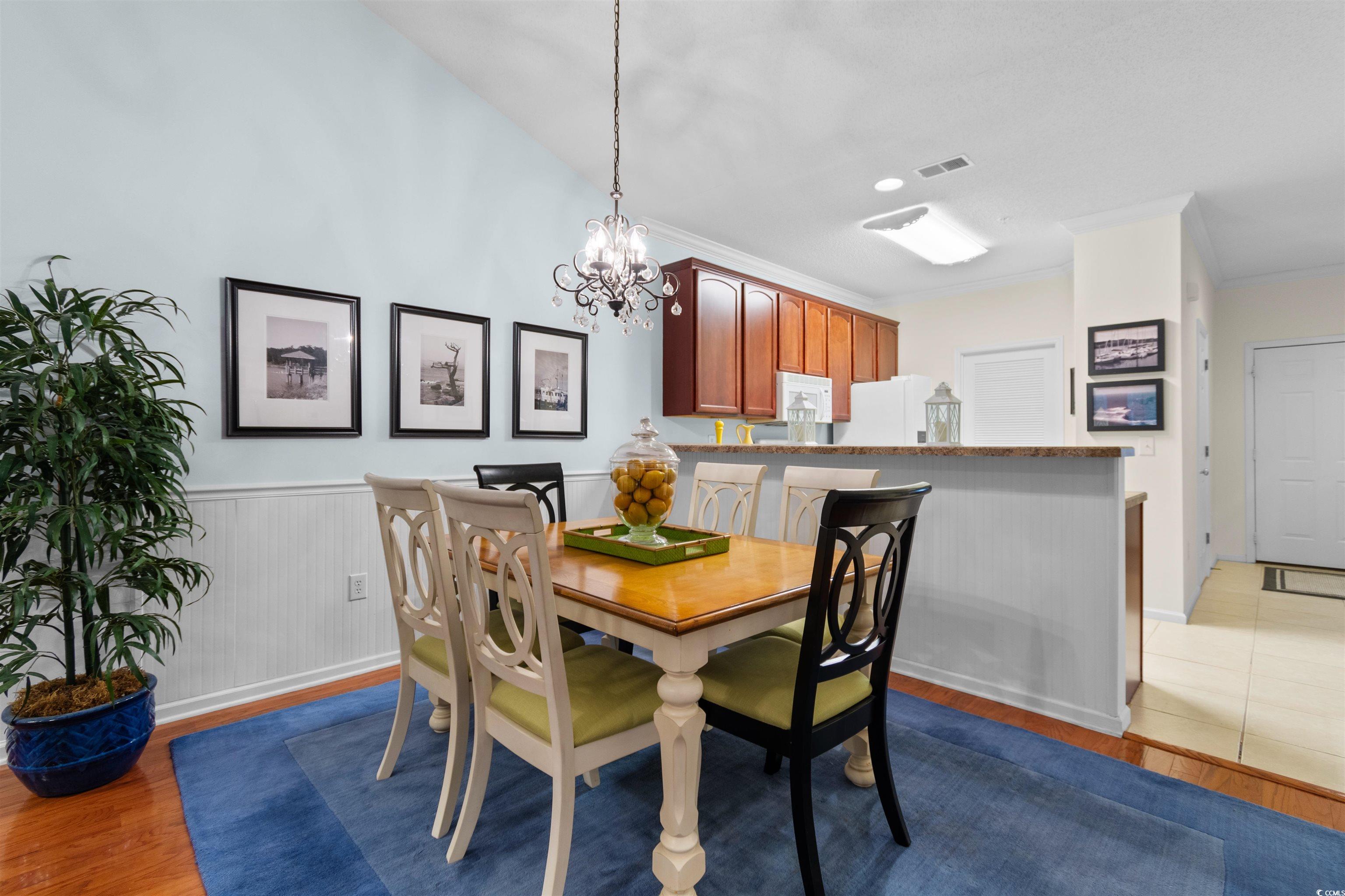 Sip your morning coffee while relaxing on your private screened balcony listening to the wind in the tall pines and watching golfers test their putting skills as you overlook the first green at Blackmoor Golf Club. This fully furnished two-bedroom, two-bathroom condo located minutes from beaches, the Murrells Inlet Marshwalk, shopping, restaurants, and medical facilities offers you just this opportunity. Welcome to Marcliffe at Blackmoor and your turn-key condo where all you need to bring is your swimsuit and sunscreen so you can enjoy the community pool just steps away from your condo or head right to Huntington Beach State Park for hiking, biking, or long walks on miles of shoreline. This condo has been a second residence for the owners and not part of any rental program. It includes all the furniture, beds, TVs, appliances, washer and dryer, rugs, lamps, hanging wall dcor, and select linens and dishes. Set in a tropical beach theme with 13.5' vaulted ceilings in the great room, 9' ceilings throughout, and a huge, screened rear balcony with storage closet. New Dishwasher and Refrigerator in 2024. HVAC was replaced in 2021. This building has already received the exterior stair upgrading in 2024 and a new Roof in May 2025.
