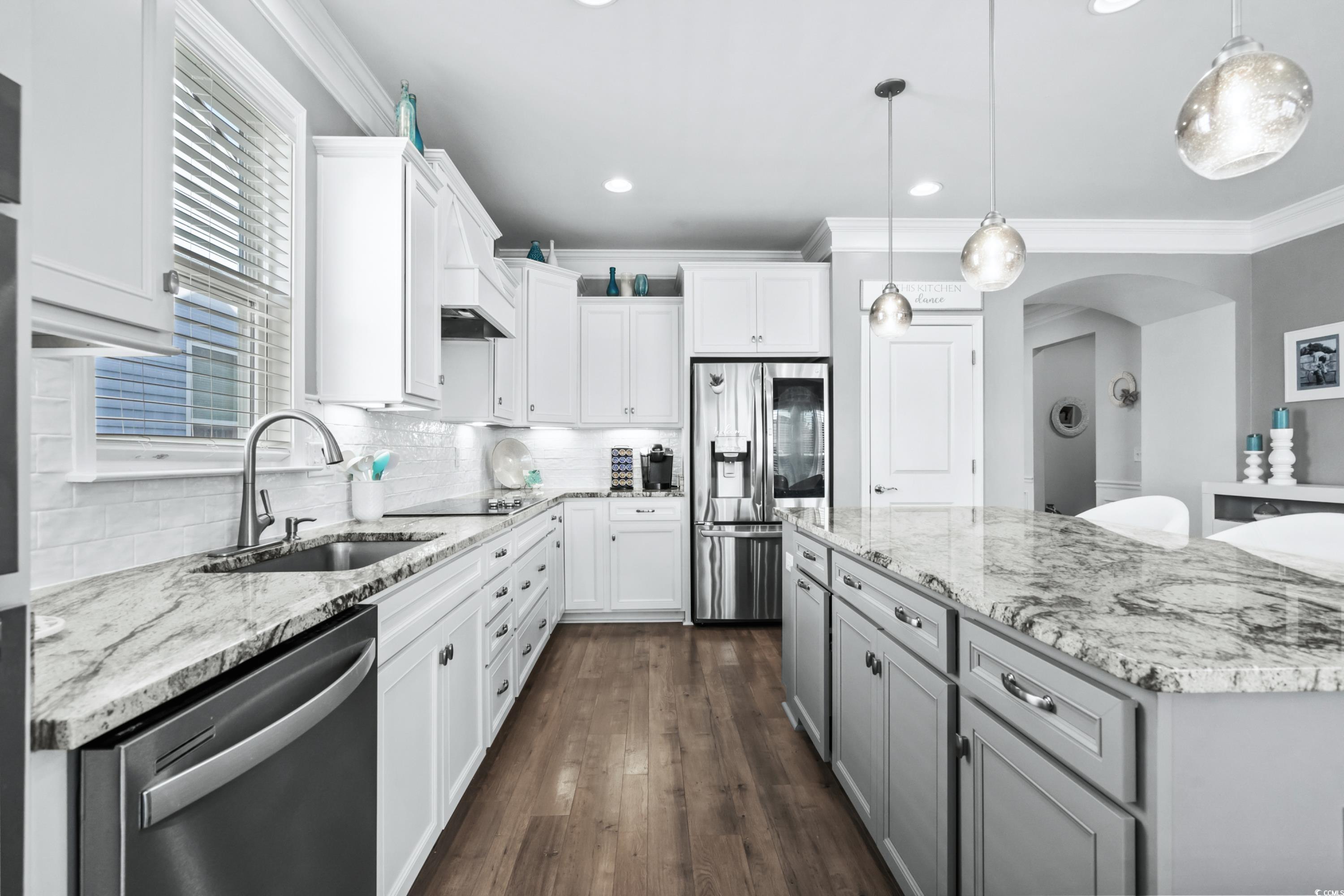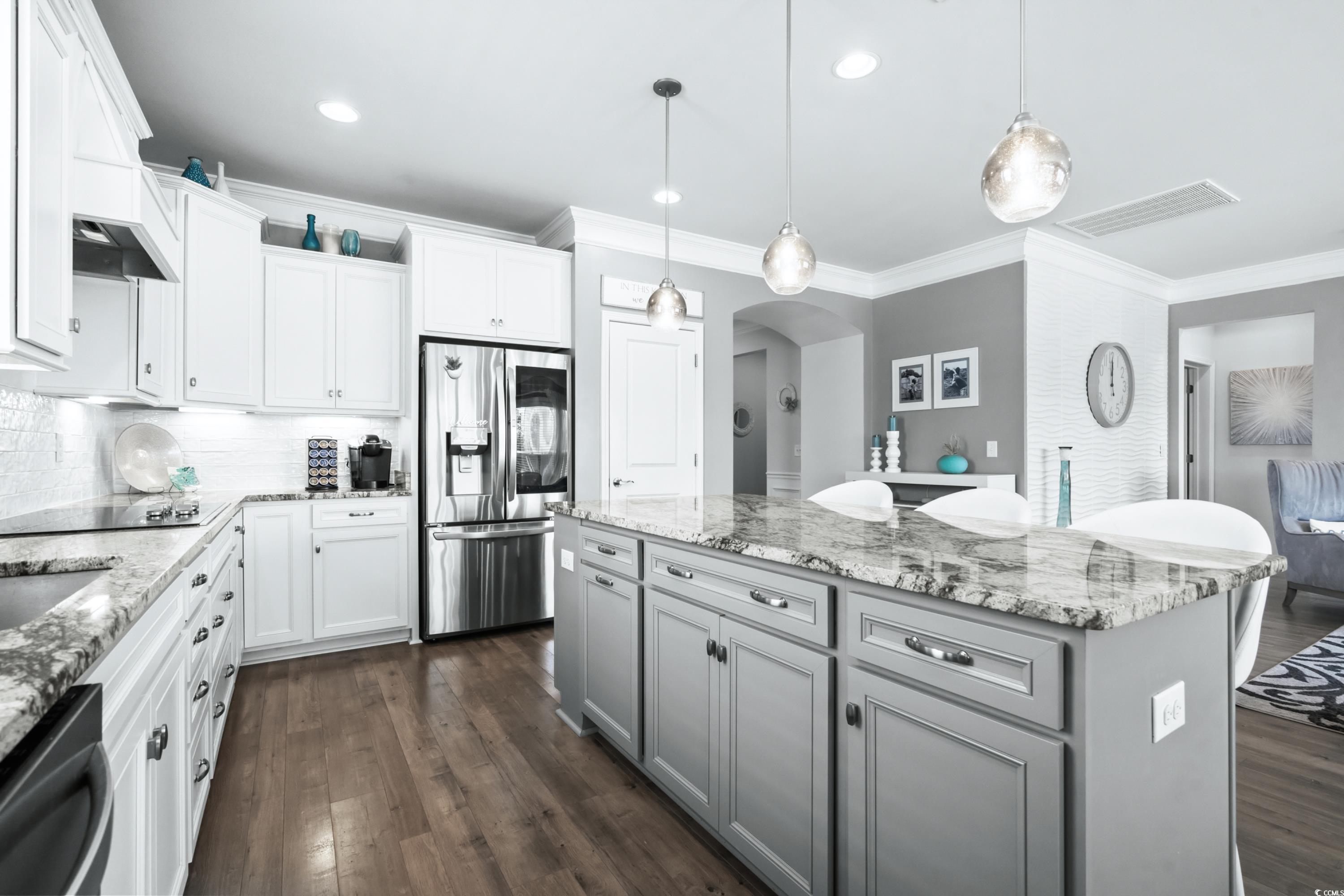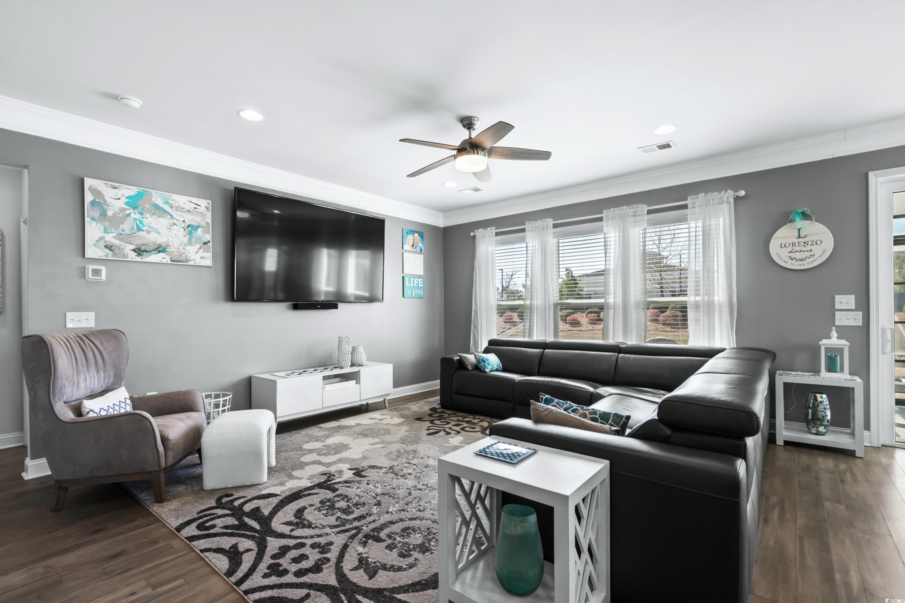 Welcome to your new home in the prestigious Del Webb at Grande Dunes community, a haven exclusively for those aged 55 and above. This stunning 3-bedroom, 3-bathroom property, which shows like a model, showcases the highly sought-after Abbeyville floor plan, offering an exquisite blend of an open-concept kitchen, dining, and living room area. Prepare to be captivated by the kitchen's elegant granite countertops, complemented by a generously sized island, built-in stainless steel appliances, a stylish backsplash, pantry, and under-cabinet lighting. Accent walls and shiplap details add to the home's charm. The private office provides a dedicated space for work or study. Situated on an exceptional homesite, this residence offers delightful views visible from various rooms, including a cozy 3-season rooman ideal spot to unwind. The primary bedroom is bathed in natural light, creating a serene and tranquil ambiance. Step into the owner's bath, where you'll find a double vanity adorned with a beautiful granite countertop, a tastefully tiled shower, and an expansive walk-in closet. The split-bedroom plan ensures a comfortable space for guests, complete with an additional upstairs bedroom, large loft, and a guest bath. Embracing the latest construction standards, this beautiful home incorporates modern conveniences like irrigation, a Sentricon and Taexx termite system, gutters, and energy-efficient features. The garage boasts an epoxy floor for added durability. Del Webb amenities are unparalleled, offering a vibrant active community experience. Meet new friends at the monthly events and daily activities hosted at the Amenity Center, take a refreshing dip in the indoor or outdoor pool, or stay active with facilities like the gym, bocce ball, pickleball, and tennis courts. Enjoy leisurely strolls or bike rides along the countless sidewalks and the paved path running alongside the beautiful intracoastal waterfront. Running errands or heading to the beach is a breeze with your golf cartthe ultimate beach life necessity! And speaking of the beach, easy access is granted via the Grande Dunes Beach Club, a delightful amenity included in the HOA amenities.