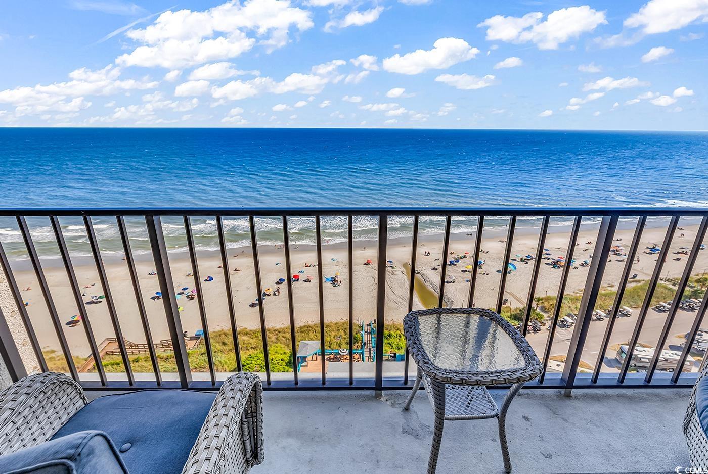 Rare opportunity to own one of the few 2 bedroom direct oceanfront units at Myrtle Beach Resort Renaissance Tower! MyrtleBeach Resort is a 33-acre gated oceanfront community with many amenities including six pools with two indoors, a lazy river, hot tubs, saunas, tennis courts, pickle ball, fitness rooms, bocce court, 24-hour security, charcoal grills and picnic facilities scattered throughout and activities for all ages from playgrounds to a beachfront bar & grill. This fully furnished unit is updated and ready for you to move in as a primary residence, a vacation home or an investment property. The primary bedroom, which has access to the balcony, overlooks the ocean and has a brand new King size bed. It's the perfect spot to enjoy the gorgeous Grand Strand sunrise without ever having to get out of bed. The Primary suite also has it's own private bathroom. The main living area has an open floor plan, with a full kitchen, small dining area and an ample living room, all overlooking the beautiful Atlantic Ocean. There is a second bedroom with a twin bed over a full size bed bunk bed all equipped with bunkie boards. Making this perfect for a rental property or to bring the whole family. There is also a third bed available in the second bedroom which is adjacent to a second full bathroom. The unit has an updated Wifi enabled Smart thermostat with remote thermostat control through a phone app and a Schlage wifi lock for the front door. Newer windows and sliding glass doors. Renaissance Tower has been recently renovated with a new pool overhaul, new laundry facilities, a video arcade & pool room. There is a new outer deck leading to the Quarter Deck Tiki Bar. There is updated landscaping, a new weightroom, new jacuzzi and pool showers.
