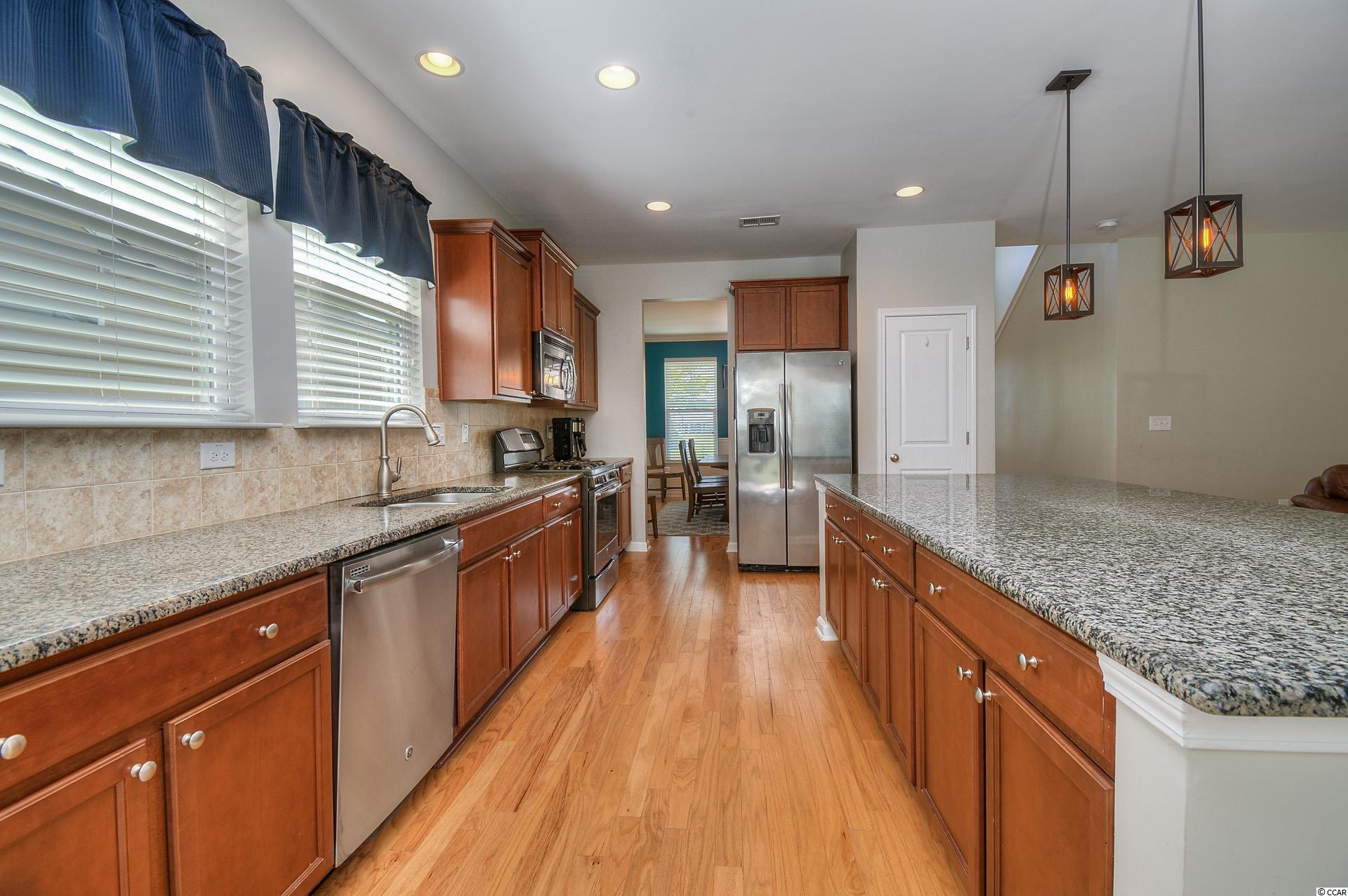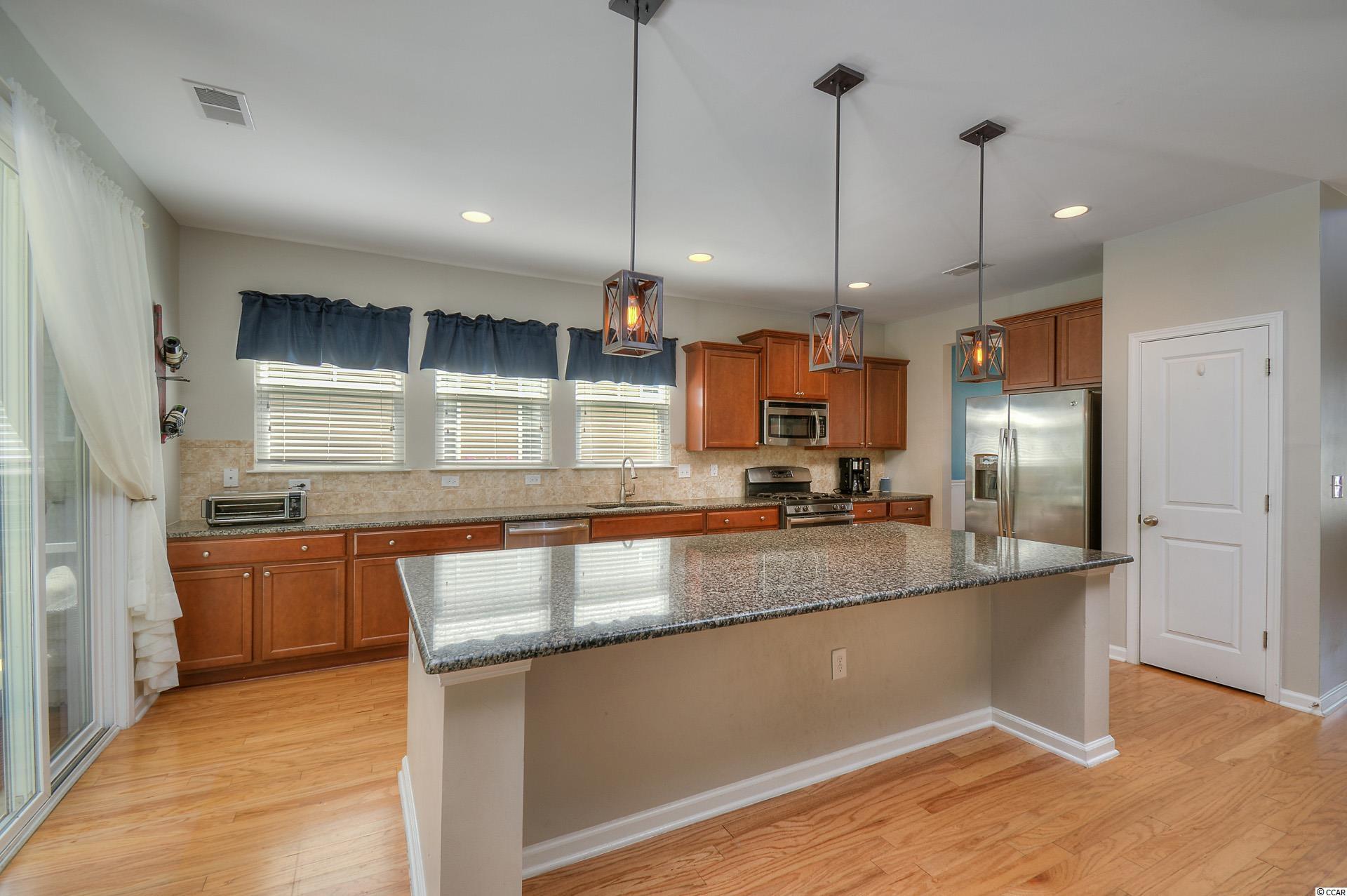 Welcome to 598 Carolina Farms Blvd. located in The Farm in Carolina Forest. This home features 4 bedrooms plus a bonus room and is in the natural gas section of the neighborhood. The two-story entry allows abundant natural light into the home. The dining room with chair rail and crown molding, kitchen, living room, guest bedroom and full bathroom are located downstairs. The kitchen is open to the living room and features a large island, a gas stove and plenty of cabinets and counter space. The screened porch and fully fenced backyard can be accessed from the kitchen. The seller added a large concrete patio off of the screened porch. The patio provides plenty of room for a table and chairs and fire pit. The primary bedroom and bathroom are located upstairs. The bedroom features a tray ceiling and room for a sitting area. The bathroom includes double sinks, a walk-in shower and a garden tub. The remaining two bedrooms, full bathroom, laundry room and large bonus room (19x19) are also located upstairs. Neighborhood amenities include two pools, a basketball court and childrens playground. Trash, cable and internet are also included in the HOA fee. The Farm is conveniently located between International Drive and Carolina Forest Blvd. plus a short drive to Hwy. 31. The neighborhood is also near schools, grocery stores, restaurants, shops and the beach.