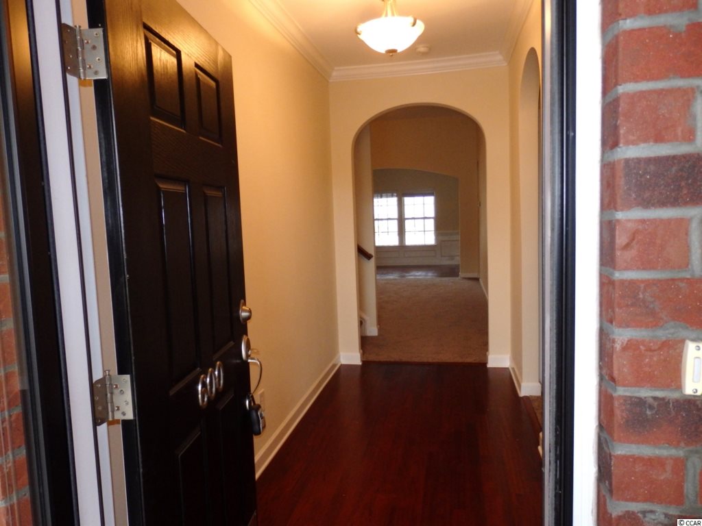 Situated near the historic River Town of Conway, the Glenmoor community offers peaceful, gracious living in an idyllic country setting just minutes from beaches, shopping, restaurants and all the attractions of Myrtle Beach. Front porch with impressive entrance foyer, Brazilian cherry floor, leads to a open floor plan Great Room. with vaulted ceiling, gas fireplace. FDR with Brazilian cherry floor, wainscoting, chair railing and crown molding. Open kitchen with breakfast nook, recessed can lighting, Corian countertops and 42 maple cabinets. Spacious Master Suite with tray ceiling, large bath with garden tub, shower, double sink, linen closet, large walk-in closet and separate toilet closet. 2nd full bath separates 2 Br. Upstairs bonus room makes an ideal fourth bedroom or entertainment/exercise room. Screen porch, fenced in back yard. Nicely landscaped & ready to move in.