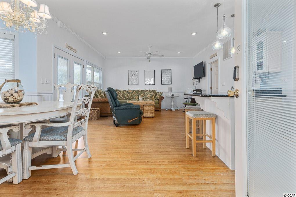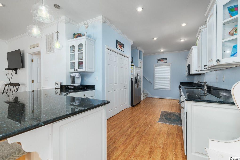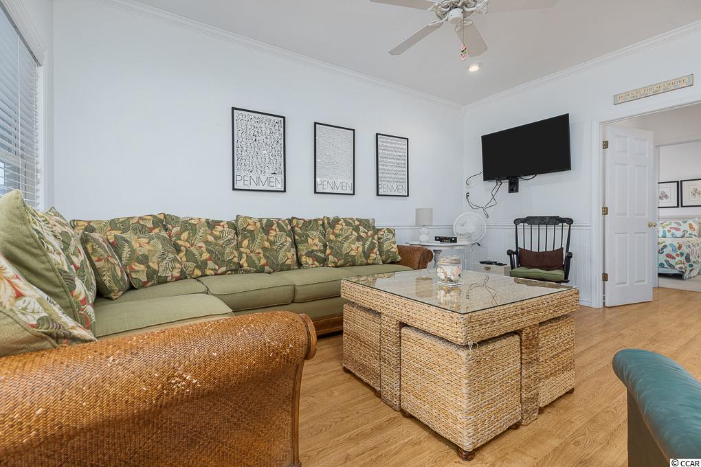 Located at the south end of Myrtle Beach, Ocean Lakes ranks in the top 1% of campgrounds in the United States. Whether you are a year round resident or savvy investor, Ocean Lakes is one of the best places to be! This 4 Bedroom, 4 Bath Raised Beach house can be your primary residence or an Ocean Lakes Family Campground investment property. Situated within walking distance or an easy golf cart ride from the ocean with gorgeous water views from the front balcony. Gather round together on the front porch or in the downstairs sitting area with built-in tv and entertaining area. This open floor plan comes fully furnished with a large kitchen/dining area, granite counter tops, stainless steel appliances and breakfast bar. One level living with 1st floor bedroom, full bath, and laundry room with 3 additional bedrooms and 3 full baths on the second floor. Master suite with valued ceilings features walk in closet and master bath with double vanity. Picnic table, beach chairs, and additional storage all located on the property. Ocean Lakes features 19 beach accesses giving you plenty of ways to find that perfect spot along the beach! Enjoy large playgrounds, workout stations and outdoor recreation games like volleyball, shuffleboard and basketball. You can even rent a bicycle! The Sandy Harbor Family Fun Center is part of Ocean Lakes 2 acre recreation complex that currently includes the pool area with sun decks, a Game Center, our Mini-Golf Course and an indoor/outdoor Cafe. Our waterpark is so much fun with a mat racer, tube slide, lazy river, an additional kiddie pool and a splash zone. Come see for yourself! Square footage is approximate and not guaranteed. All information is to be verified by buyer and buyers agent.