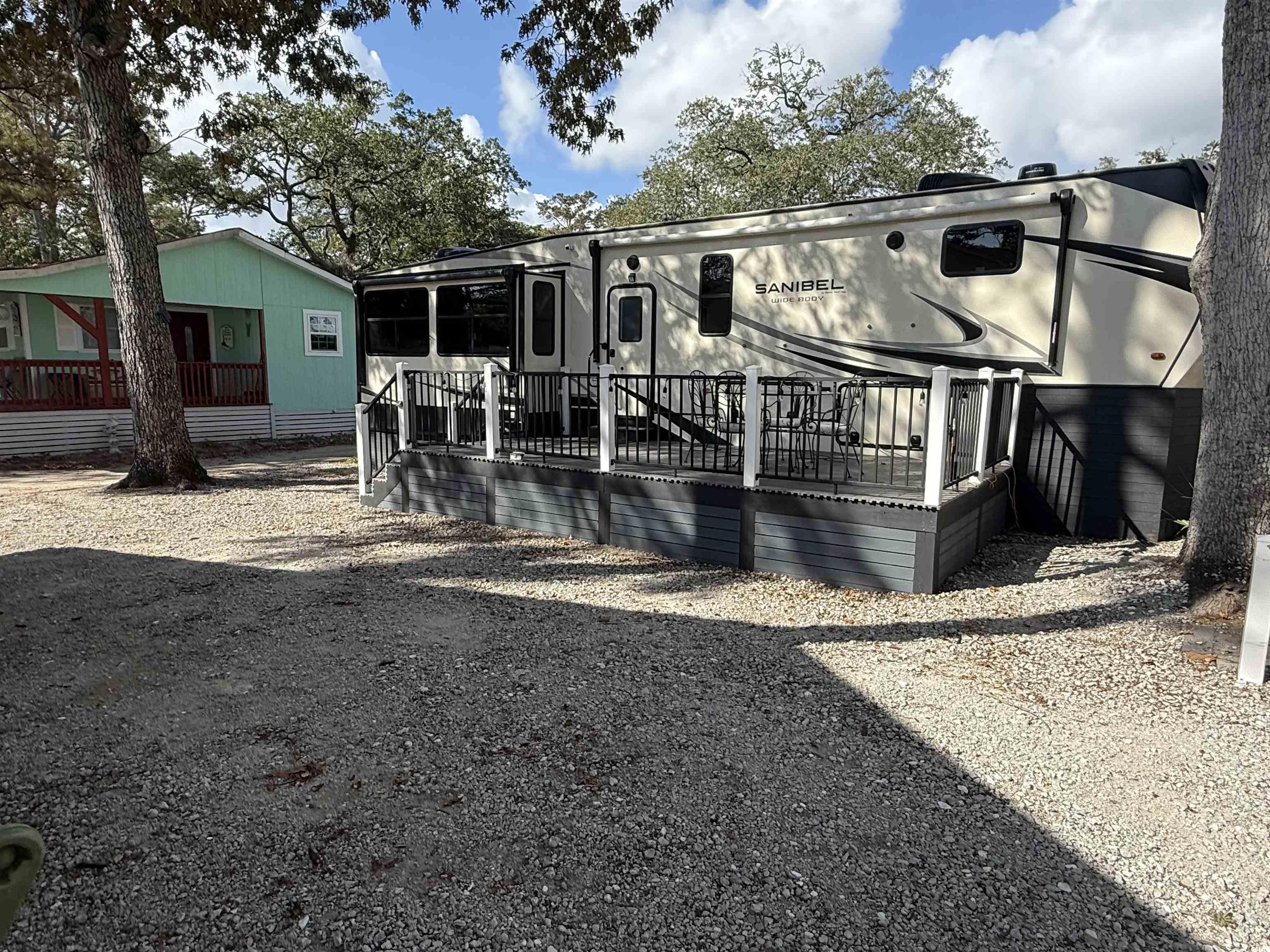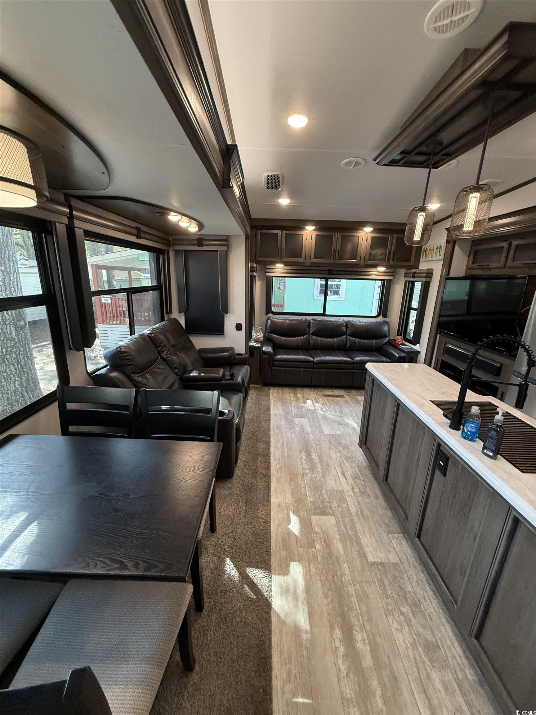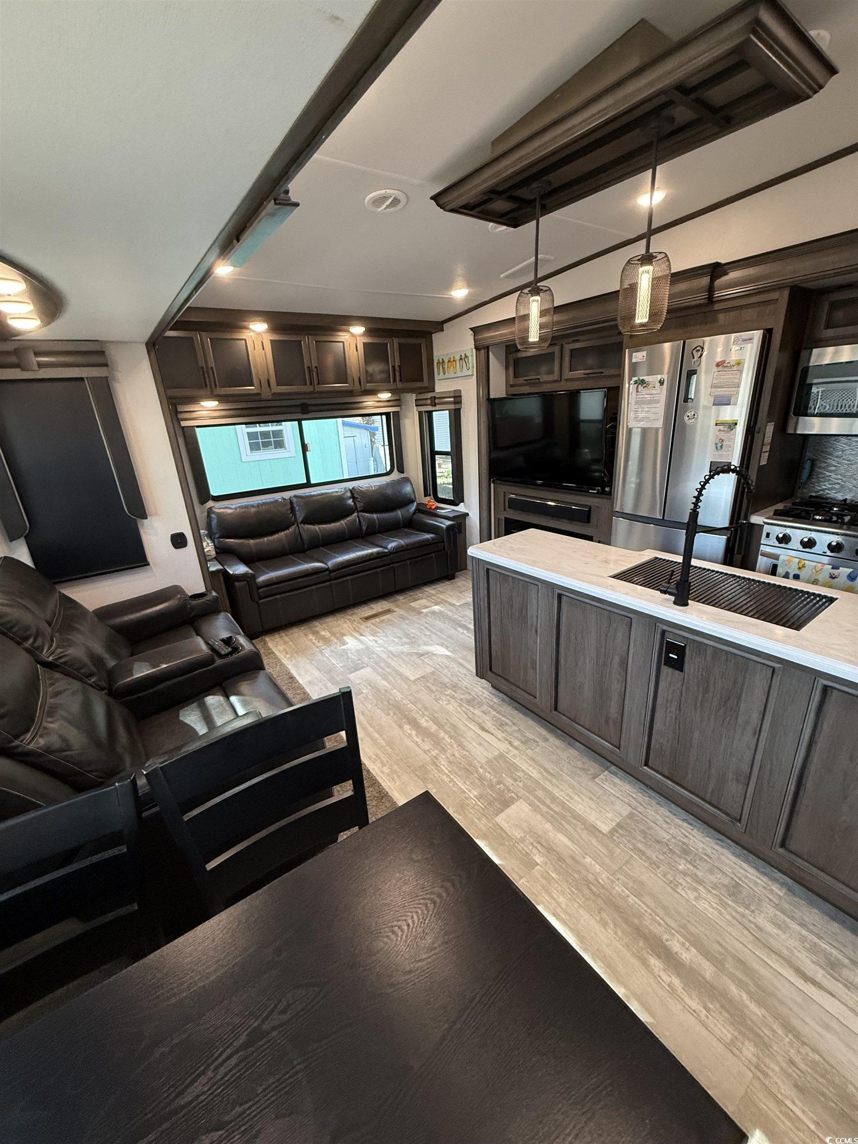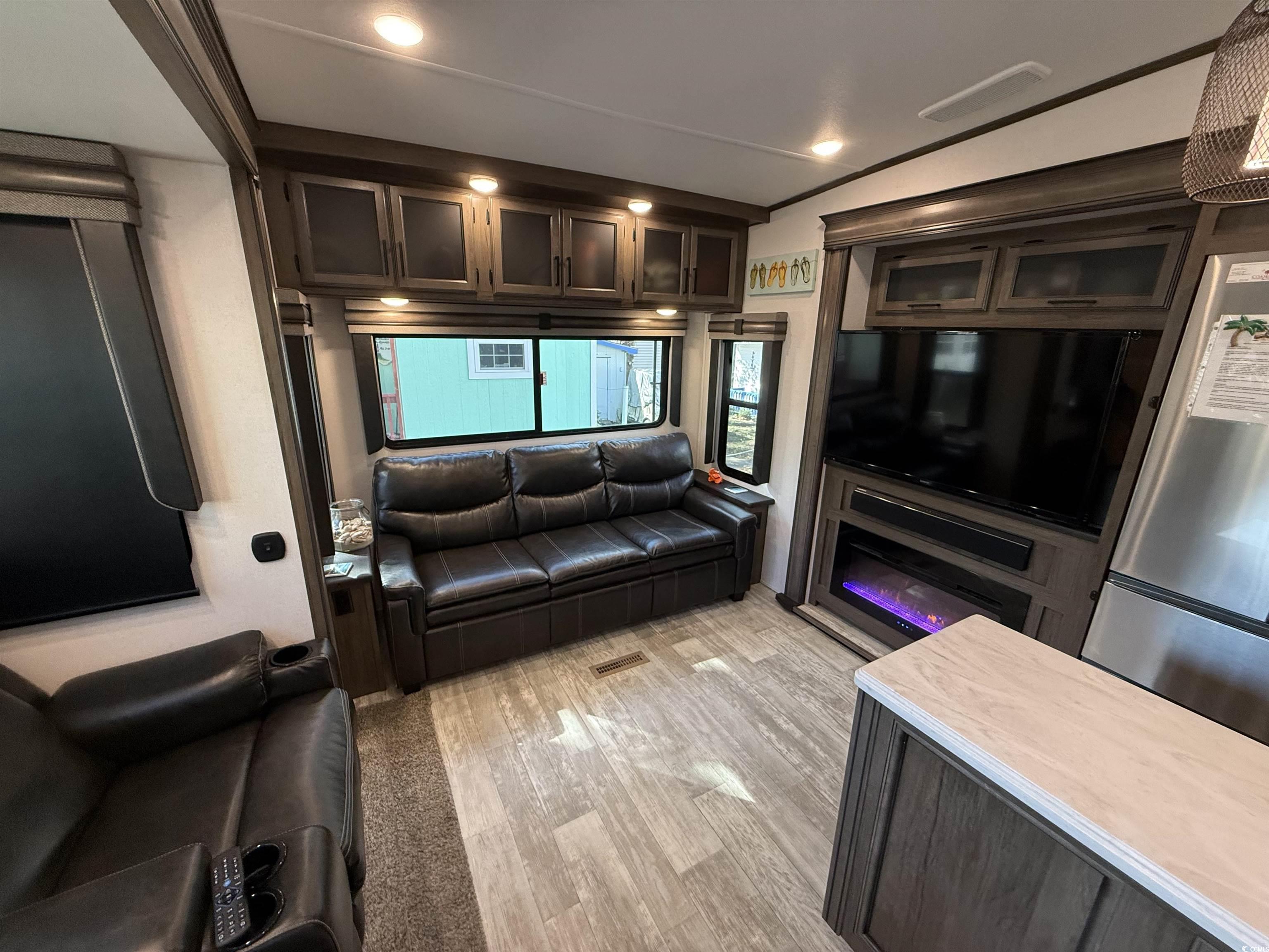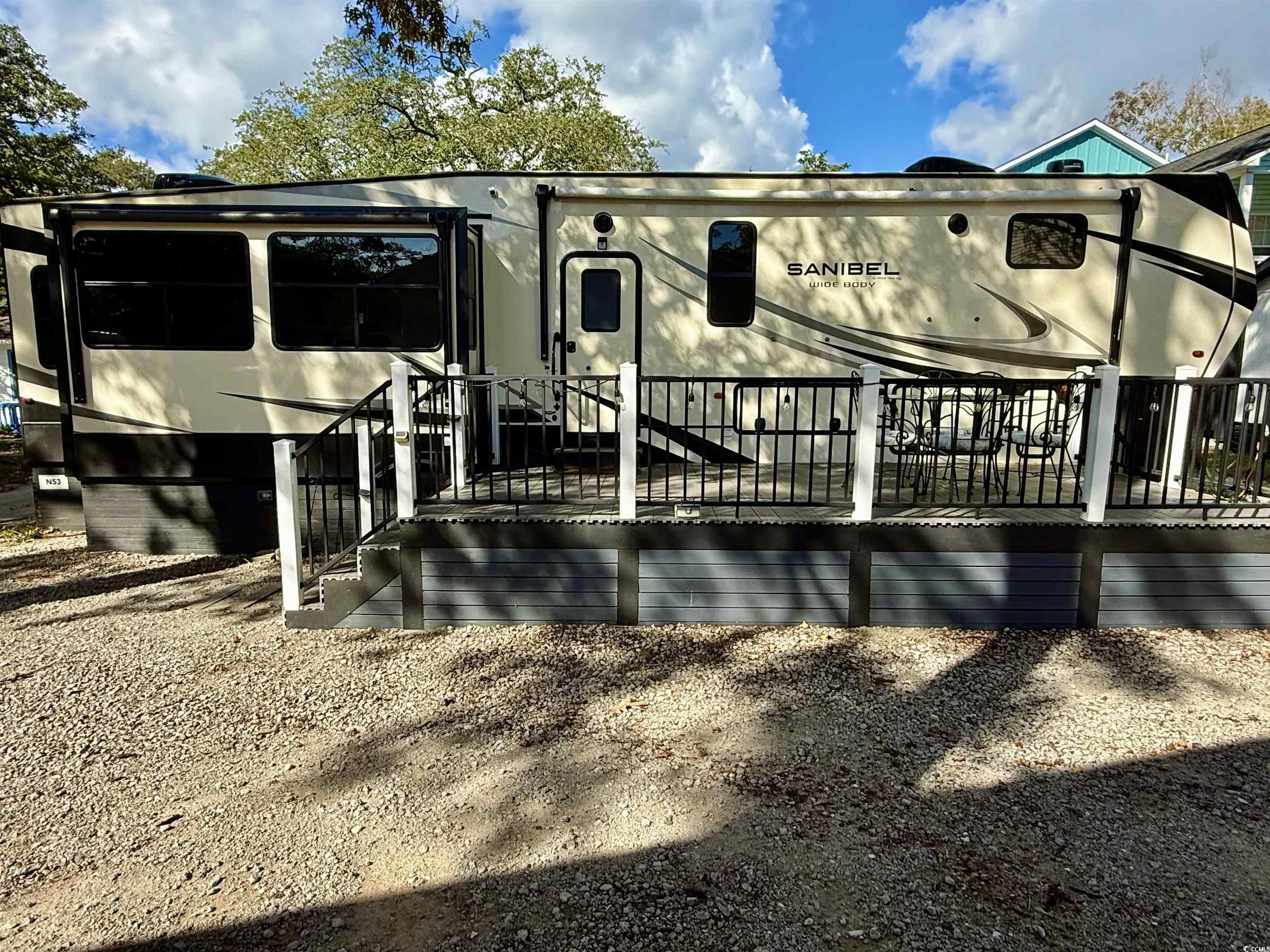 Welcome to your own Beach Oasis! Nestled in the beachfront neighborhood of Ocean Lakes, your very own retreat awaits! This 43ft 2021 Forrest River Primetime Sanibel has all you need to escape the work week and enjoy the beach. Featuring 2 separate bedrooms and an additional loft area, you can easily sleep 5 people in this wide bodied unit. There is also 1.5 bathrooms, with the 1/2 bath off of the second bedroom. The primary bedroom at the front has a large closet for additional storage, and hookups for a washer/dryer inside-though this site comes with a full size washer and dryer in the building. Offering an additional sleeper sofa in the living area for 2 more, there is also theatre seating for movie night, dinette with 4 free standing chairs, blackout shades and an electric fireplace for those cool nights or just lighted ambience. Don't miss the large pantry and full size refrigerator for all of your kitchen needs. Cooking a delicious meal in this unit is a breeze with the space and amenities like a gas stove top and oven and a full size microwave. Never run out of hot water with the on-demand gas water heater in the building providing endless hot water for the unit inside, and the outside shower and the washer in the building. All plumbing has been hard piped throughout and the waste water and sewage has also been hard piped into the ground giving you worry free utilities. The Trex decking on the 10x20 porch gives you space to enjoy sitting outside to read, entertain and enjoy the breeze year round. This unit has been underpinned all the way around and provides a lot of additional storage for your beach chairs and toys, and outside tools and games. One of the greatest features of this unit is it has been hurricane strapped down into the ground offering piece of mind to its owners. Ocean Lakes offers almost a mile of beach front, year-round activities and events, indoor and outdoor pool, water park, putt-putt, basketball court, multiple play grounds, dog park, 24 hour security, trash service and cable tv service-all included in your low yearly lease. The lease is paid half in January and half in July. This unit would make a beautiful family get away and also an easy rental if you chose to do so. This unit is being sold furnished so grab your toiletries and clothes and come on down to the coast. This site, N53 could also have this unit removed and you can have a home built here if you decide to one day. (Approval from Ocean Lakes and Compliance Required - guidelines and setback rules given at that time). The Grand Strand and Ocean Lakes offers something for all ages. Schedule your showing today!