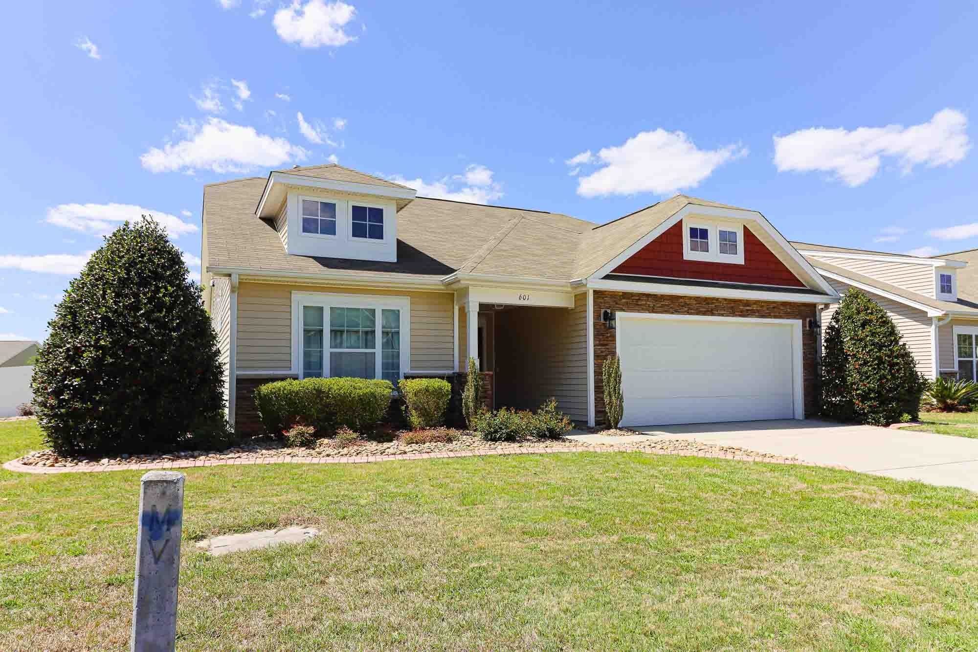 Welcome to 601 Castle Loop, nestled on a corner lot within the charming Summerlyn community of Myrtle Beach. This captivating 3-bedroom, 2-bathroom residence offers a perfect blend of comfort, convenience, and contemporary living. Upon entering, you're greeted by an inviting open living space that boasts soaring ceilings, creating an airy ambiance bathed in natural light. The seamless flow from the living room invites you to explore further, where you'll discover a modern kitchen equipped with a gas range, pantry, breakfast bar, and ample cabinet storage, catering to culinary enthusiasts and casual dining alike. The master bedroom presents a tranquil retreat, featuring a spacious walk-in closet and a cozy sitting area ideal for unwinding after a long day. Step into the ensuite master bathroom, where a vanity and roomy walk-in shower await, offering both style and functionality. Outside, the expansive fenced-in backyard beckons for outdoor enjoyment and relaxation. Complete with a storage shed and a charming patio, it's the perfect setting for hosting gatherings or simply basking in the sunshine. . An added bonus is a sprinkler system with a separate water meter. Summerlyn residents enjoy access to an array of amenities, including a sparkling pool set against a picturesque lake backdropan oasis for cooling off during hot summer days. Conveniently situated off Carolina Forest Blvd, this home offers easy access to The Intracoastal Waterway, pristine beaches, Tanger Outlets on 501, Broadway at the Beach, premier golf courses, shopping destinations, diverse dining options, and vibrant entertainment venues, ensuring endless opportunities for recreation and leisure. Do not miss out on your opportunity to own this gem, book your showing today!