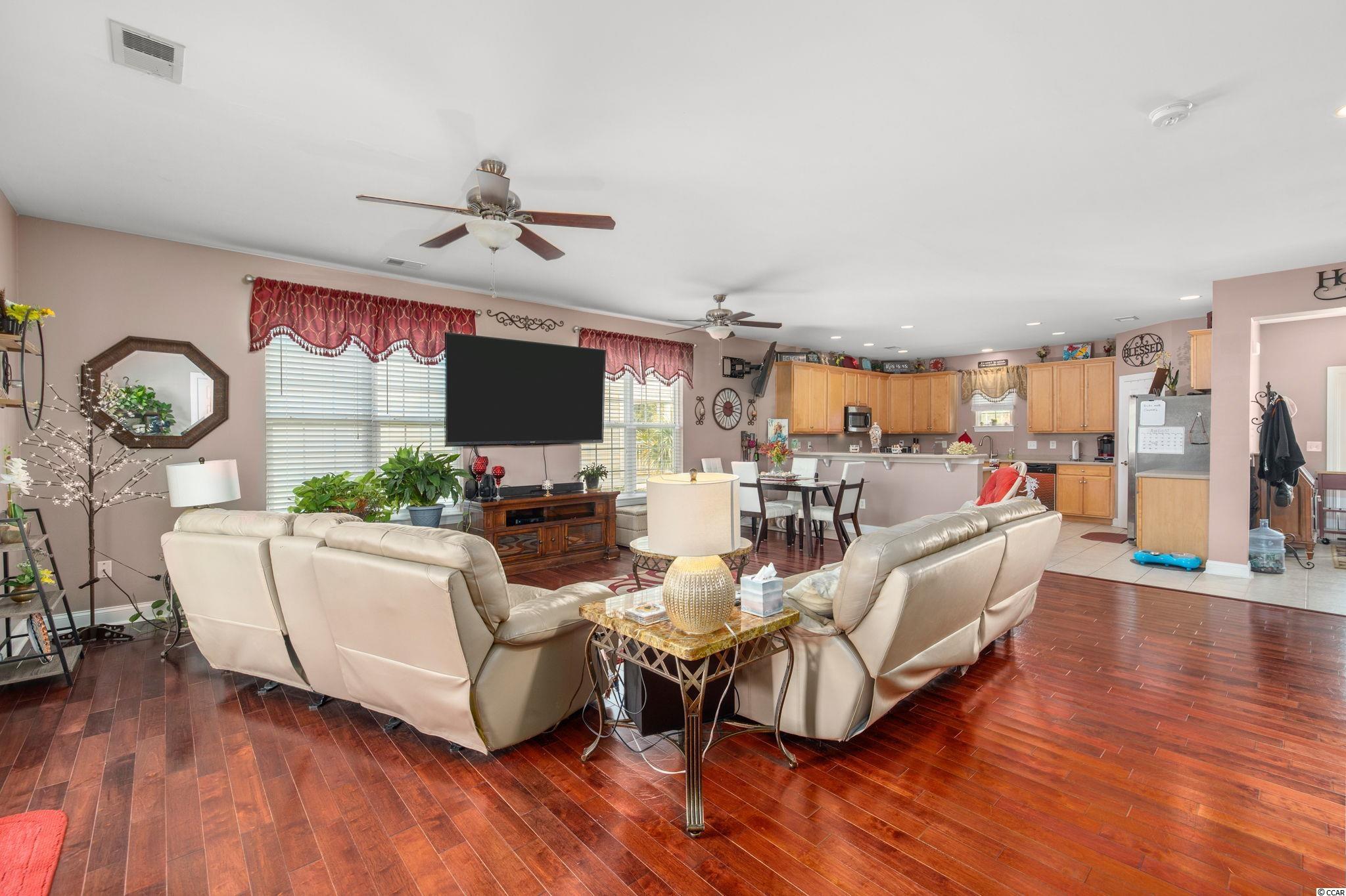 Beautiful home in the heart of North Myrtle Beach. FURNITURE IS NEGOTIABLE. Turnkey and ready to move in, just one block from Main Street. Being located in the Ocean Drive section of North Myrtle makes this home ideal for either a vacation home or primary residence. The home has an open floor plan with a large kitchen that includes stainless steel appliances and tiled flooring which joins the dining and living area that features hardwood floors throughout home. The main floor also features a balcony that runs the entire length of the front of the home. Your master suite has large walk-in closet, and the bath features a garden tub, shower and tiled floors. The master bedroom opens up to a large deck that runs the full length of the second floor and overlooks water behind the home. The top floor also includes two additional large bedrooms and a full bath. Both of these bedrooms have access to a balcony. No HOA Association and No HOA DUES!