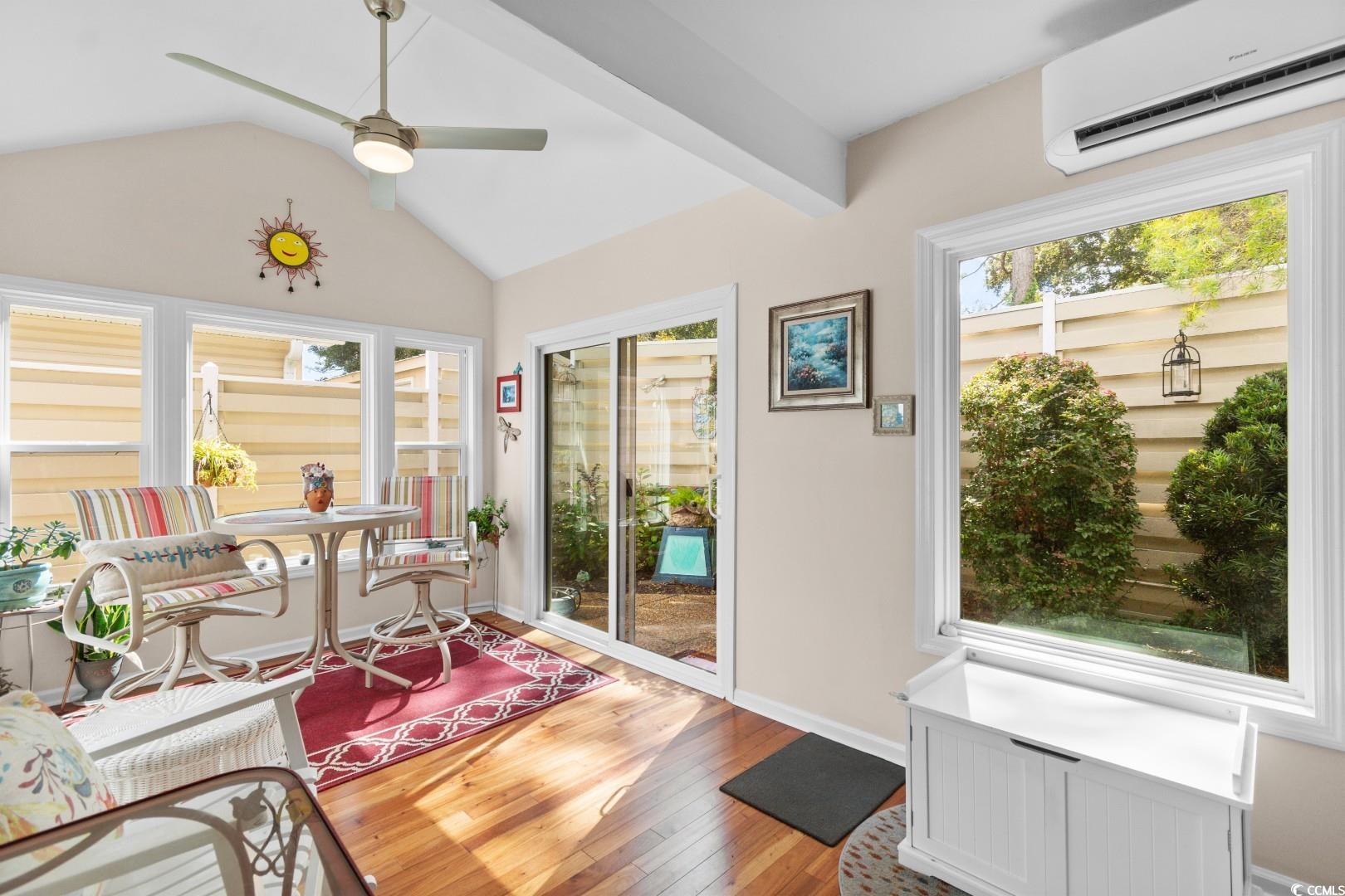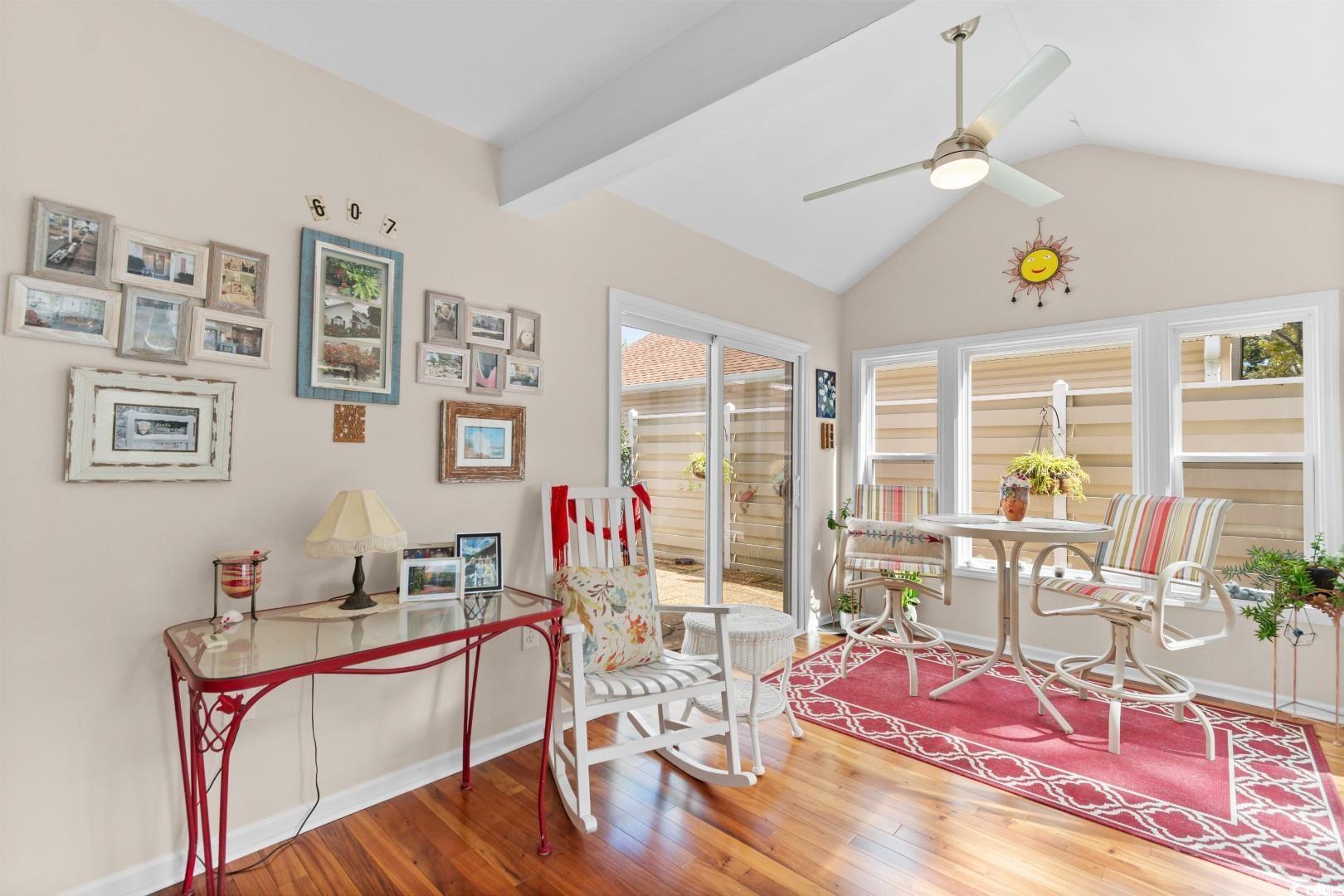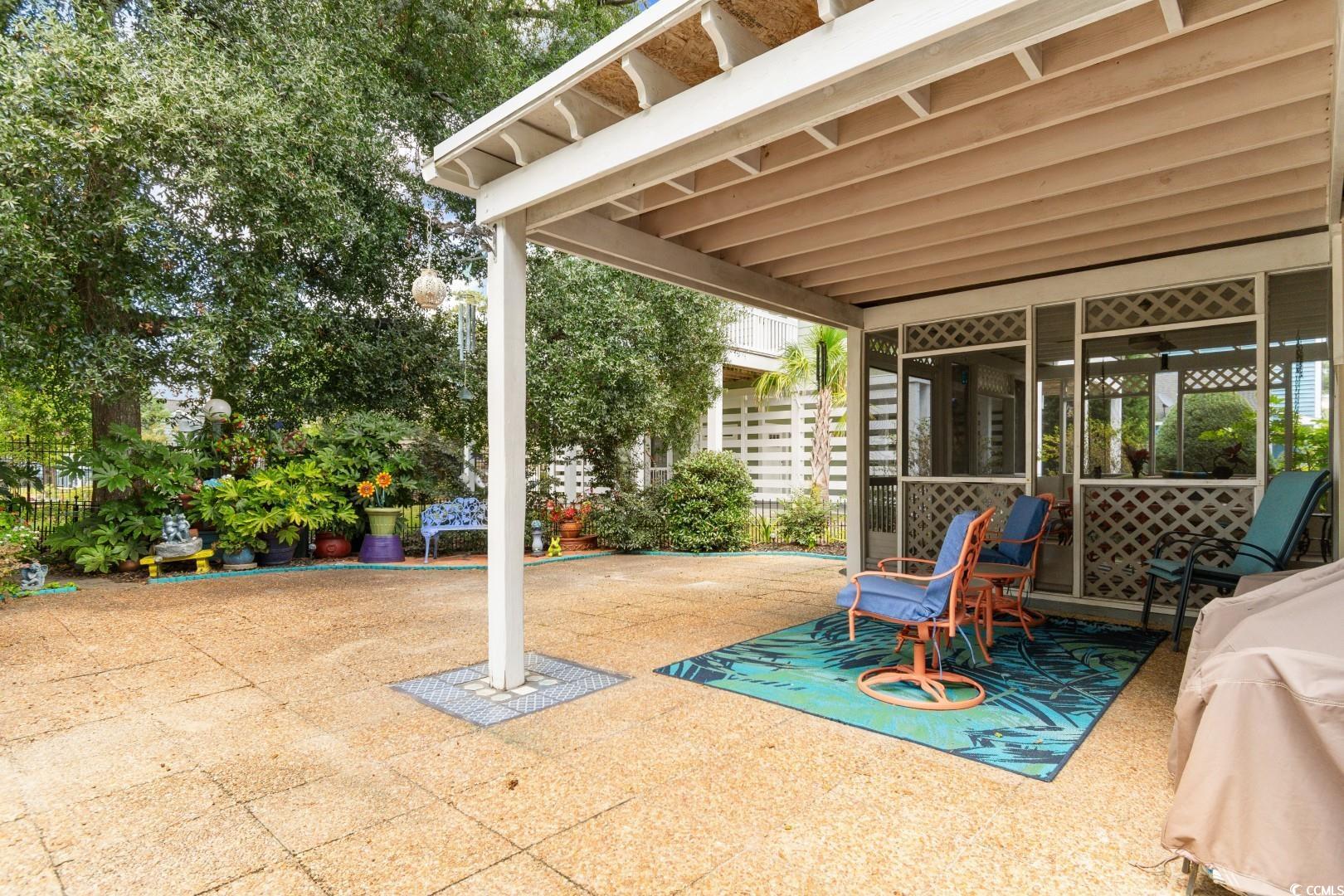 Welcome to 607 Rosemary Ln, a stunning and meticulously maintained 2-bedroom, 2-bathroom single-family home nestled in the highly sought-after Tilghman Woods community of North Myrtle Beach. This residence offers a bright and airy open floor plan, highlighted by a vaulted ceiling in the living room, creating a spacious and inviting atmosphere. The home has seen numerous recent upgrades to ensure modern comfort and peace of mind: in 2015, the bathrooms received new flooring and the entire home was updated with new blinds; 2016 brought a brand new roof, a beautiful sunporch addition, a new bathroom door, and a wrought iron fence; the major mechanical systems and kitchen were addressed in 2017 with a new HVAC system, hot water heater, new kitchen appliances, and granite countertops. Continuing the high standard of care, gorgeous engineered hardwood flooring was installed throughout the home in 2020. In addition a new concrete driveway was added. Final touches in 2022 was a complete remodel of the master bathroom. Also, a beautiful and utilitarian walkway was added in the back of the house for easy access to the back gate which leads to Main St. Located in a prime spot near the Ocean Drive section, residents are just a short distance from the pristine beaches, golf courses, and the vibrant Main Street area. Nearby attractions like Barefoot Landing, Alligator Adventure, the Alabama Theatre, and the Cherry Grove Pier offer endless opportunities for entertainment, shopping, and dining, making this the perfect coastal retreat!