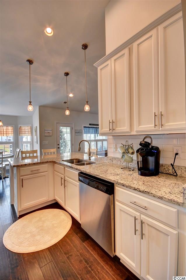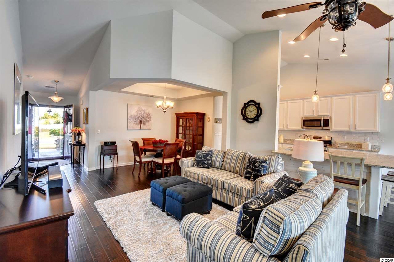 Beautiful ""Camden"" floor plan at Summerlyn in Carolina Forest. This Ranch style home is a 3 bedroom, 2 full bath, that looks brand new and is upgraded both inside and out. Hardwood floors have been laid throughout the entire house, except upgraded tile in the bathrooms and upgraded carpet in the two spare bedrooms. The formal dining room has trey ceilings while the family room has high vaulted ceilings, giving it a more spacious feel, as well as an upgraded ceiling fan and 4 additional can lights. The kitchen has been fully upgraded, including: Granite countertops, 42"" cabinets with crown molding and pull handles, tile back splash, 3 pendant lights over the breakfast bar, vaulted ceilings, 6 can lights, a breakfast nook with a bay window, a large pantry, and stainless steel appliances-including a natural gas range, dishwasher, microwave, and garbage disposal. The spacious Master Bedroom has trey ceilings, hardwood floors, ceiling fan, bay window, and a walk in closet. The Master Bathroom offers tile flooring, raised vanity with two sinks, upgraded cabinetry with pull handles, a large linen closet, and a walk in shower with a glass door and transom window above. The middle bedroom offers a ceiling fan, while the 2nd bathroom offers upgraded tile flooring, upgraded cabinets with pull handles, and a bath/shower combo with a transom window above. A few other upgrades that have been added to the house that will convey with the home: Plantation shutters have been added to all the windows, upgraded light fixtures on both sides of the garage, large light fixture in front of the front door, and an alarm system. The back porch has been transformed into a beautiful All Season Room looking out over the backyard and lake. The All Season Room has tile flooring, ceiling fan, and a wall mounted fireplace (Helps heat the room). The exterior is just as impressive as the inside. For some more curb appeal, shake siding and two dormer windows were added above the garage, a decorative railing outside the front door, lights on each side of garage were replaced by pineapple light fixtures, and a large pineapple light fixture was added to the front entrance. Owner has also added concrete curbing around all flower beds and trees, added an irrigation system, gutters, pull down attic stairs and flooring for storage, added a front storm door, and a touch keypad for easy garage access. Summerlyn is a natural gas community that offers a large community pool, screened in porch area, and restrooms. Located in the most central part of the Grand Strand, Carolina Forest-Summerlyn is close to all local attractions, including: gas stations, grocery stores, restaurants, Tanger Outlets, Coastal Grand Mall, access to Hwy. 31, the airport, and of course, only a few minutes to the beach. All Measurements are estimates and not guaranteed. It's the responsibility of the buyer to verify.
