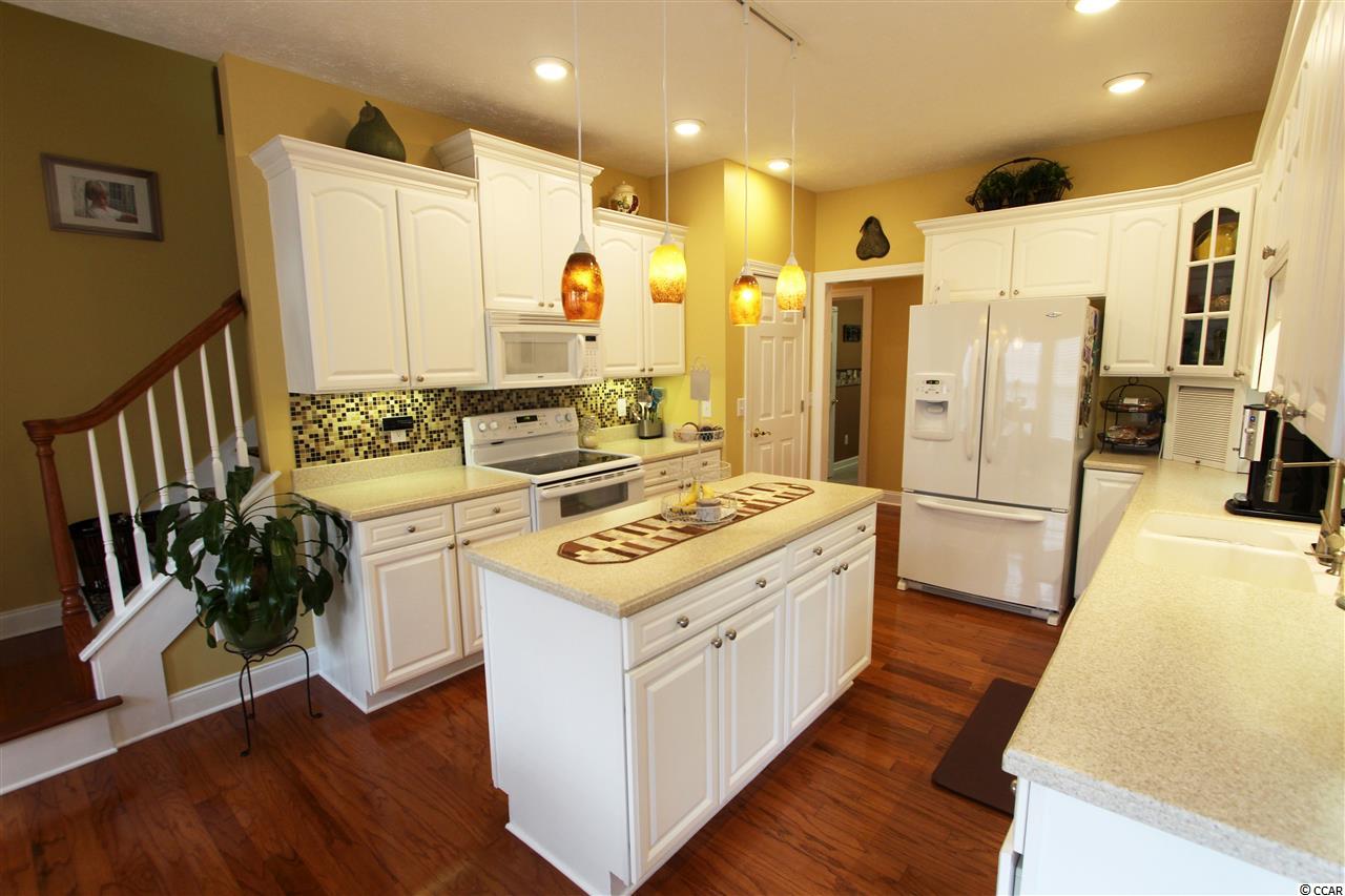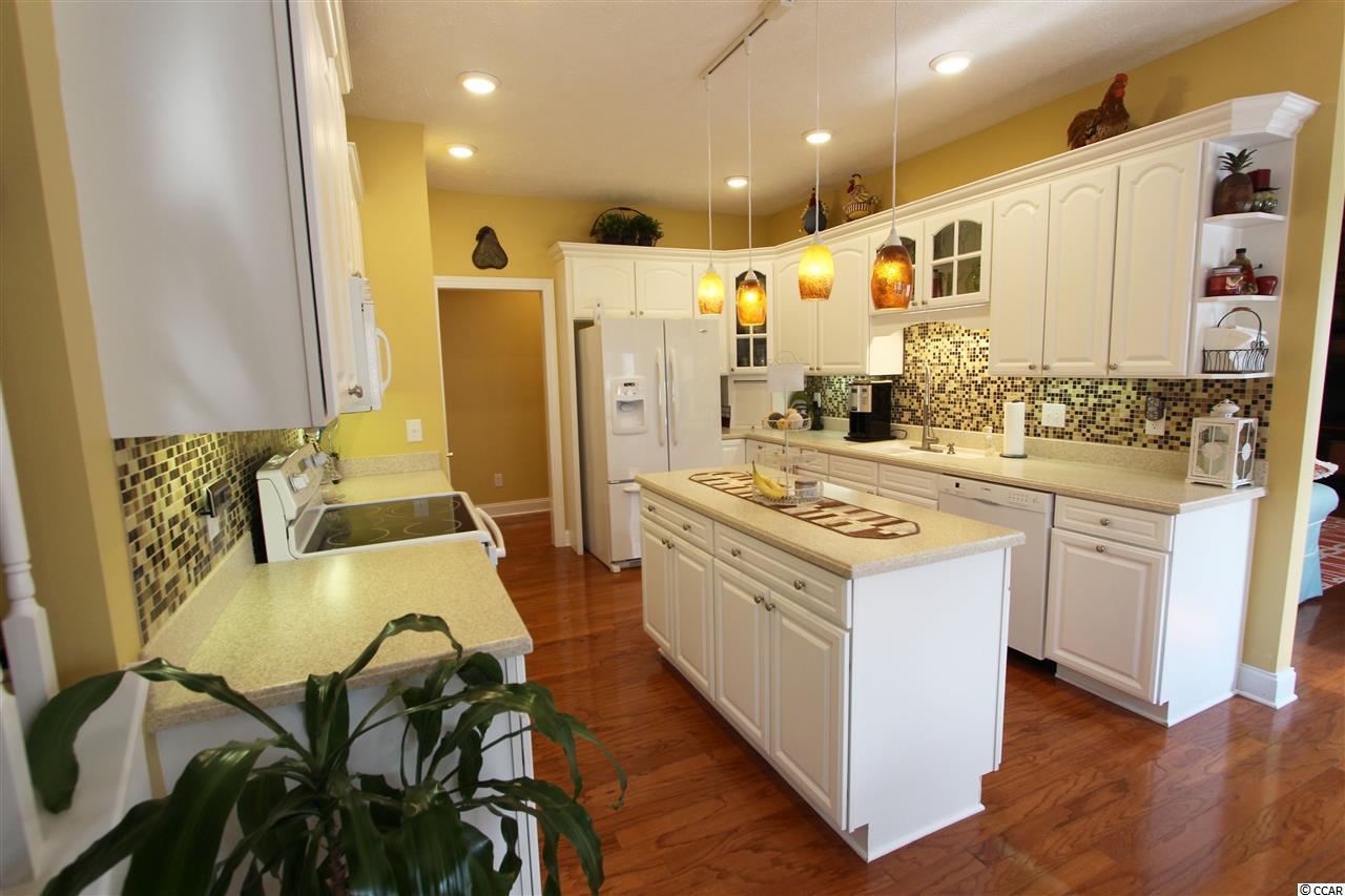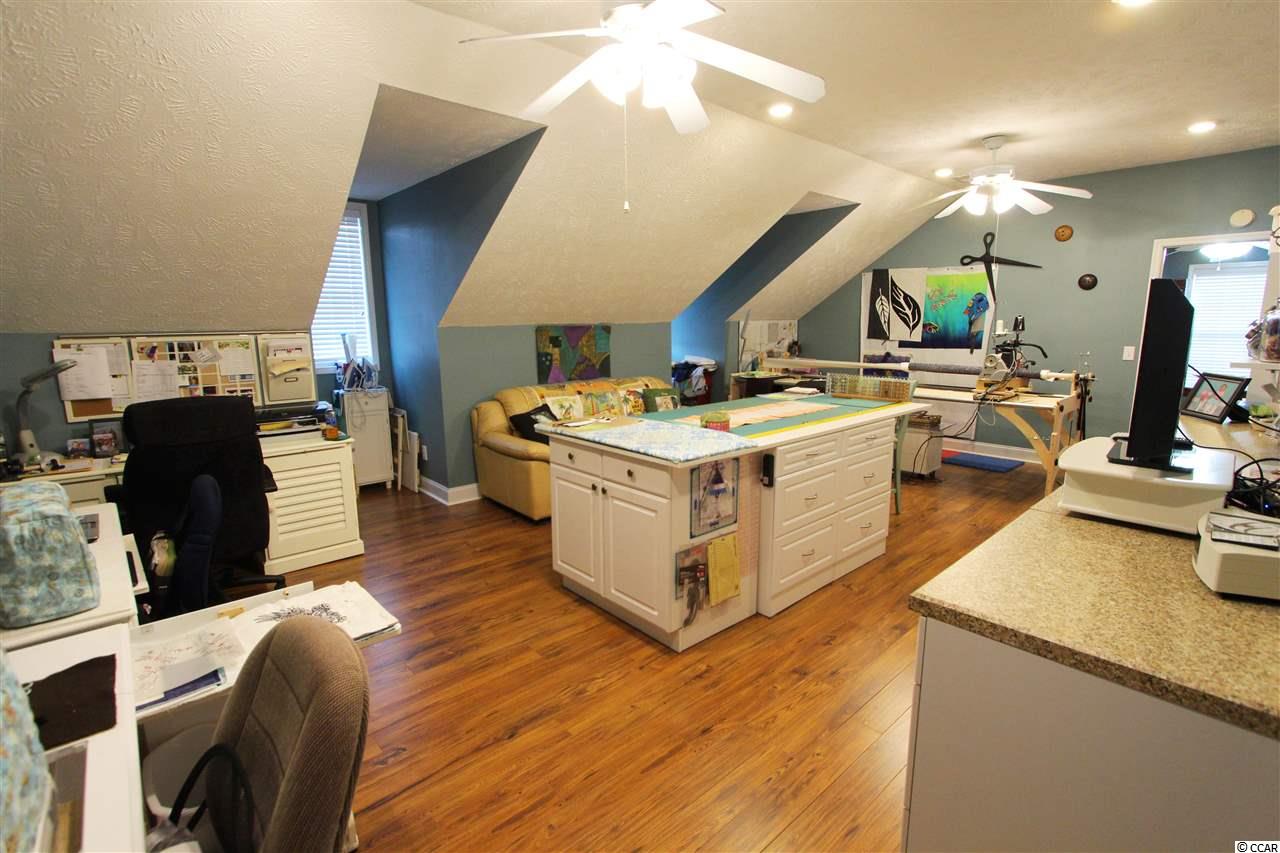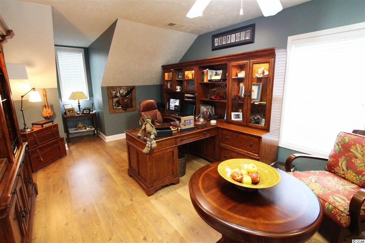 This immaculate custom-built 3,500 heated square foot lake-front home is tucked away on a quiet cul-de-sac street. Downstairs are three large bedrooms, including the master. The gorgeous master bath features both a jetted garden tub and a separate tile shower. Also on the main level are a spacious formal dining room; an inviting foyer; a full guest bath; a wonderful kitchen with work island and Corian countertops; an open living area with vaulted ceilings and a lovely gas fireplace; as well as a large laundry room. Upstairs are two additional bedrooms one of which is currently being used as a beautiful office another full bath, and a huge 25 x 16 recreation room that could be used for a variety of purposes such as an art studio, a play room, or even a second living area for guests, in-laws or children. Enjoy rich hardwood floors throughout much of this home and the added security provided by 3M protective films on all windows. The floor of the oversize garage has a durable epoxy coating. Move items from the garage to the attic above with the touch of a button using the electric Versa-Lift. Enjoy the wildlife and lake views from the two large rear decks. This beautiful home is conveniently located on the South Strand in close proximity to shopping, dining, golf, fishing, and, of course, our beautiful area beaches! All square footage is approximate and not guaranteed. Buyer is responsible for verification.