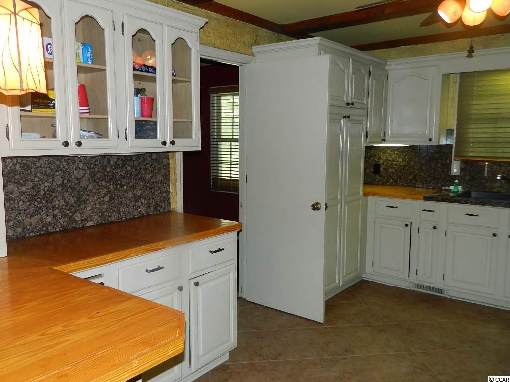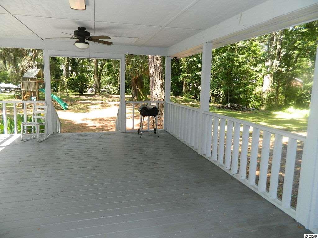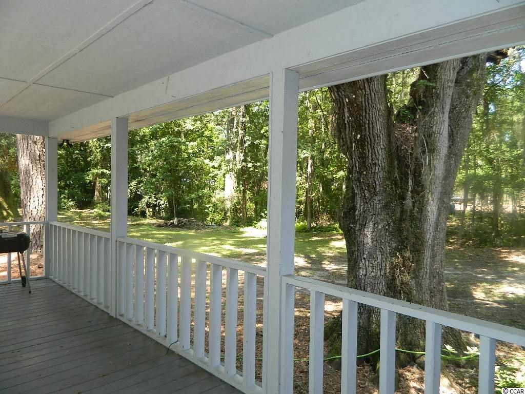This beautiful home in an secluded area of a old southern plantation surrounded by majestic live oaks. Features large renovated kitchen with granite/wood counter tops that adjoins a 15x25 covered deck. Great for entertaining. Kitchen features pantry with roll out shelves, granite tile back splash. Great room has a fireplace that has a rustic feeling. Master suite and bath with separate dressing area and walk in closet. Large utility room with stairs to room over garage with 1/2 bath, could be used for study or 4th bedroom. Two storage areas behind garage. Very restful setting with the feeling of living in the country. Historic waterfront just minutes away and approximately 25 minutes or less from to the beach. Lots of privacy, yet conveniently located to shopping and near scenic Black River. Unique setting. All measurements are approximate and should be verified by potential buyer.