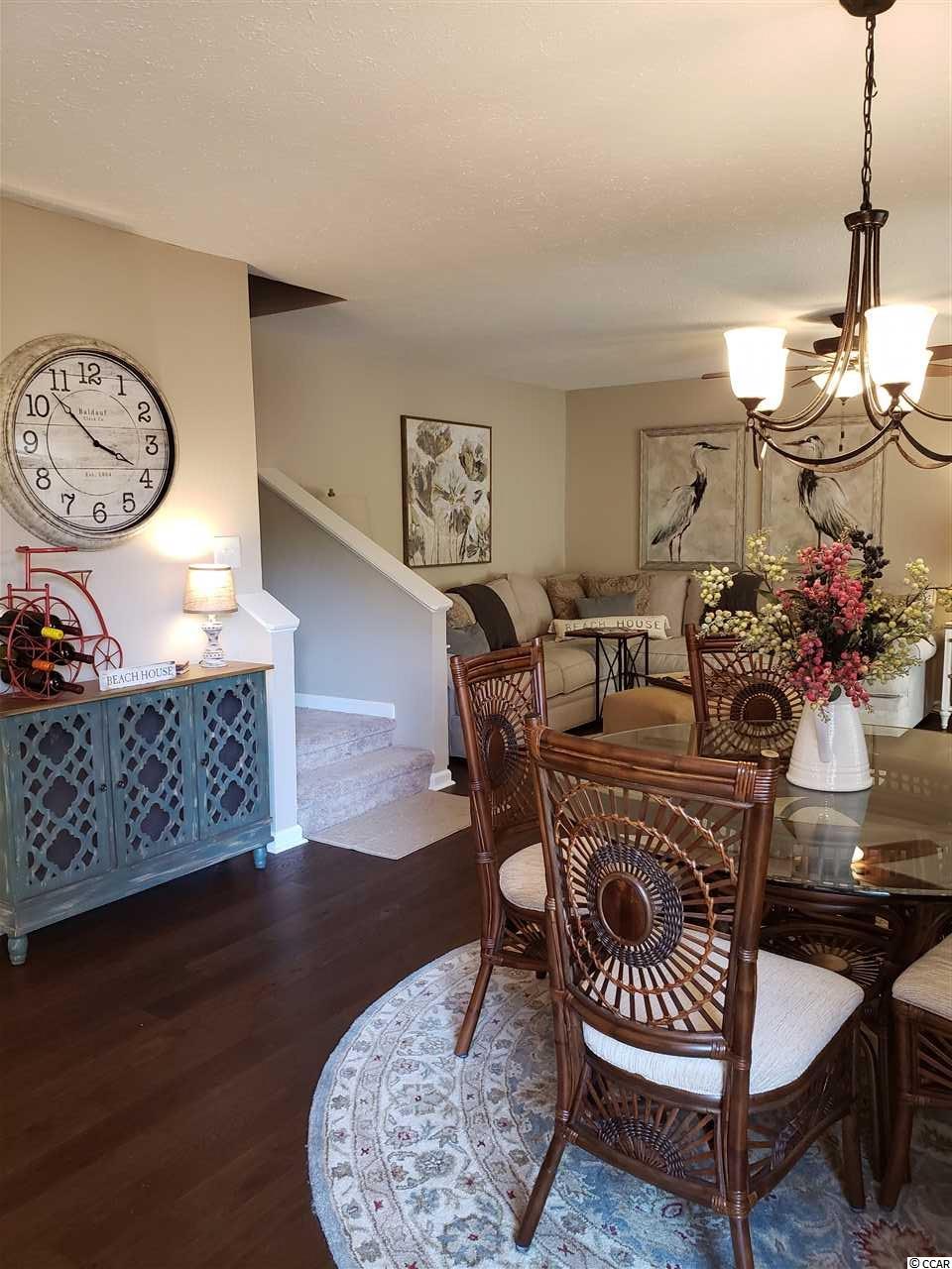 Welcome to Surfside Beach!! The move in ready townhouse offers 2 bedrooms with 2.5 baths. East of business 17... ONLY 4 blocks from the Ocean! Each bedroom upstairs has its own full bath. Half bath is located on 1st floor. Master has walk-in closet, linen closet and attic with pull down stairs. Master bedroom has private Balcony overlooking courtyard. Sellers have remodeled which includes- Painted kitchen cabinets, kitchen sink, granite counter tops, under cabinet lighting, back splash and garbage disposal, 3 new toilets, bath faucets and new lighting throughout. Painted 1st floor ceilings, all condo walls and trim throughout, Bruce 5"" plank laminate flooring, carpeting upstairs. This condo is offered as unfurnished. Please shut all lights and return key to lock box. This unit is a second home for sellers. Hurricane shutter system (stored in storage room outside), new windows and building was last painted in 2019! Washer and Dryer are staying with townhouse. Pets and Golf cart friendly!! Call today for your showing!