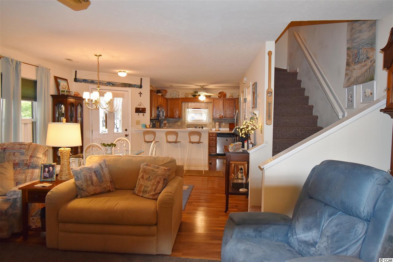 Sought after large 2 bedroom, 2.5 bath Townhome in last phase of Ocean Pines II in the Town Of Surfside Beach on East side of Business Hwy 17... ONLY 4 blocks to the Ocean! This townhome is larger than the average unit of this layout with 2 additional feet of interior width. Huge living room and open kitchen! Well-appointed, well-maintained with hurricane shutter system (stored in storage room). Beautiful open concept layout with lots of natural light and windows throughout. Selling Unfurnished. Both bedrooms have their own Private Bath! Half bath on ground level. This home also offers High end stainless steel appliances, custom hardwood cabinetry, additional counterspace and a pantry in this larger than avergae OPII kitchen. Plenty of closet space throughout the home including a large Master walk-in closet, linen closet and large attic with pull down stairs. Master bedroom has a private Balcony overlooking the courtyard and nature. Exterior just painted 6, 2019! New vinyl windows (slider are aluminum and in good shape), gorgeous hardwood floors in kitchen, dining and living room, private courtyard with custom-pavered patio and attached storage room. This home faces 14th Avenue S. with ample parking for friends and family. This is a Pet friendly, Golf cart friendly & Motorcycle friendly community! Large Private Courtyard for Relaxing Outdoor living, grilling and more! No flood insurance required here. LOW HOA fees include Internet, Cable, Trash, Termite Treatment & Bond, Recycling, Parking, Pool, Tennis/Pickleball, Landscaping/Lawn. Homeowner's insurance is not high here. Ask your agent for details.