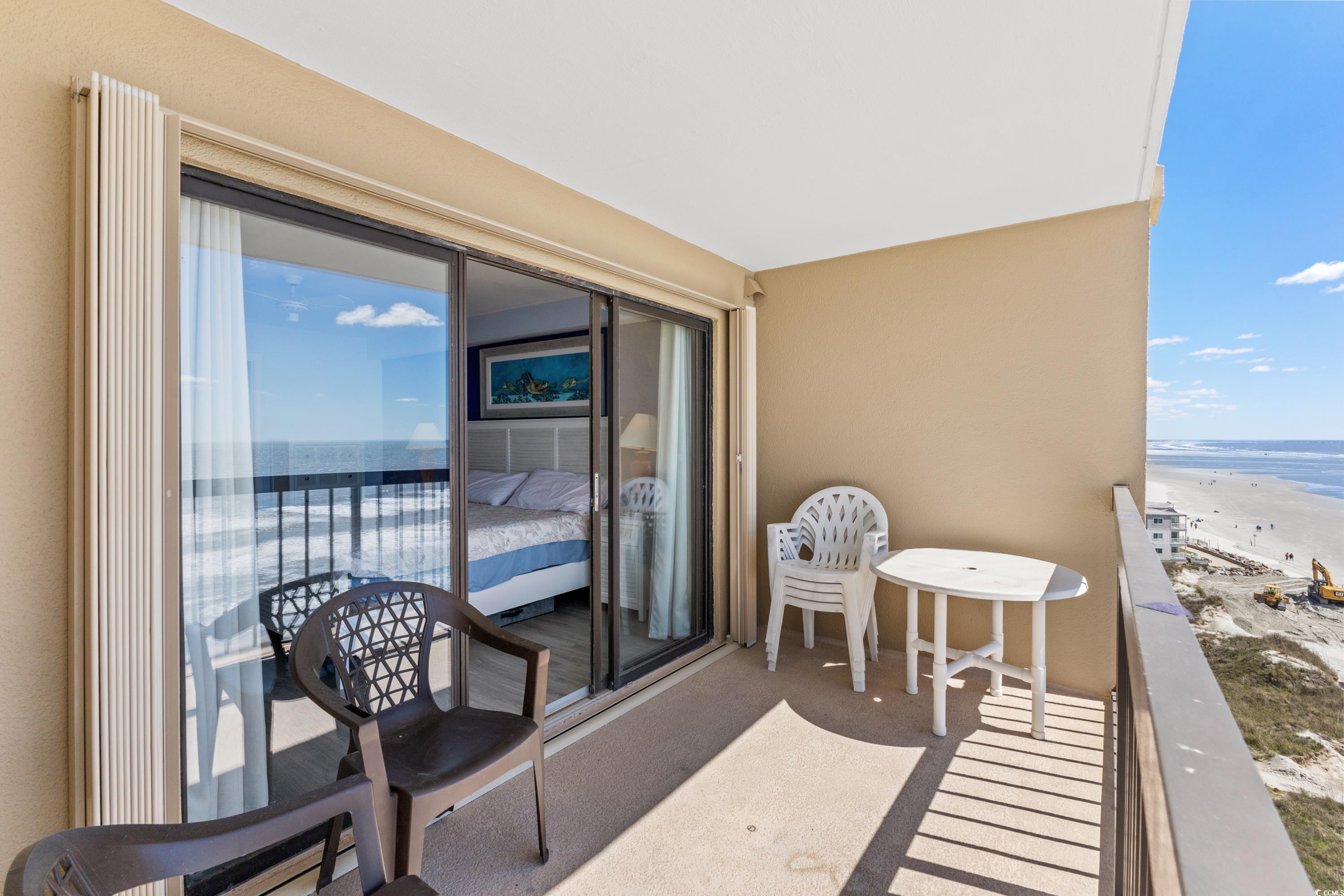 Welcome to this oceanfront paradise with direct views that people dream about and where every sunrise and sunset will become a magical experience. You can escape to coastal bliss with this stunning 3 bedroom, 3 full bathroom oceanfront condo boasting unparalleled views of the Atlantic Ocean. Located in the highly sought-after Point in Cherry Grove, this exquisite unit offers the perfect blend of luxury, convenience, and investment potential. This condo comes fully furnished with tasteful decor and high-quality furnishings, ensuring a seamless transition for new owners. From the updated laminated wood flooring to the newer stainless steel appliances in the kitchen, to the addition of storm shutters, this condo includes contemporary upgrades that enhance both style and functionality. Also being included are the newer in-unit washer and dryers for added convenience. After a day of enjoying breathtaking views and soothing ocean breezes from the comfort of your oversized balcony, accessible from both the primary bedroom and main living area, step into the updated primary bathroom and indulge in a spa-like experience with modern fixtures and sleek finishes. Keep your beach gear organized and easily accessible with your very own separate storage area and bid farewell to the stress of finding parking with the ease of covered parking. Enjoy the amenities that Sea Marsh II has to offer all year round such as the indoor community pool and the sundeck. Don't miss this rare opportunity to own a piece of oceanfront paradise in the highly coveted Cherry Grove area. Whether you're drawn to the stunning views, the move-in ready convenience, or the endless possibilities for enjoyment and investment, this condo offers the ultimate coastal retreat.