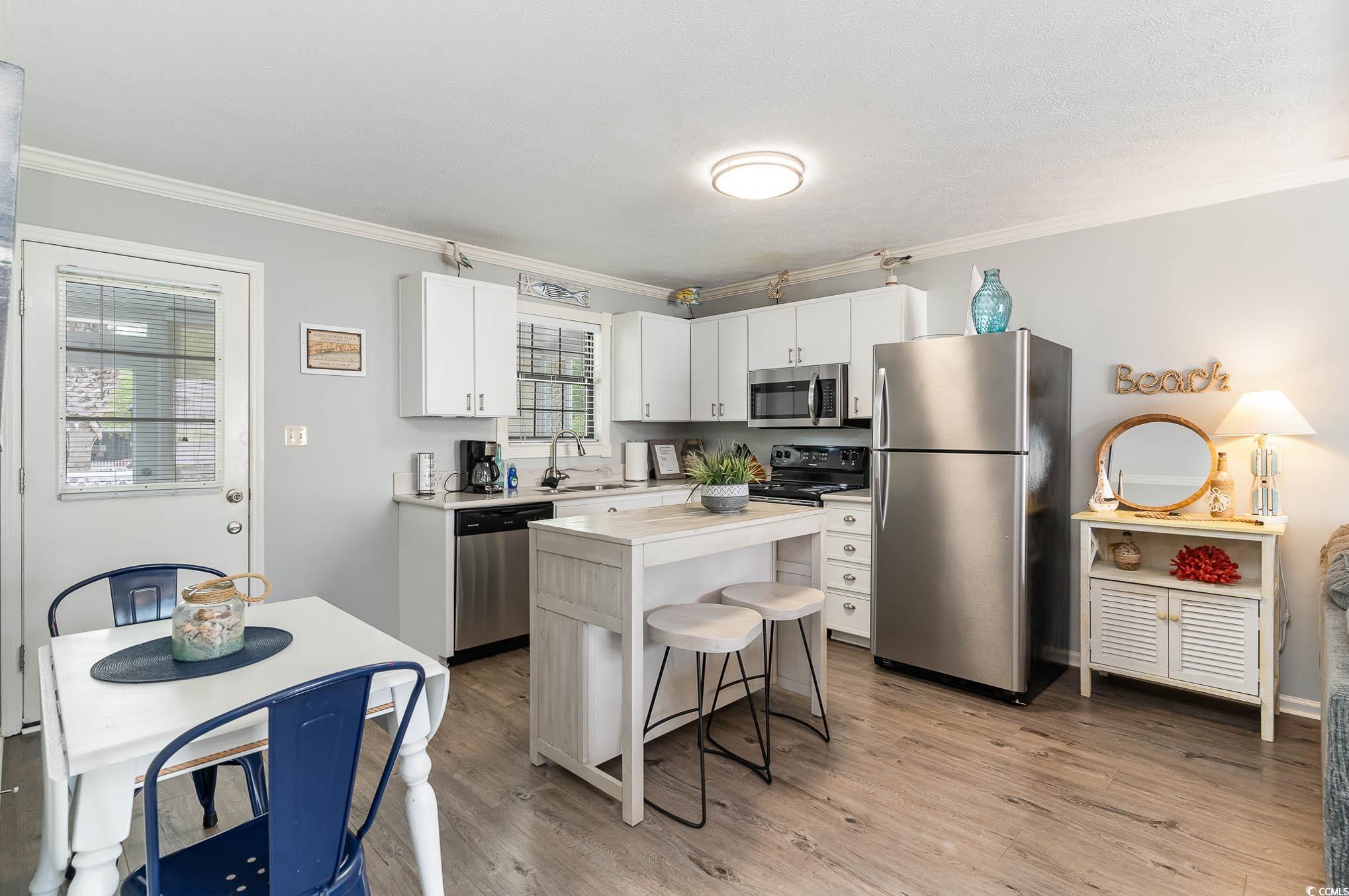 Back on the market through no fault of the seller! Are you ready for the ultimate showstopper? This stunning patio home is located in the highly sought-after area of Ocean Drive and boasts 2 bedrooms, 1.5 baths, and an added Carolina room in 2021. The house has been upgraded with LVP flooring, stainless steel appliances, and cultured marble kitchen countertops. The interior and exterior of the home were painted in 2022, and custom blinds were added to the Carolina room in May 2022. The house also features a Trex composite decking on the front porch, vinyl railing, and decking on the back steps as of January 2022. The concrete driveway, patio areas, and new vinyl fence sections were installed in 2017. A large attached laundry area with plenty of storage space and an incredible 10x12 outside detached workshop/golf cart garage make this home even more desirable. Plus, it's being offered fully furnished, with all dishes, silverware and linens. This home is ready for your new primary or vacation home. The beautiful back patio area is perfect for relaxing around the fire pit and barbecuing after a day at the beach while enjoying views of the lit Palms behind the fencing in the evening. This home has been meticulously taken care of. You can walk or golf cart to Main St., McLean Park, or the beach. Call for your private showing today.