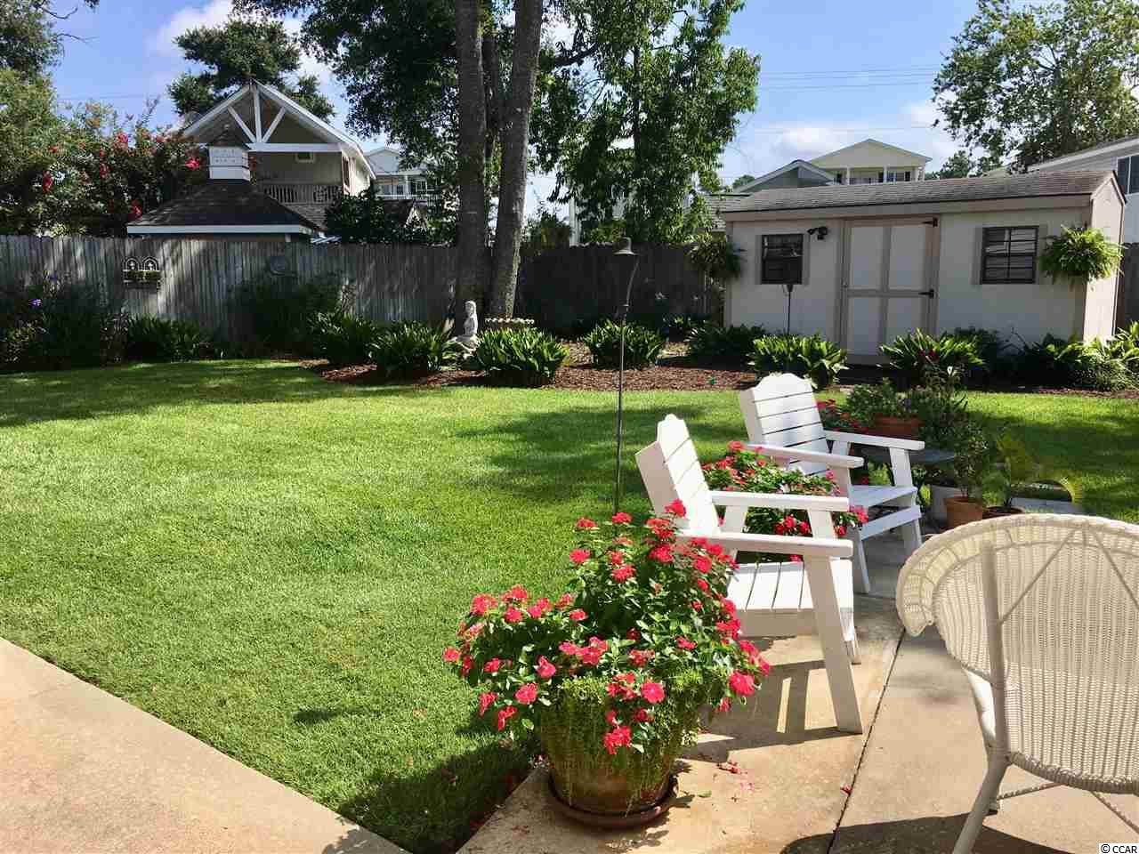 You are in the HEART of the Ocean Drive Section of North Myrtle Beach when you see this 3 BR 2 BA home with brick fireplace, stunning Bruce Hardwood Floors, Crown Molding, cathedral ceiling and that open floor plan you desire. Master BR on downstairs. Large Storage building in the fenced back yard with a patio and double gates down the driveway side and garden gate on the left side. Enjoy nature as you lounge on the screened porch or the covered porch. Remodeled baths, stainless appliances and a beautiful array of flowers that return to you every year. Walk to Main St. for festivals and Parades, Clubs and shopping and restaurants, McLean Park. Not a Patio Home but stick built by Inlet Builders. Ask for the FACT SHEET !!