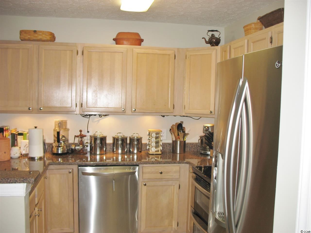 2 Bedroom, 2 full Bath (with additional spacious LOFT) corner townhome located only 4 blocks from the Beach in NON flood zone in the Town Of Surfside Beach. LOW HOA fee includes cable! Townhome has very nice wood burning Fireplace. Large open kitchen with new stainless steel appliances, granite countertops & customized cabinets with under cabinet lighting! 2 Master bedrooms (one Upstairs and one on ground level), 2 walk-in closets with additional clothing, linen and storage closets as well as pantry and utility room that houses side by side washer & dryer! Upstairs bedroom has private balcony & large bathroom with granite vanity & garden tub with shower! Home has a Private Patio Courtyard with professional landscaping inside courtyard and is an End unit... very convenient from parking area and easy to charge your golf cart! 3M guard on windows and interior Plantation Shutters. Complex has Tennis and Pool as well as a community garden! Pet friendly! Motorcycle and Golf cart friendly!