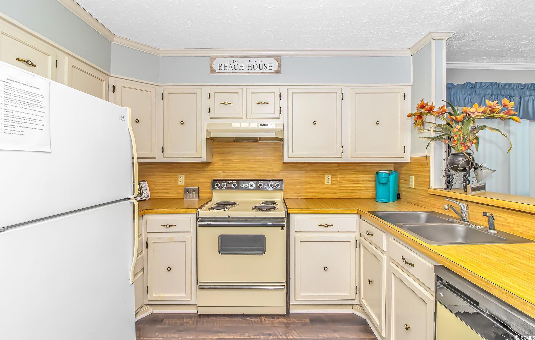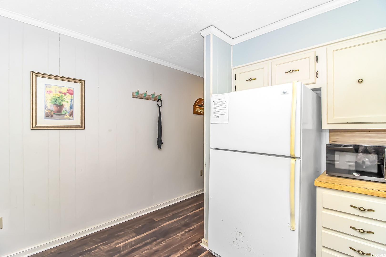 Just listed in Chateau by the Sea! This cozy, 2 bedroom, 2 bathroom condo is a wonderful opportunity as a primary residence, beach retreat, or vacation rental! As you step inside, the open-concept layout welcomes you into a spacious living area/kitchen adorned with luxurious LVP (luxury vinyl plank) flooring that extends a sense of sophistication and durability throughout the space. Natural light pours in through the windows, creating an inviting ambiance. The kitchen, effortlessly transitions into the dining area, making mealtime a joyous and connected experience. Beyond the living area, a private balcony awaits your personal touch, perfect for leisurely moments. The primary suite is a true retreat, boasting private access to the balcony - allowing you to wake up to fresh air and serene views. The en-suite bathroom features a step-in shower, combining both accessibility and style. Both bathrooms have been thoughtfully updated with modern sink vanities, adding a touch of elegance to the daily routine. The guest bedroom boasts a large closet and is opposite the primary suite for a sense of privacy. This condo also offers the convenience of in-unit laundry facilities, adding an extra layer of comfort to your daily life. The well-maintained complex provides additional amenities such as a community pool, private complex beach access, and is walking distance to Main Street in North Myrtle Beach. From nearby parks to shopping centers and dining establishments, every aspect of your daily life is easily accessible. This is a MUST SEE! All measurements are not guaranteed. Buyer is responsible for verifying.