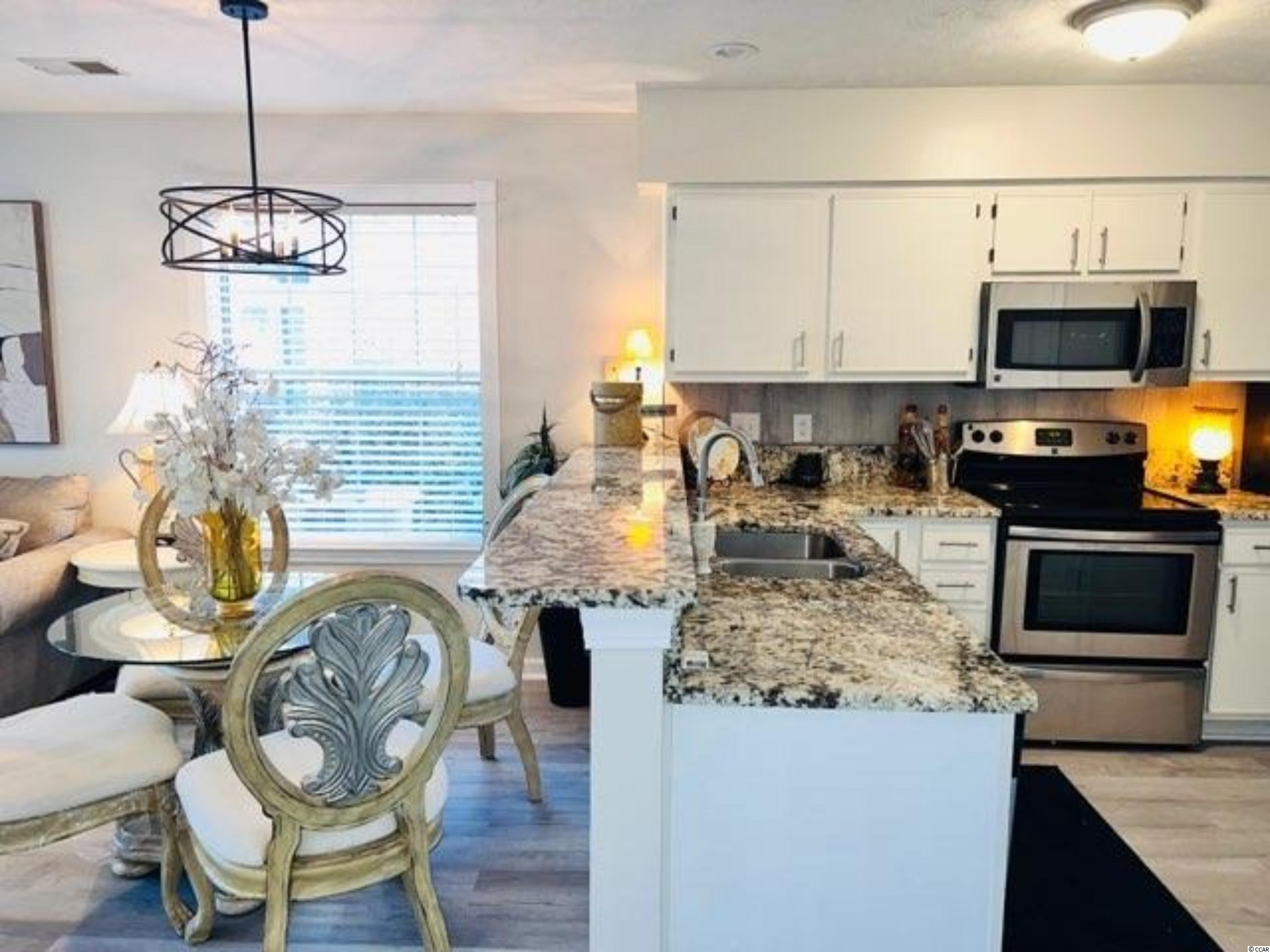 BACK ON THE MARKET AT NO FAULT OF THE SELLERS. CURRENTLY THE ONLY FIRST FLOOR, END UNIT ON THE MARKET IN A NON-ELEVATOR BUILDING located in Waterway Village, a gated community located in the Carolina Forest area of Myrtle Beach. This Showroom condo is 2 bedroom, 2 full baths and has recently undergone renovations and looks Stunning! The unit has granite countertops, stainless steel appliances, luxury vinyl plank flooring with new baseboard molding , new light fixtures, updated ceiling fans, new vanity in front bath, new raised toilets in both baths. There is a large screened porch located off the living room with views of the second fairway, perfect place to enjoy morning coffee and afternoon beverage. Another advantage of being first floor you have access off the screened porch to take your four legged friend out for their morning stroll. There is a detached large storage closet for beach toys and more. Condo management company has recently updated waterproofing on the common walkways. Waterway Village offers some of the best amenities around, not only is there an outdoor pool but an indoor as well, a spa hot tub, tennis/pickle ball court, a putting green to improve those golf skills, grill with picnic area, day dock down on the waterway. So many outdoor areas to meet your neighbors and enjoy the beautiful weather and watching passing boats travel along the Intracoastal Waterway. Location is superb, you are centrally located to just about everything that Myrtle Beach has to offer. Tanger Outlets, Myrtle Beach International Airport, Broadway at the Beach, Cal Ripken Sports Park, loads of golf courses and of course the Blue Atlantic Ocean are all within a 15 minute drive. Whether you are looking for a permanent home, vacation home or investment property you owe it to yourself to take a look. Square footage is approximate and should be verified by buyer agent or buyer if in question. Agents, please see ""Agent to Agent Remarks"".