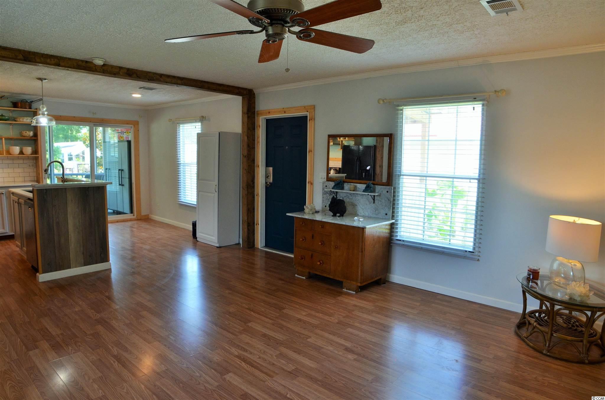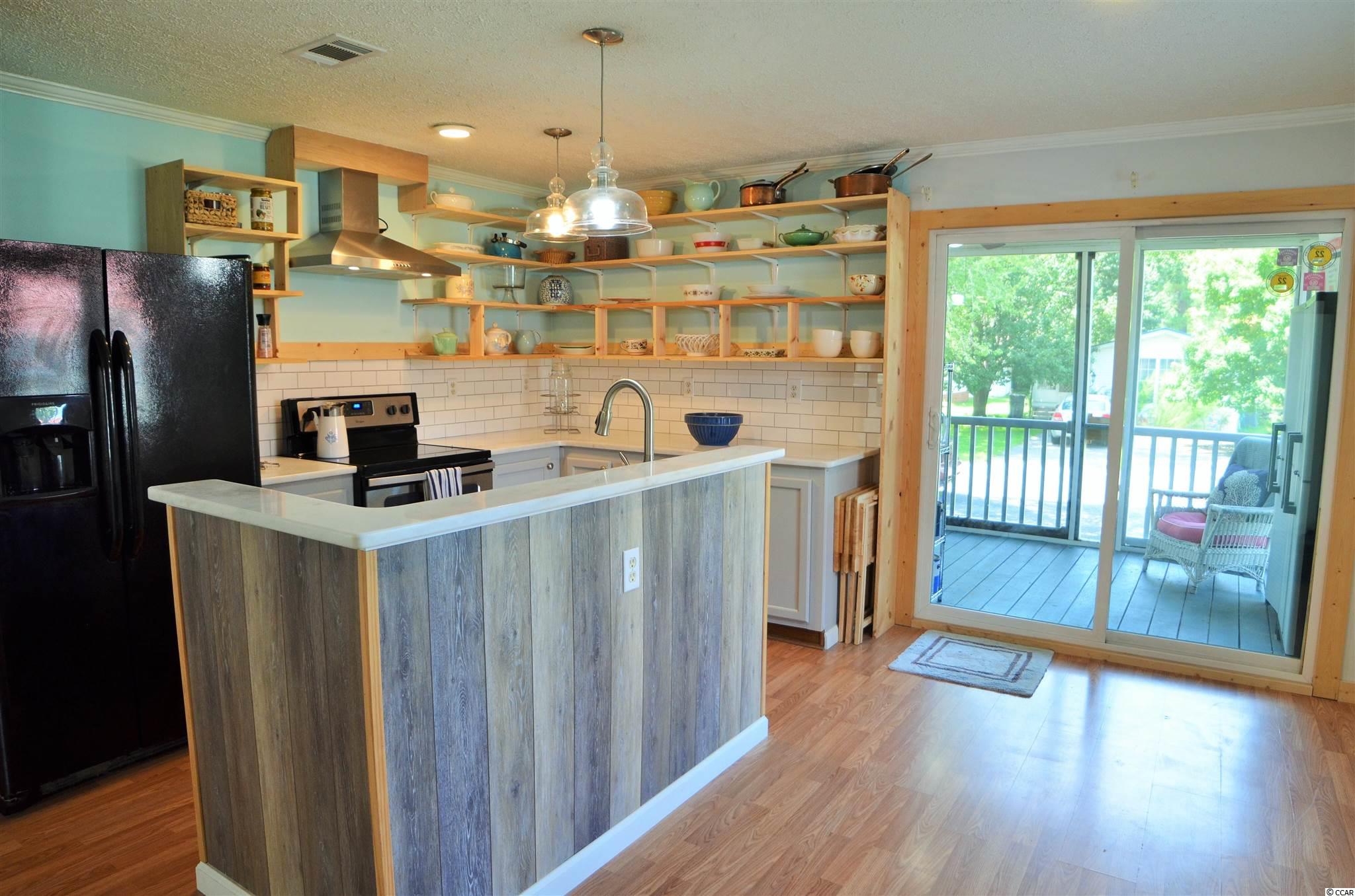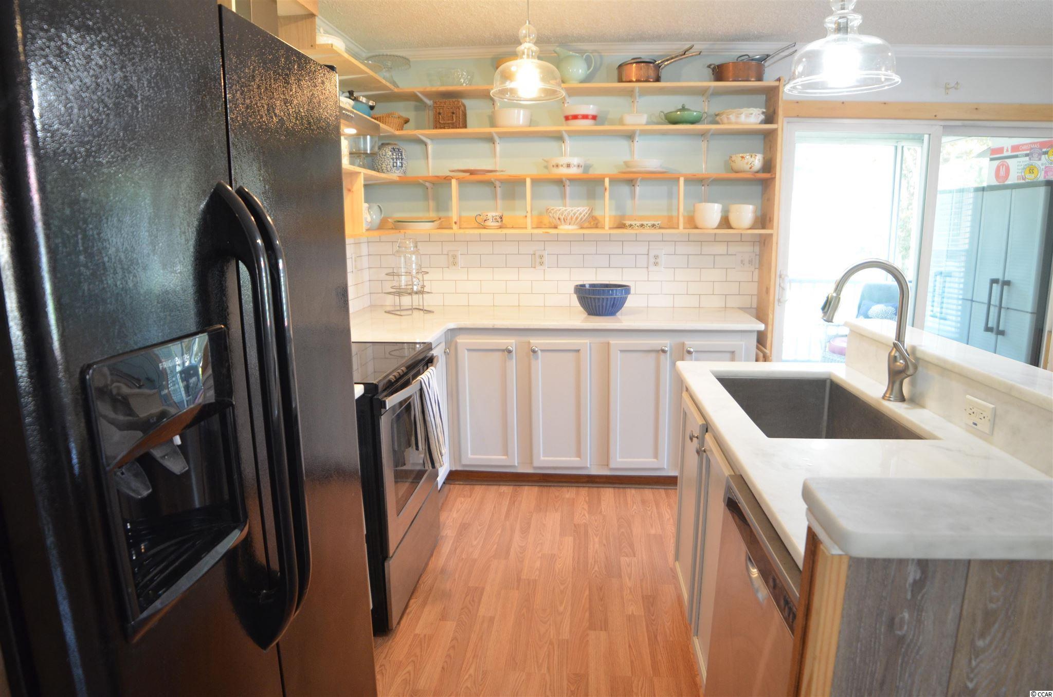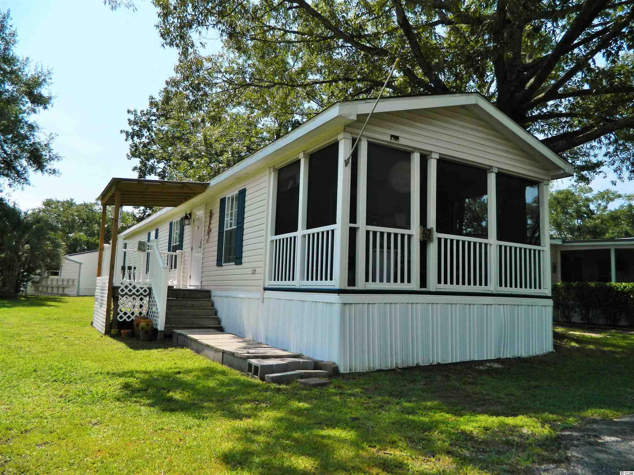 Back on market through no fault of seller's home. Location, Location, Location, this stunning remodeled home in Murrells Inlet is in the highly sought-after 55+ Captains Cove Community a few miles North of Pawleys Island and a stones throw to the Marshwalk and Huntington State Park! This beautiful, single wide manufactured home features 2 bedrooms, 2 bathrooms. The open floor plan features an open kitchen and living room space, beams, high ceilings, vinyl flooring and shiplap throughout. The newly remodeled kitchen comes with a new stainless-steel range hood, white subway tiled backsplash, beautiful Carerra marble countertops, new light fixtures, and custom shelving. There is also a very spacious screened in porch just off the kitchen so you can enjoy your morning coffee or evening dinner and a metal roof covered private side deck with new entry door. The shiplap and custom shelving have been carried throughout the bathrooms and laundry room to compliment the barn doors in the master bedroom closet and bath. The Goodman HVAC system has just been serviced and is running great. This is one of the Newest Mobile Homes listed in the last 60 days in Captains Cove don't let it slip by!!