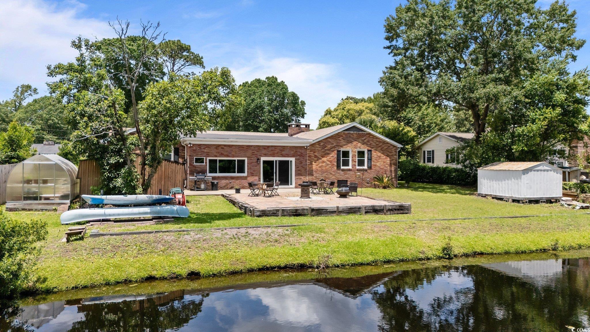 Welcome to this charming brick 4 bedroom, 3 bath home offering the perfect blend of coastal living, comfort, and convenienceall with no HOA. Located on a quite cul-de-sac street just off 62th Avenue North and backs up to scenic Sancindy Lake, providing canal and lake views with direct water access, perfect for kayaking or canoeing. Inside, enjoy beautiful hardwood floors, ceiling fans in every room, and a cozy gas log fireplace in the main living area. The spacious floorplan includes a flexible in-law suite or large game room with a private entrance, ideal for guests, extended family, or rental potential. The spacious updated kitchen features granite countertops and tile backsplash with a wall unit oven, built in stovetop and large pantry. The back patio offers peaceful lake views and even includes a fish pond, creating a serene setting to relax or entertain. Hurricane covers for windows meet SC standards and are easy to install, giving you peace of mind. Just 10 minutes to Tanger Outlets and close to all the shopping, dining, and entertainment that Myrtle Beach has to offer, this home is truly a hidden gem on the Grand Strand.