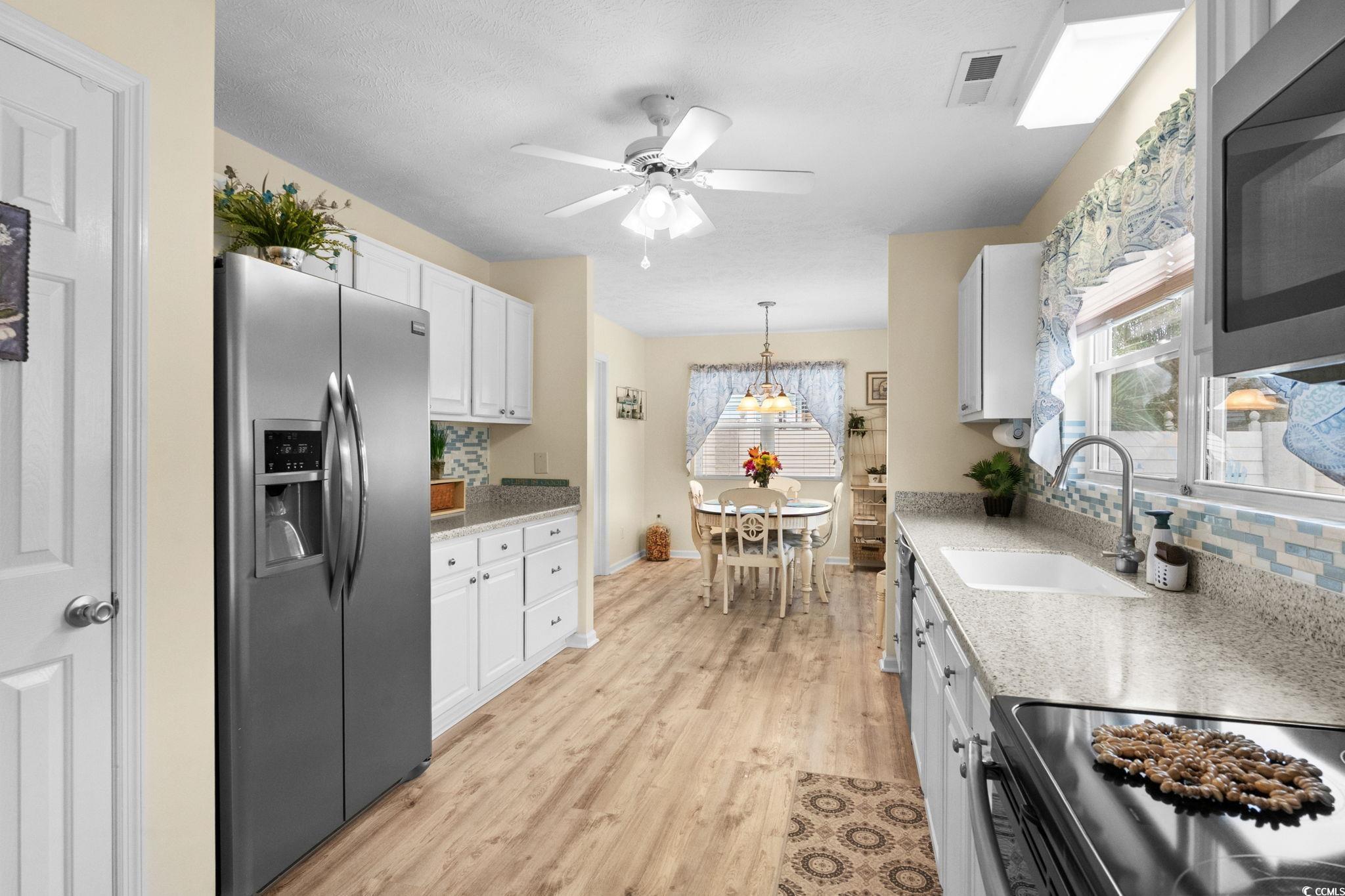 Welcome to 622 Persimmon Ln, a meticulously maintained home nestled in the highly sought-after Ocean Oaks community, offering the quintessential North Myrtle Beach lifestyle. This charming 2-bedroom, 2-bath residence is a true gem, featuring a spacious living room with a vaulted ceiling that creates an open and airy atmosphere. The chef-friendly kitchen is a delight, boasting sleek stainless steel appliances, beautiful solid surface countertops, a convenient pantry, and an abundance of cabinet and counter space for all your culinary needs. For those beautiful Carolina days, step out onto the large patio, which even includes a private enclosed outdoor shower---perfect for rinsing off after a fun day at the beach. And the beach is always calling, as you're just a short, enjoyable golf cart ride away from the sun, sand, and surf! Adding to the home's versatility is a sunroom that can easily be converted into a third bedroom, home office, or extra living space to suit your needs. Beyond the home's doorstep, the Ocean Oaks community places you conveniently close to North Myrtle Beach's premier attractions, including the shopping, dining, and entertainment of Barefoot Landing, live music at the House of Blues, and endless opportunities for golf and water sports. Don't miss the chance to own this fantastic coastal property in a prime location!