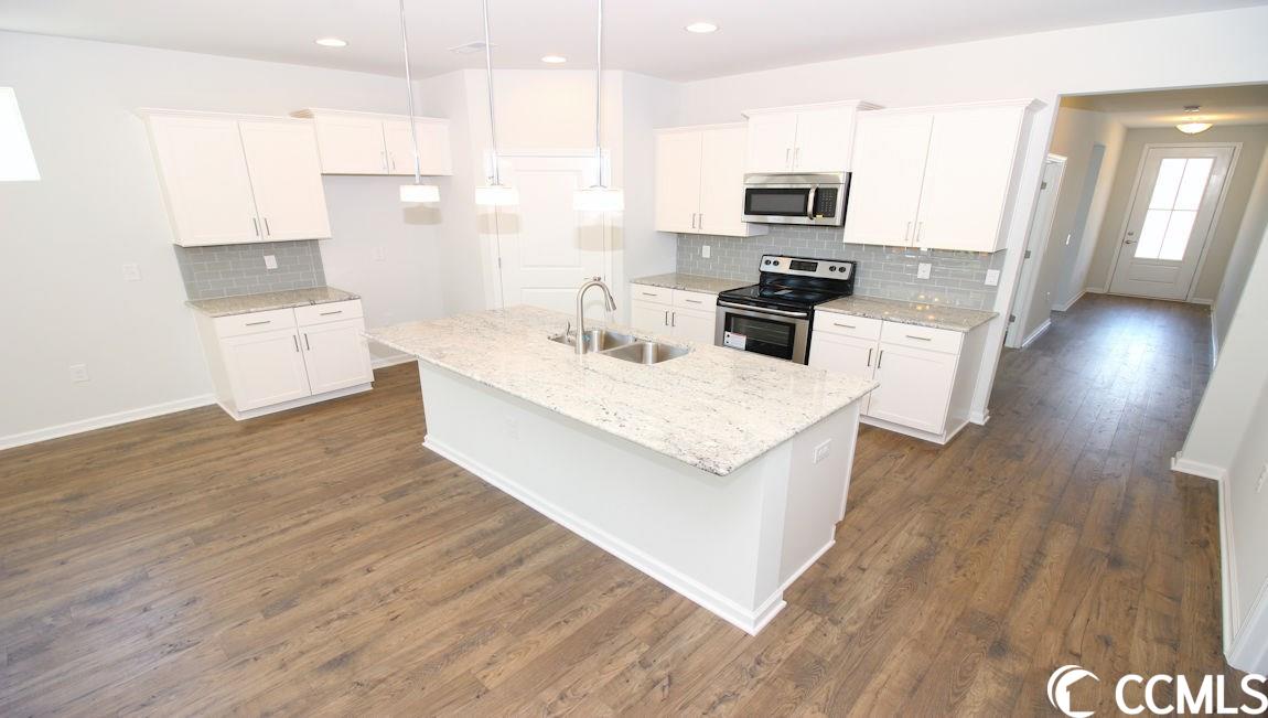 A split bedroom floorplan creates a private primary suite in the back of the home while the open concept kitchen, living, and dining areas are perfect for entertaining. Quartz countertops, stainless Whirlpool appliances with a gas range and gorgeous wide plank laminate flooring throughout the main living areas. There is also a spacious flex room with French doors that would be great for a home office or formal dining room. This home also features a covered porch offering an ideal space for outdoor enjoyment. Heather Glen is a natural gas community where you will enjoy a spacious clubhouse with sprawling verandas, impressive swimming pool, conditioned fitness center, fenced dog park, playground area, and blueberry garden! This is America's Smart Home! Lock or unlock your front door, control the thermostat, and see who is ringing your door bell, all from your smart phone! *Photos of a similar Darby home. (Home and community information, including pricing, included features, terms, availability and amenities, are subject to change prior to sale at any time without notice or obligation. Square footages are approximate. Pictures, photographs, colors, features, and sizes are for illustration purposes only and will vary from the homes as built. Equal housing opportunity builder.)