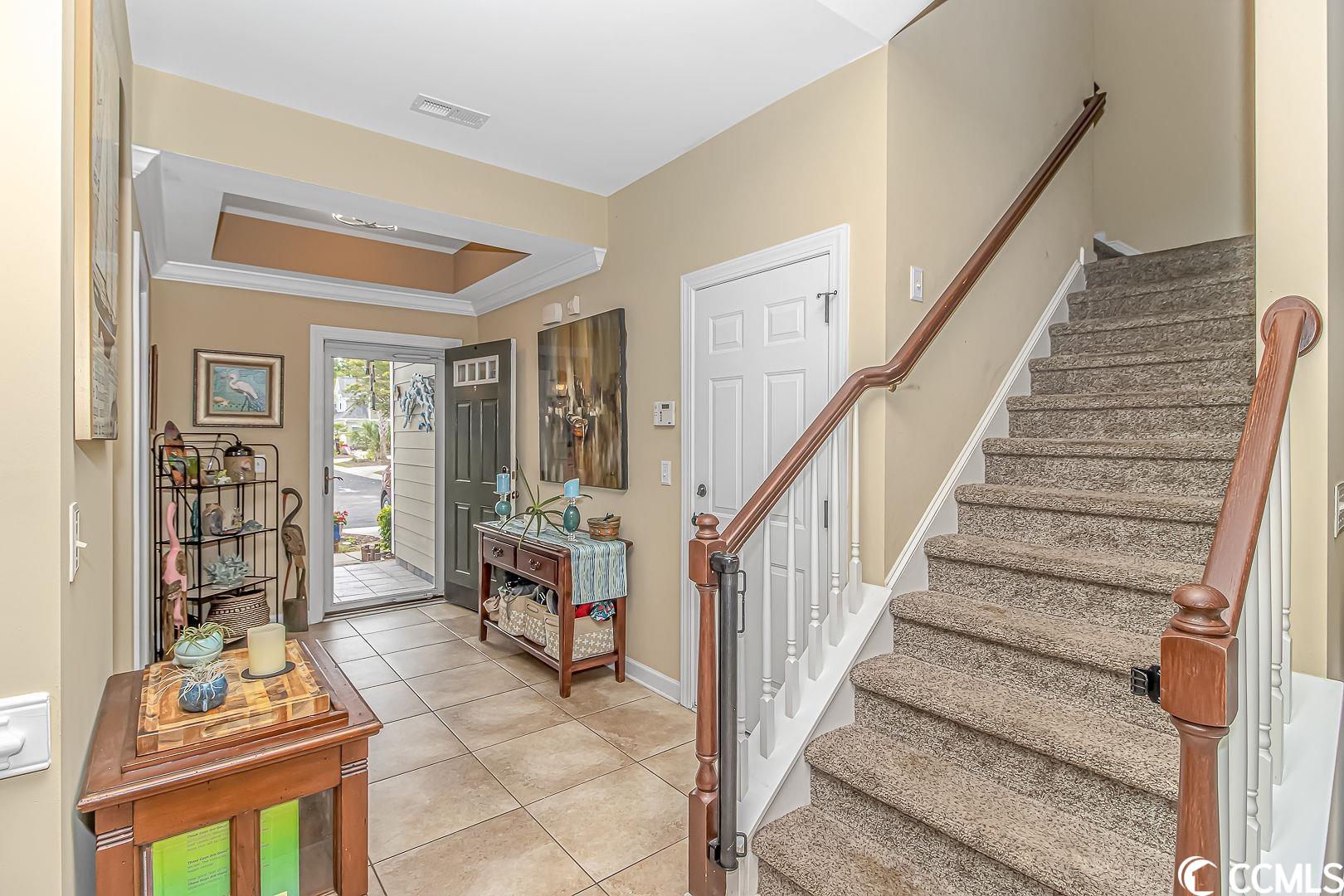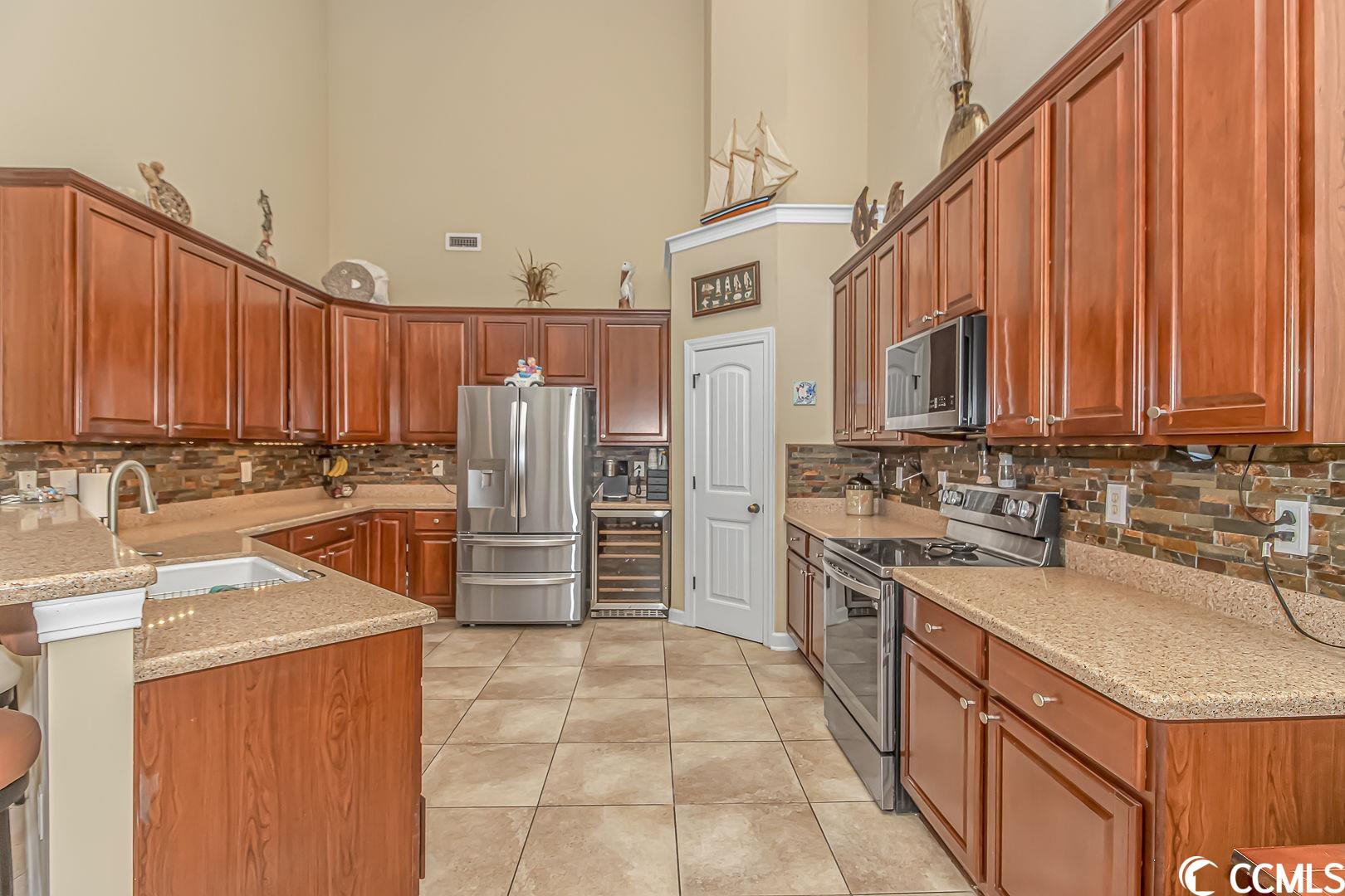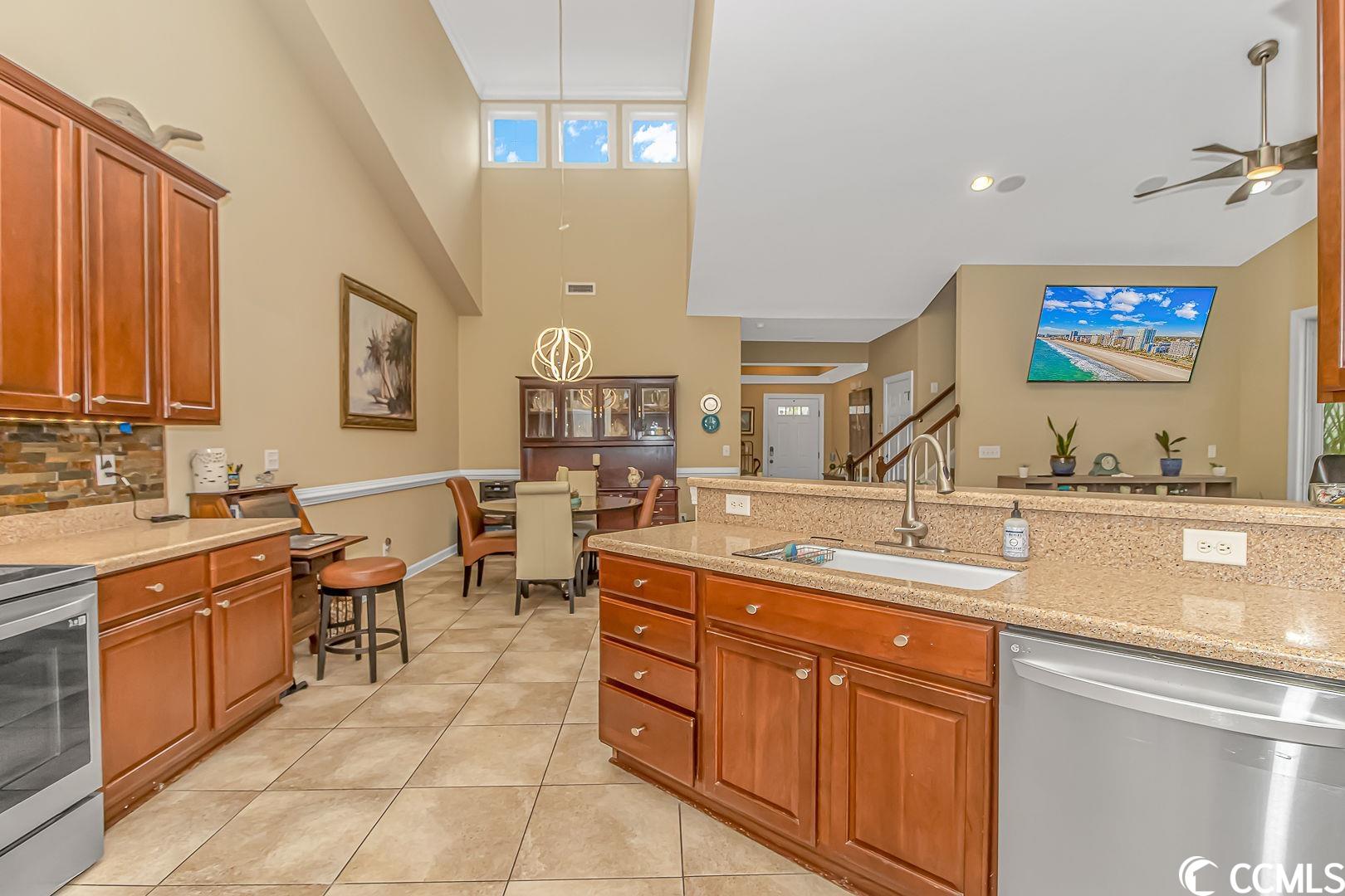 ONE OF A KIND!! FORMER MODEL Beautiful upscale 3 bedroom, 3 bath Catalina model in desirable Clearwater Bay subdivision located on pond. TRANSFERABLE GOLF MEMBERSHIP IS AVAILABLE!! The family room, kitchen, and dining area are completely open with vaulted ceilings and ceramic tile covers all living areas and kitchen with the exception of the upstairs second master suite. There is a sound system (never hooked up), designer lighting and ceiling fans throughout the entire home as well. The family room leads out to a beautiful cobblestone courtyard through 4 large sliding doors to enjoy your screened in Lanai. The kitchen is massive with new stainless-steel appliances, under cabinet lighting, under counter wine cooler, stile stone countertops, natural stone backsplash, 44"" custom cherry cabinets with slide-out drawers and corner turntable, and large pantry. You will love the master suite with tray ceilings and separate sitting area with fireplace and built-in cherry bookcases. There are French doors leading from the sitting area to the back with awesome view of pond and fountain. A great place to sit under a tree and just relax. The master bath is very large with separate sinks, shower, and tub and pantry. There are also two massive walk-in closets. The main living, kitchen, dining, master bedroom and the 2nd guest bedroom are all located on the ground floor. The 3rd guest bedroom complete with a full 3rd bath is located on the 2nd level. Don't forget the oversized 2 car garage and this home is located at the end of the cul-de-sac for great privacy. Clearwater Bay exclusive owners enjoy stocked ponds for fishing, a large, beautiful clubhouse, pool, trash pickup, cable TV, internet access, Wi-Fi, local & long-distance phone service, security system, lawn maintenance, insurance, water and sewer. Clearwater residents also have access to the 15,000 sq ft pool located at the Barefoot Marina and of course don't forget access to the New Barefoot Resort Beach Cabana located on the BEACH. Barefoot Resort features 4 championship golf courses (Fazio, Norman, Love and Dye), Marina, Marina Bar & Grill, beautiful driving range & much more. In addition, Barefoot is 5 minutes to shopping at Barefoot Landing, fine dining, House of Blues and there is Jet Ski rentals available at the marina. Soak up some sun on the beach during the day of golf, shower and enjoy shopping, fine dining or even go see a world class show such as Pirates Voyage, House of Blues, Carolina Opry, Alabama Theater and more!!! Come see all that Barefoot Resort has to offer.