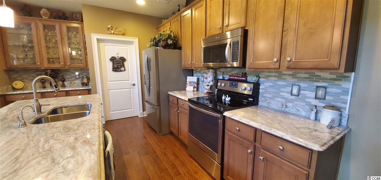 What a great location in Barefoot -This upgraded End unit is located next to the pond and backs up to the Norman Course. This home offers 4 bedrooms, 3 full baths along with a Heated/AC Carolina Room. There are multiple upgrades to this home that include Full Wall Custom Bookcase surrounding the Fireplace, Hardwood staircase, wrought iron railings, custom woodwork and crown moldings throughout. Wood floors throughout the first floor, oversized custom pantry, new kitchen granite , ceramic backsplash and cabinets in the garage with epoxy floors and a pulldown stair for access to added storage. This home has a transferrable Golf Membership to the Barefoot Courses. This home is a must see!