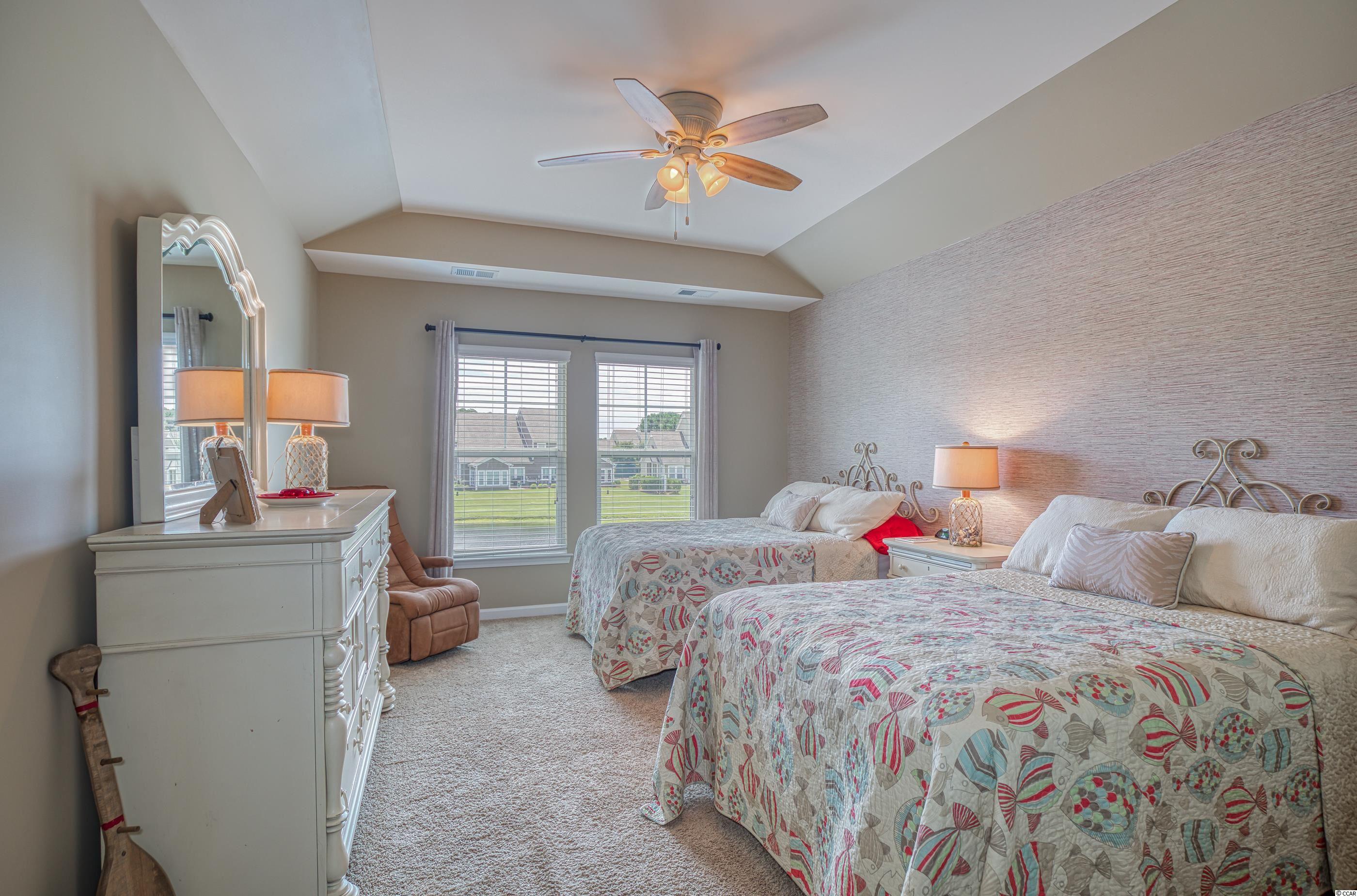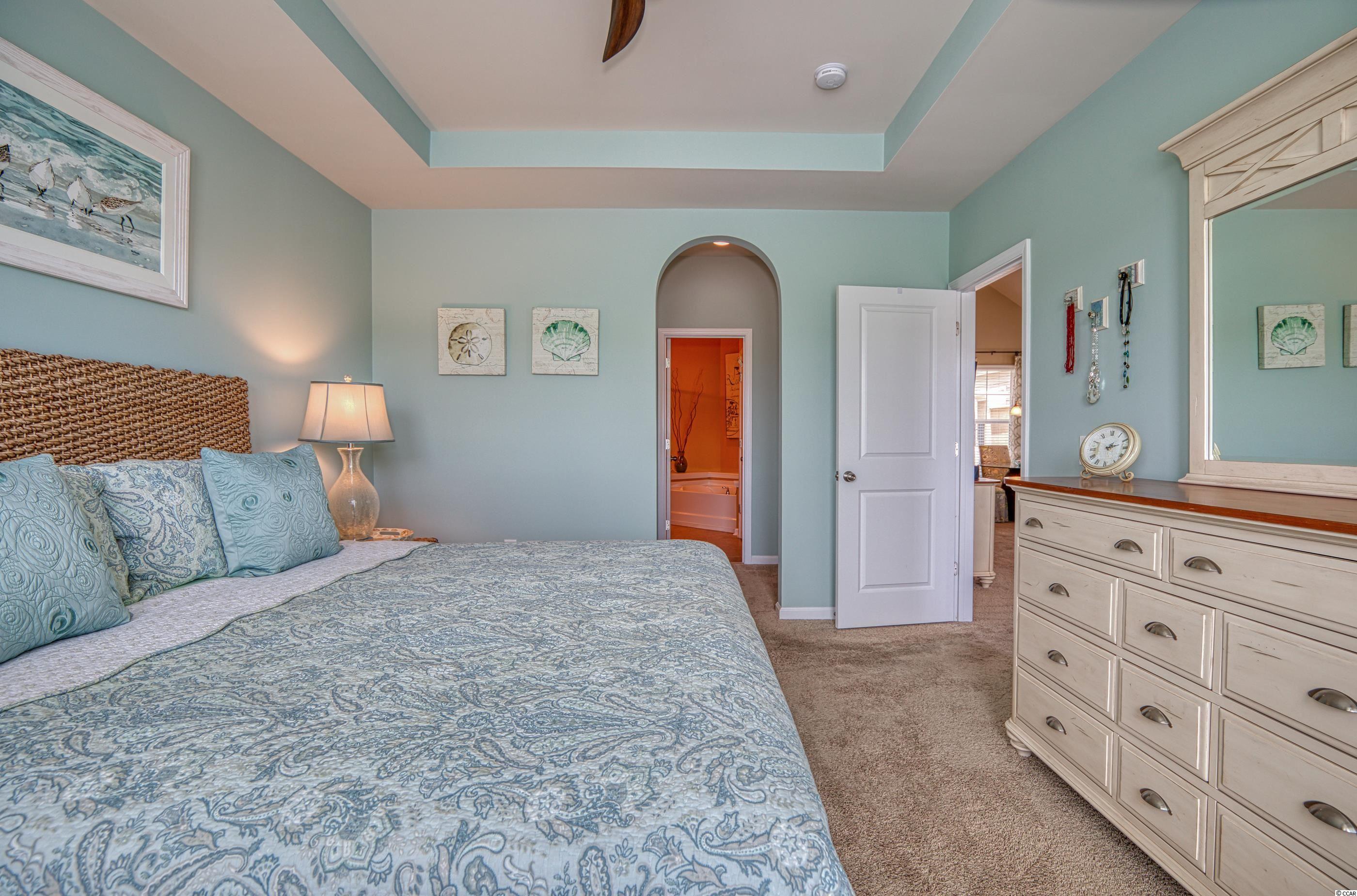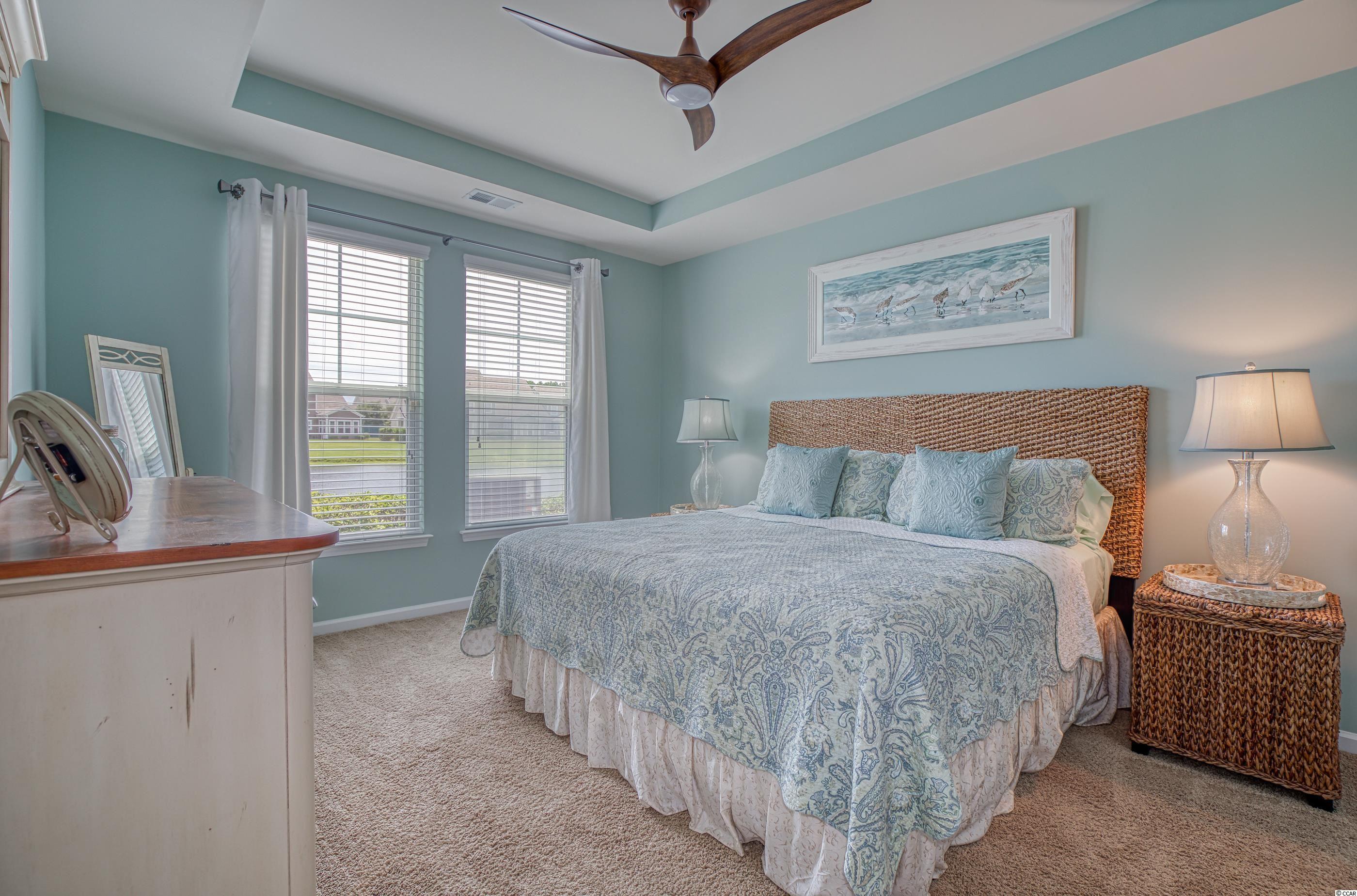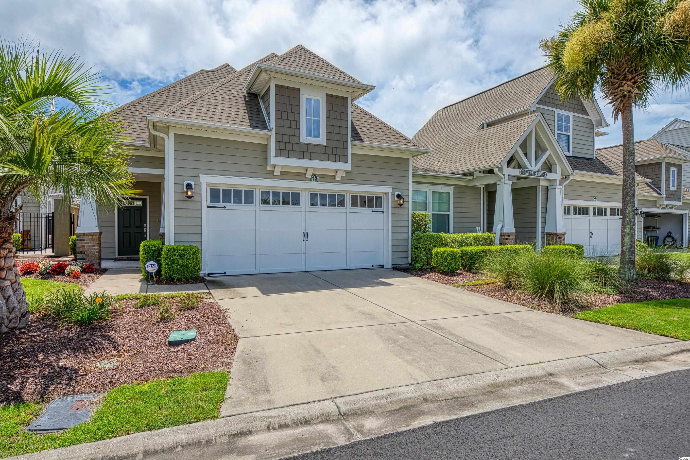 LOCATION! Located in the highly desirable Clearwater Bay neighborhood, this beautiful fully-furnished and well maintained 2 bedroom/2.5 bathroom home overlooks a lake with a fountain and is steps away from the pool and clubhouse. Designer inspired colors and decor throughout with great architectural detail, the original owner used the home as a vacation getaway and never rented it. A former model home, it has both a courtyard and a screened lanai. The open concept has great flow and includes a dramatic cathedral ceiling with a catwalk overlook. The large kitchen has granite counters, glass tile back splash and under cabinet lighting. A laundry room with pantry is adjacent to the kitchen and includes a storage nook. Two Owner's Suites-one up/one down-the main level spa-style bathroom includes a double vanity, garden soak tub, separate shower and water closet. A convenient powder room is located off the welcoming foyer. The pulldown steps in the 2-car garage provide access to a storage area. Clearwater Bay is located within Barefoot Resort's 2,300 acre community offering exceptional amenities including the community pool and clubhouse, a 15,000 sq ft salt water pool overlooking the ICW, a brand new beach cabana on the ocean with 3 parking lots, 2 multi-million dollar clubhouses, 4 signature golf courses, walking, biking and so much more to complement an active lifestyle! Located adjacent to Barefoot Landing, Barefoot Resort is close to the beach and surrounded by many great restaurants, shopping and entertainment venues. Square footage is approximate and not guaranteed. Buyer is responsible for verification.