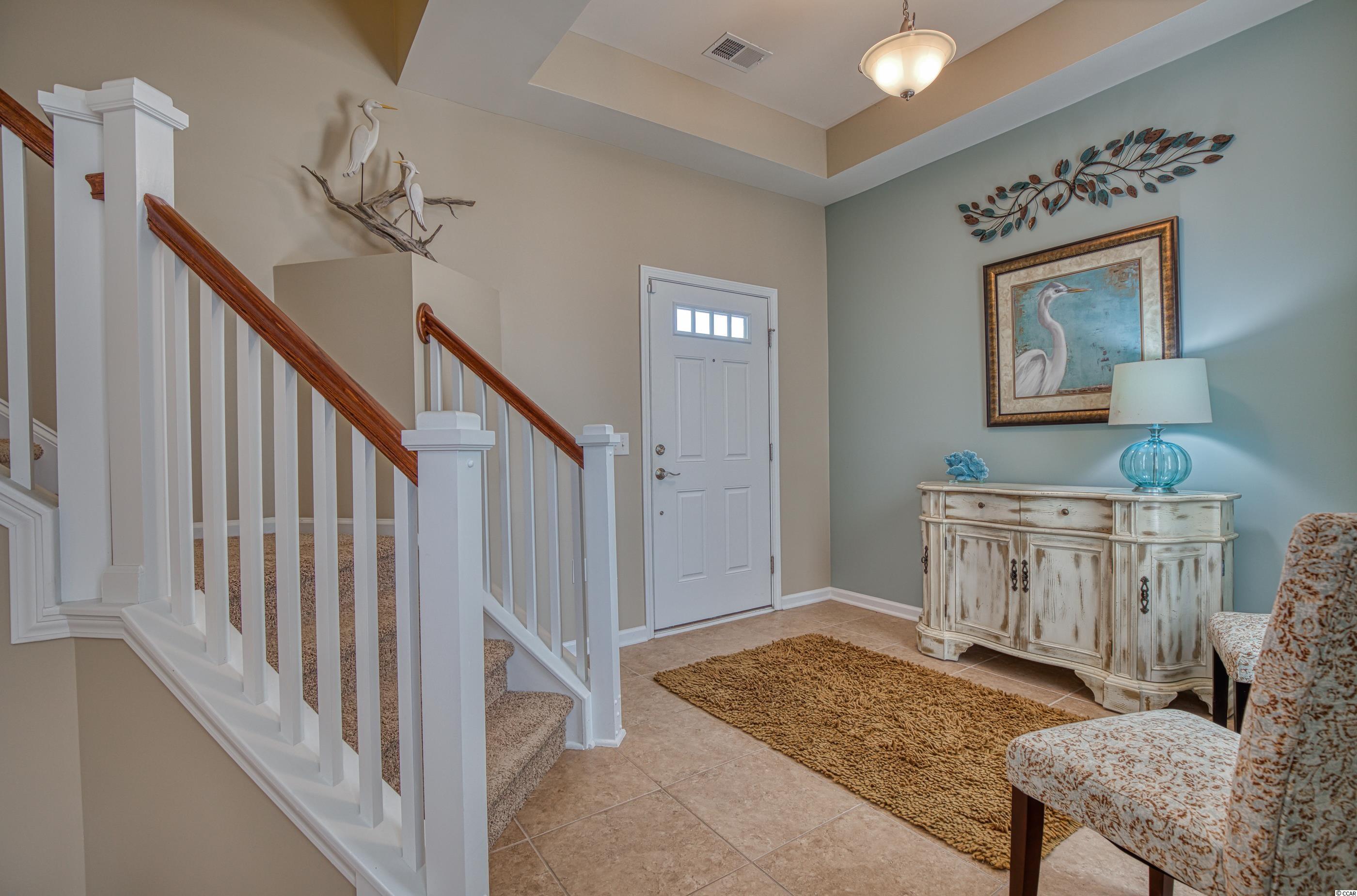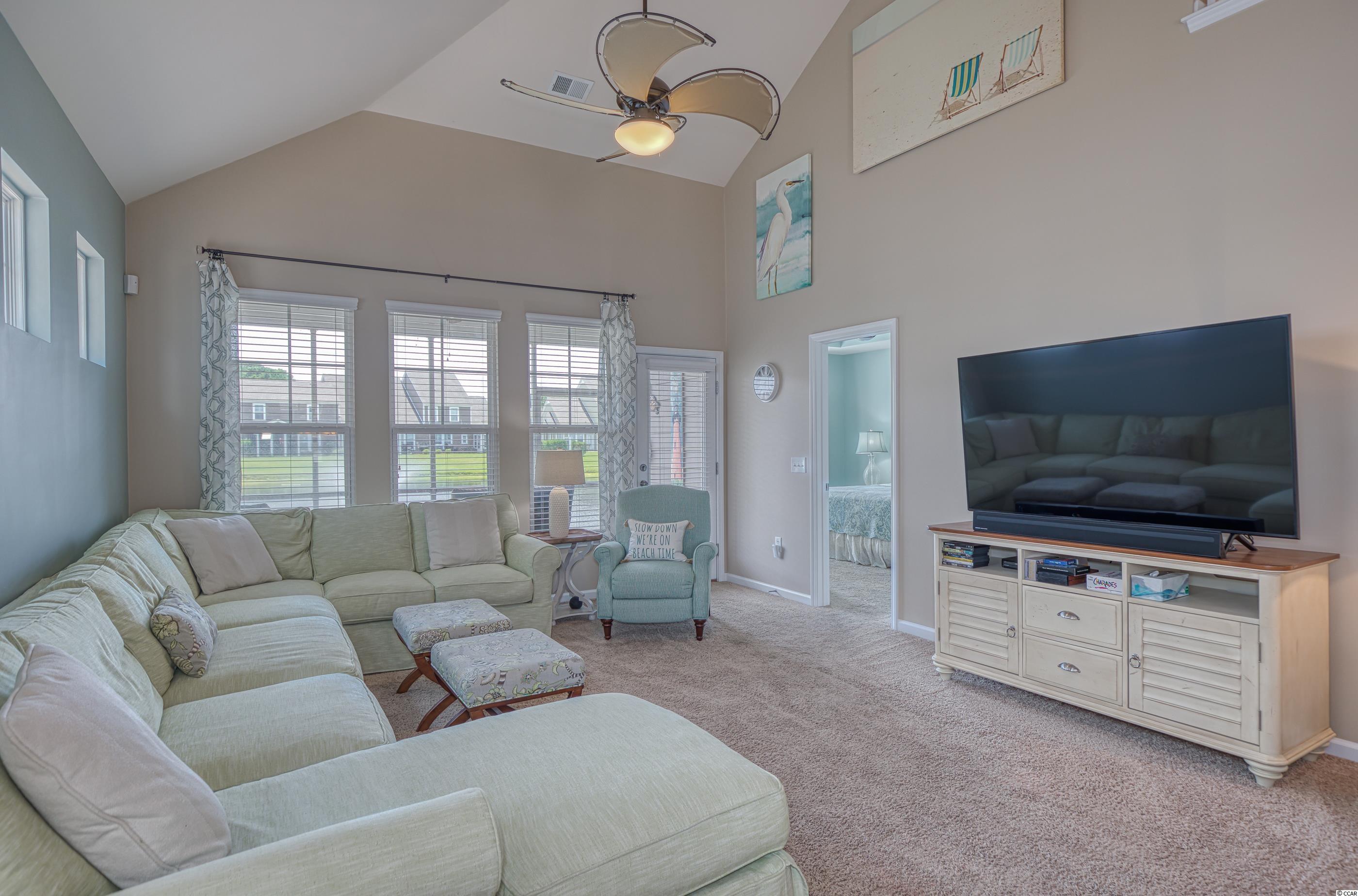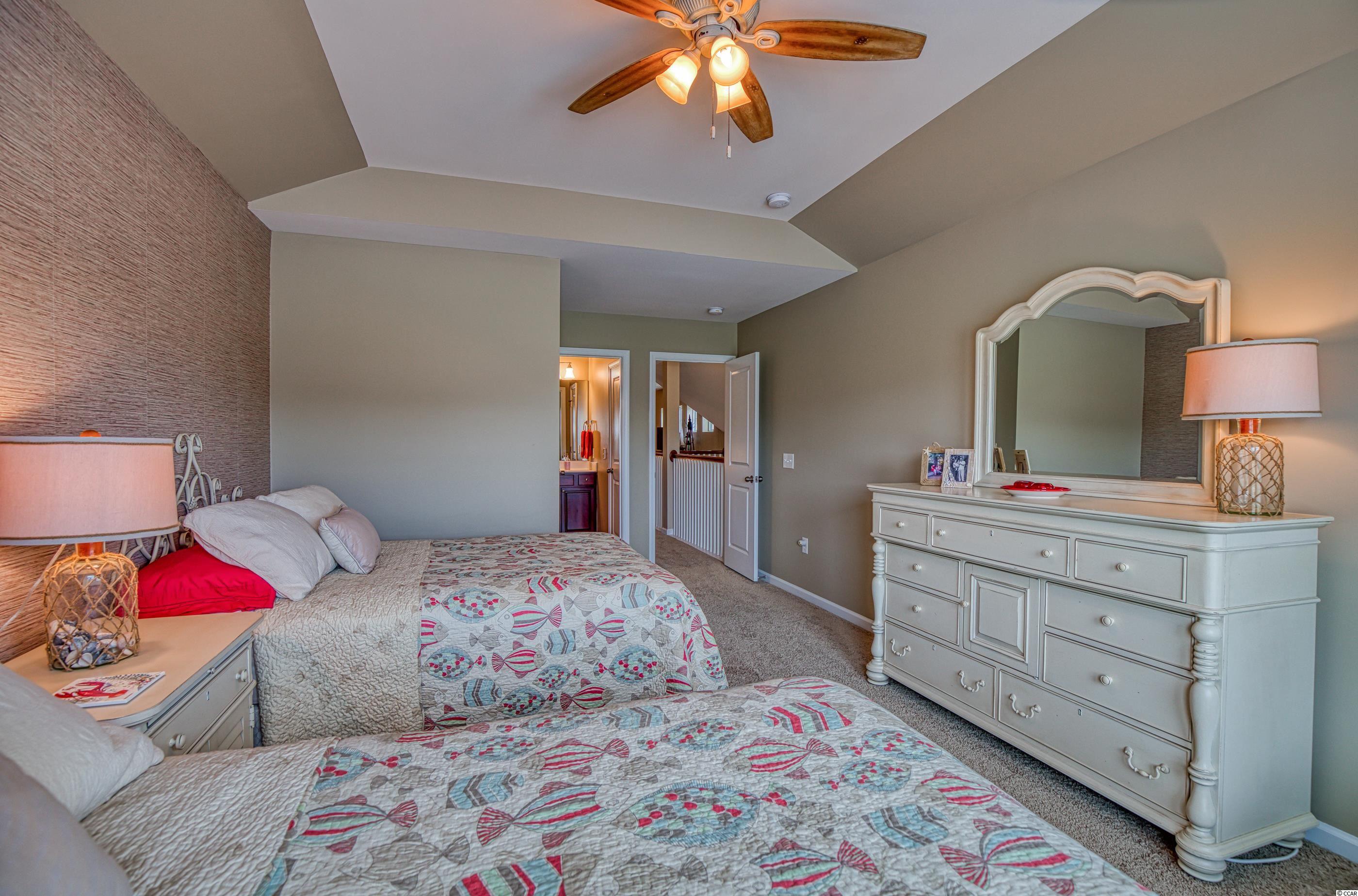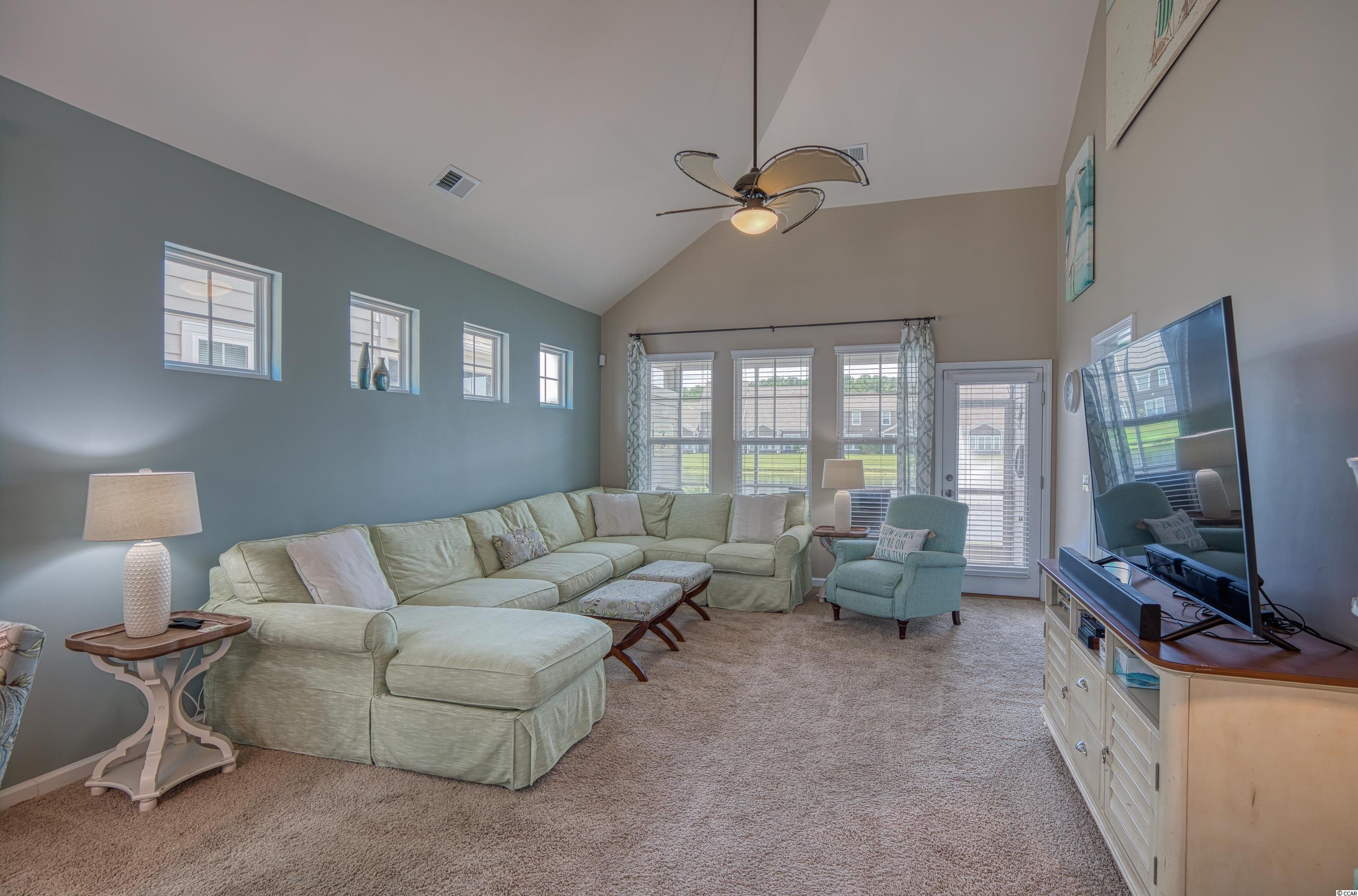 LOCATION! Located in the highly desirable Clearwater Bay neighborhood, this beautiful fully-furnished and well maintained 2 bedroom/2.5 bathroom home overlooks a lake with a fountain and is steps away from the pool and clubhouse. Designer inspired colors and decor throughout with great architectural detail, the original owner used the home as a vacation getaway and never rented it. A former model home, it has both a courtyard and a screened lanai. The open concept has great flow and includes a dramatic cathedral ceiling with a catwalk overlook. The large kitchen has granite counters, glass tile back splash and under cabinet lighting. A laundry room with pantry is adjacent to the kitchen and includes a storage nook. Two Owner's Suites-one up/one down-the main level spa-style bathroom includes a double vanity, garden soak tub, separate shower and water closet. A convenient powder room is located off the welcoming foyer. The pulldown steps in the 2-car garage provide access to a storage area. Clearwater Bay is located within Barefoot Resort's 2,300 acre community offering exceptional amenities including the community pool and clubhouse, a 15,000 sq ft salt water pool overlooking the ICW, a brand new beach cabana on the ocean with 3 parking lots, 2 multi-million dollar clubhouses, 4 signature golf courses, walking, biking and so much more to complement an active lifestyle! Located adjacent to Barefoot Landing, Barefoot Resort is close to the beach and surrounded by many great restaurants, shopping and entertainment venues. Square footage is approximate and not guaranteed. Buyer is responsible for verification.