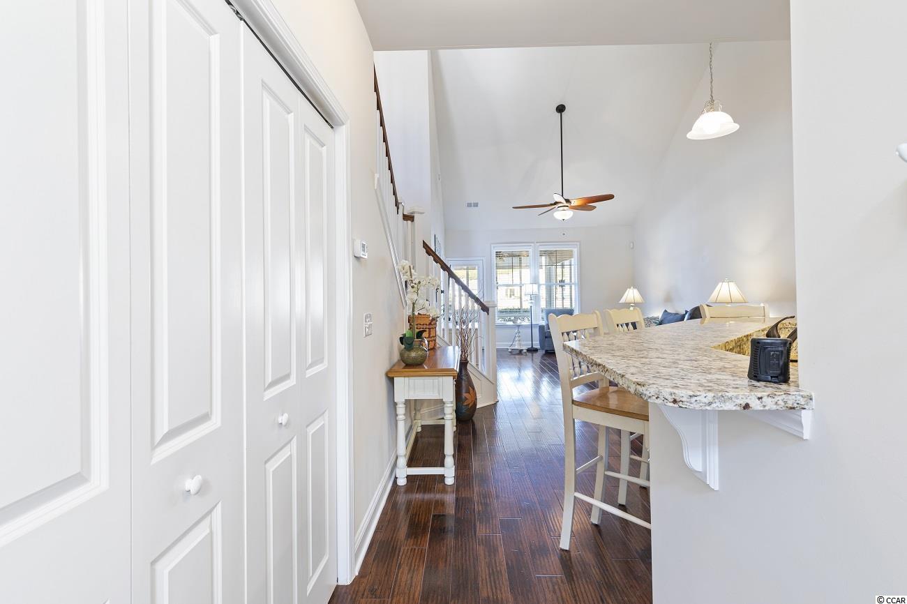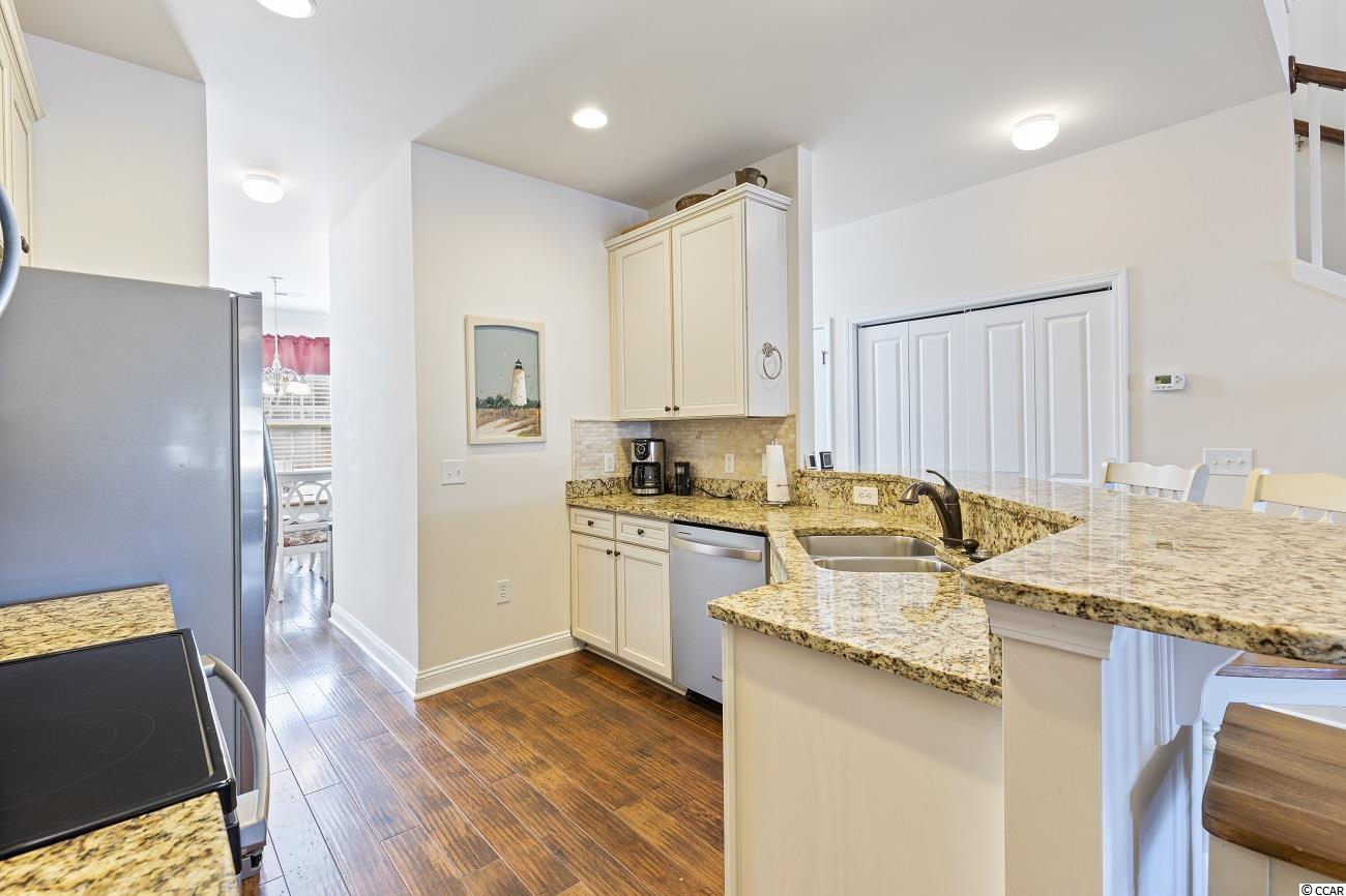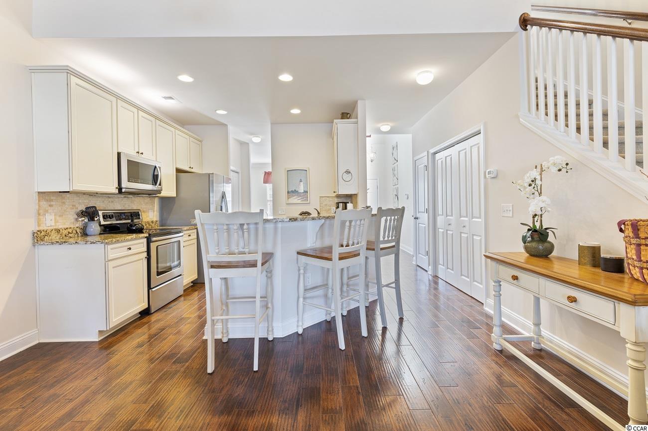 Tucked back in Clearwater Bay Community, this beautifully maintained townhome is located on popular Barefoot Resort. Upgrades include a 12X12 sunroom that overlooks the pond; wood floors in the main living areas; Upgraded kitchen cabinets; granite countertops and stainless appliances. This plan features the master on the main level with a large walk in closet. The master bath has a stand up shower and dual vanities. Two upstairs bedrooms share a private bath with a huge additional walk in closet for extra storage. There is also a nook at the top of the stairs large enough for a desk in additional space is needed. The one car garage is immaculate and has shelving. One of the HVAC units has recently been replaced as well as the dishwasher and washing machine. Clearwater Bay has a private pool if you wish to walk to a quiet spot to swim. Amenities and Features of Barefoot Resort include a private Oceanfront Beach Cabana, a 15,000 sq. ft. salt water community pool, a private pool, four (4) signature golf courses on-site; two (2) multi-million dollar luxury clubhouses with restaurants, bars and pro-shops, a golf driving range, golf academy and an onsite fire station. Barefoot Resort is approximately two minutes to the beach by car, located directly across from world class dining, entertainment and shopping at Barefoot landing. Barefoot Resort features its very own marina, restaurant on the Intracoastal Waterway.
