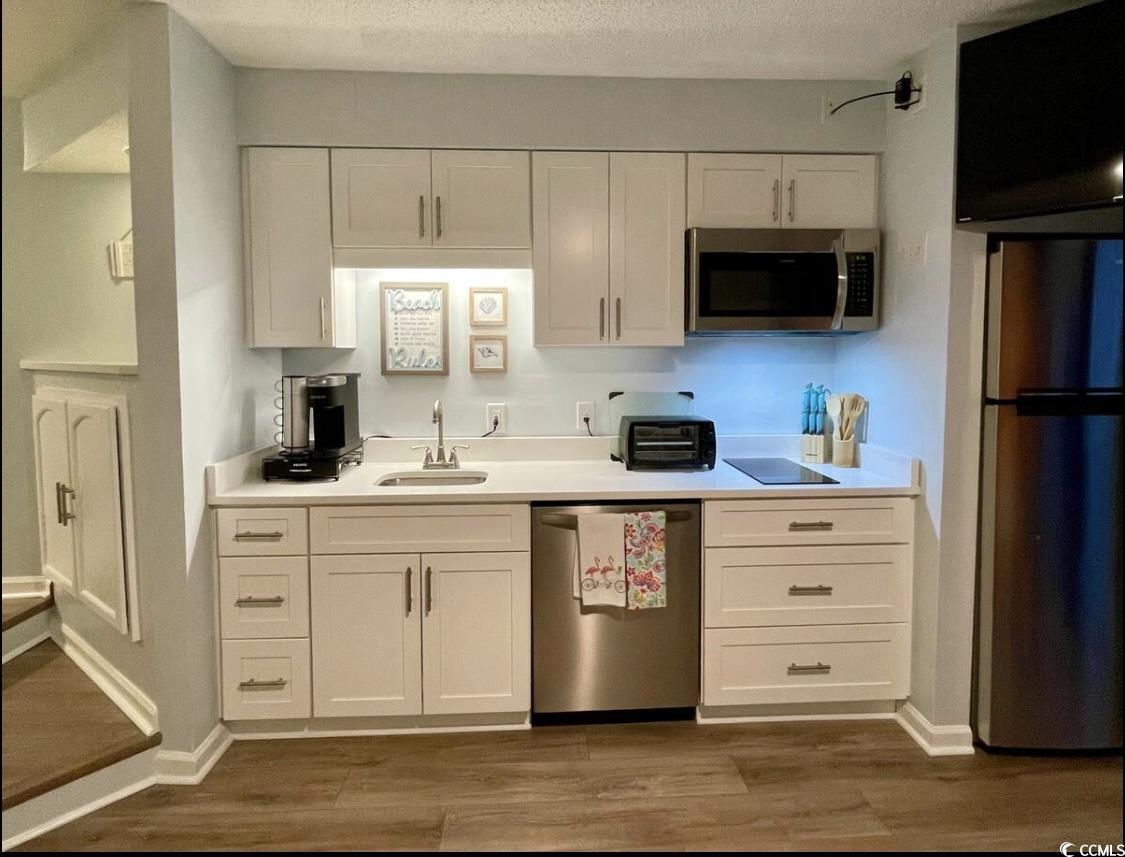 Golf Carts Allowed. Sought After First Floor Corner Unit Located At Whispering Sands. Located just steps across the Blvd to the beach. Take advantage of the public beach access across the street from the Whispering Sands parking lot. This 1 bedroom and 1 full bath condo has been updated throughout. Kitchen with quartz countertops, SS appliances: Cooktop, microwave oven, dishwasher, and refrigerator. Oversized bedroom with 2 queen beds. Updated flooring. The list goes on and on. After a fun day at the beach, relax by the outdoor pool. Beach life does't get any better.. The condo has a great pool view and whether you are looking for a place to call home or an investment property, this is it. Short term rentals are allowed. The condo is sold furnished and turn key ready for the 2025 rental season. See attachments for complete list of updates. Walk to the Garden City Pier, several restaurants, ice cream store, and shops along the ""Boulevard"". This one checks all the boxes...!!!!